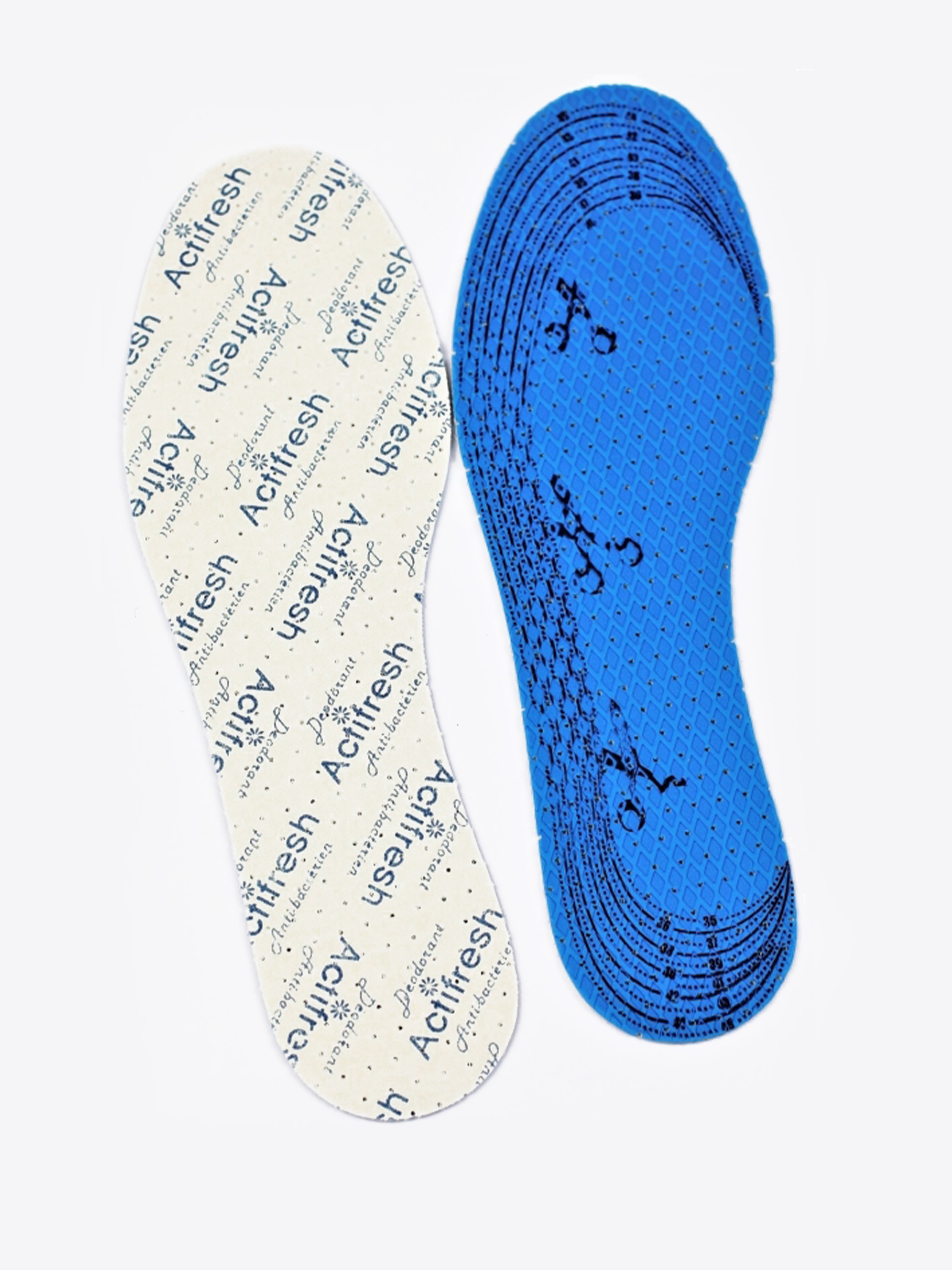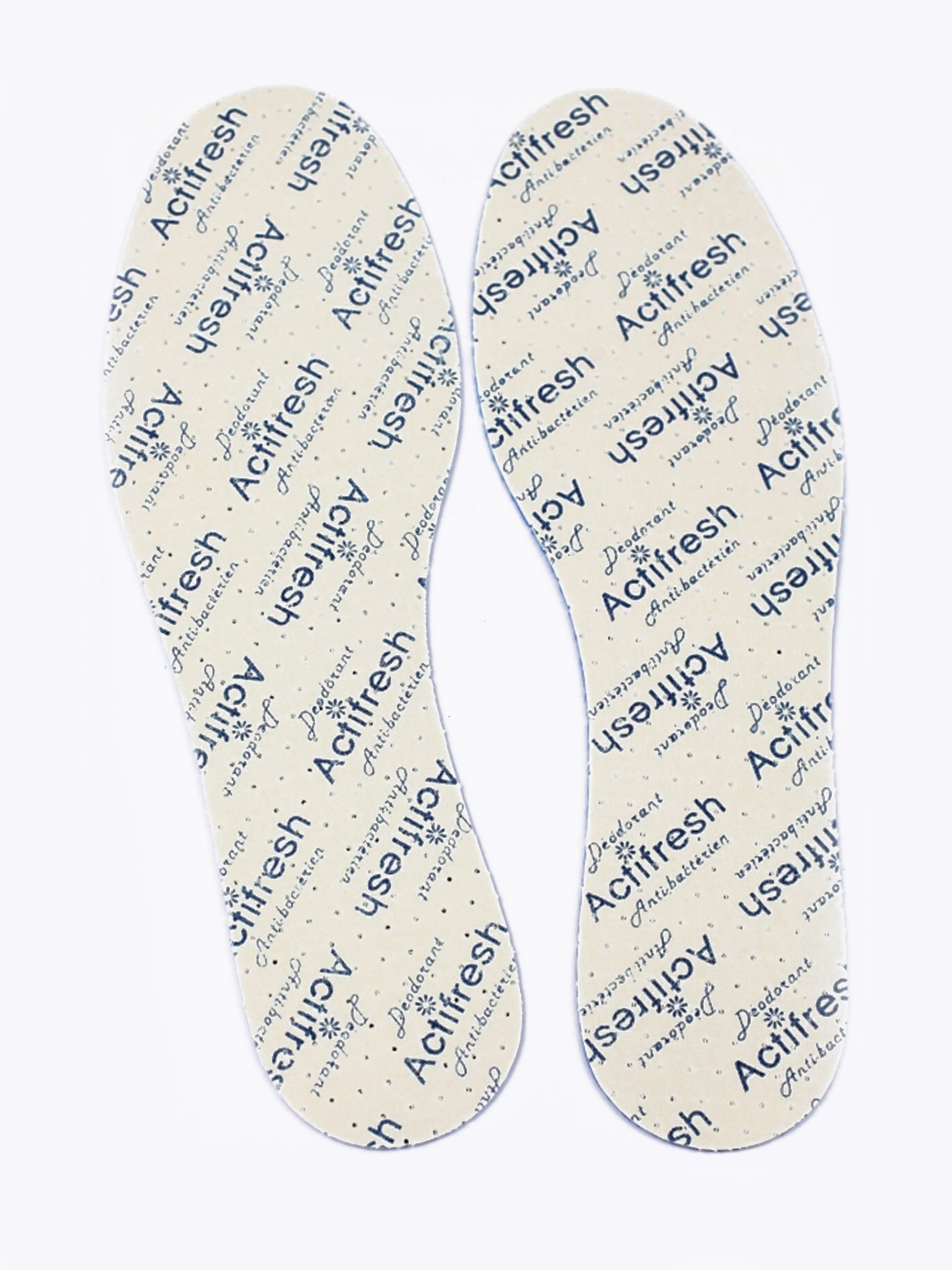 Wkładka antybakteryjna o świeżym zapachu składająca się z trzech warstw: bawełnianej tkaniny wierzchniej, pianki lateksowej ze środkiem przeciwbakteryjnym zapobiegającym rozwojowi drobnoustrojów w wilgotnym i ciepłym środowisku buta oraz przeciwpoślizgowej pianki lateksowej, z fakturą rombów. Perforacja zapewnia cyrkulację powietrza, która daje poczucie komfortu.