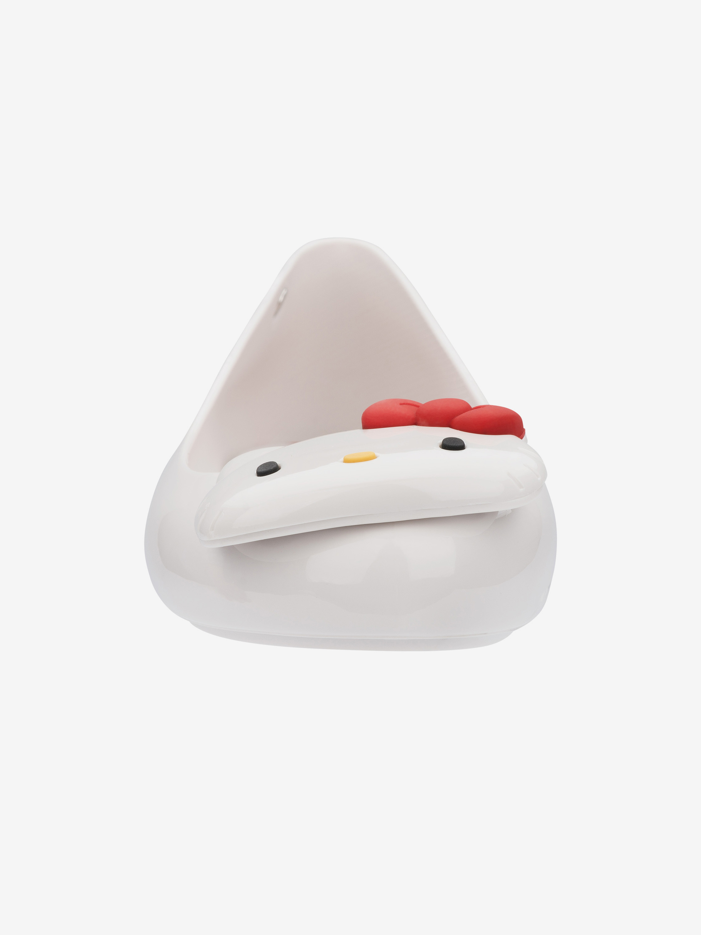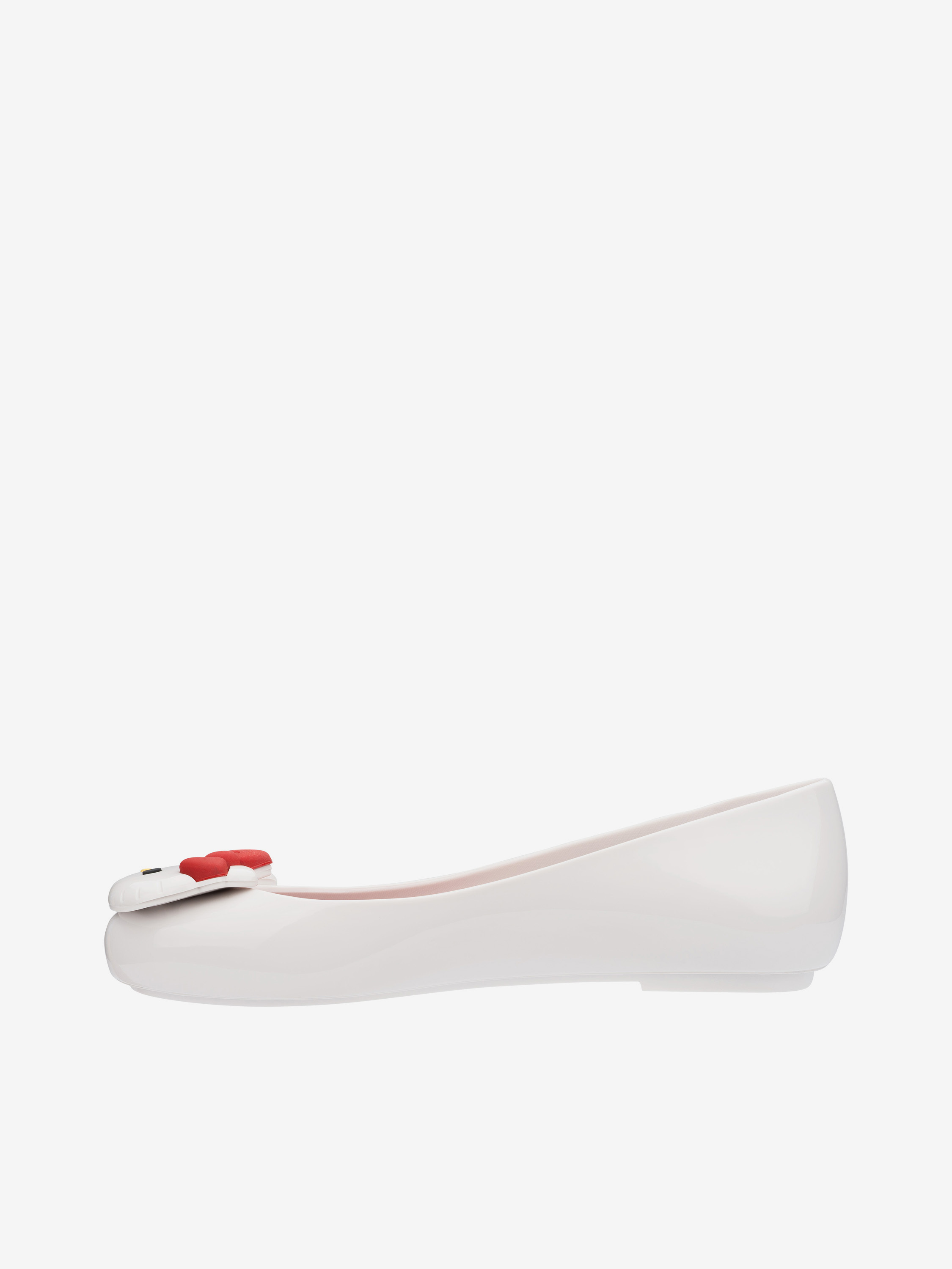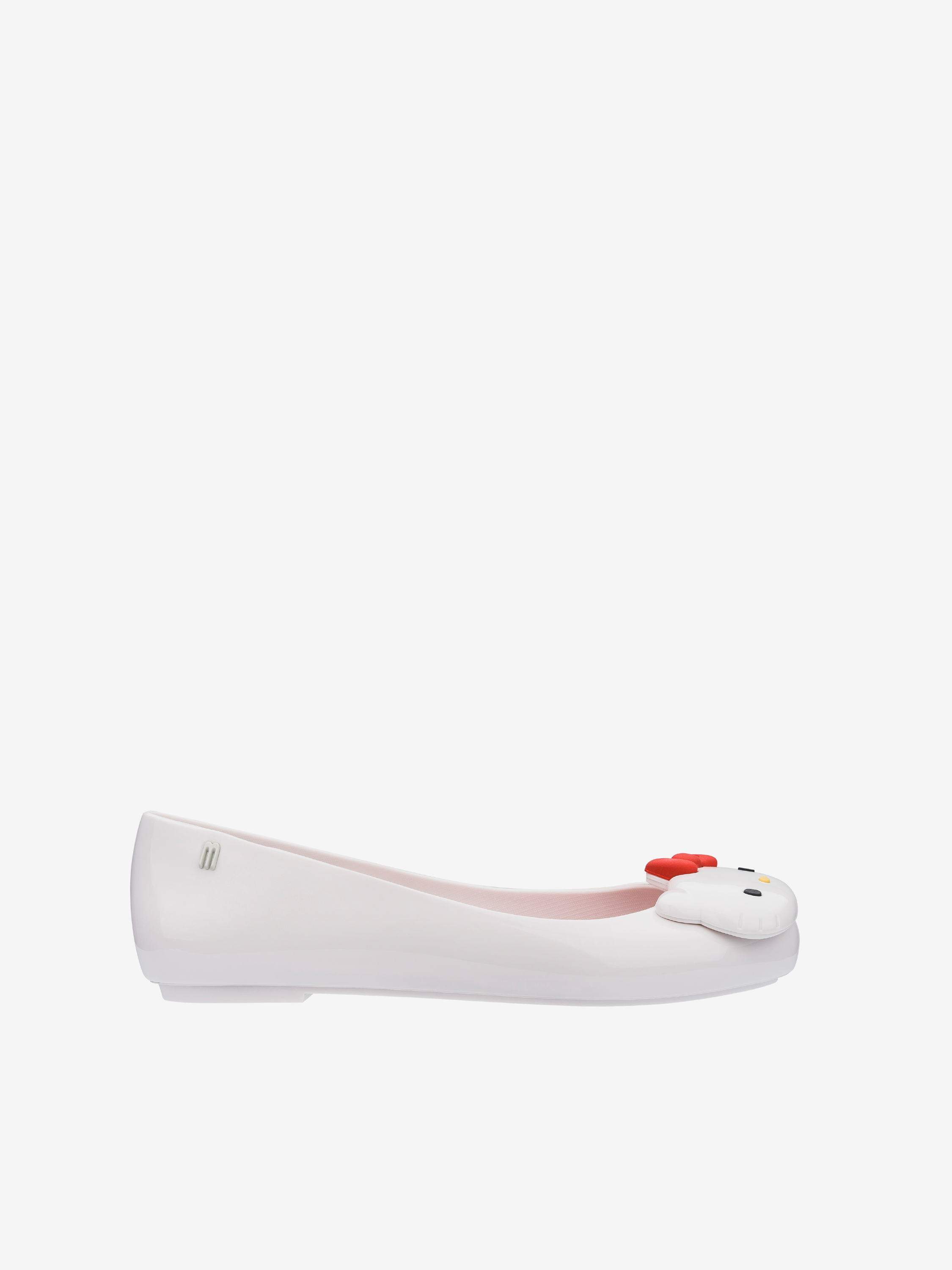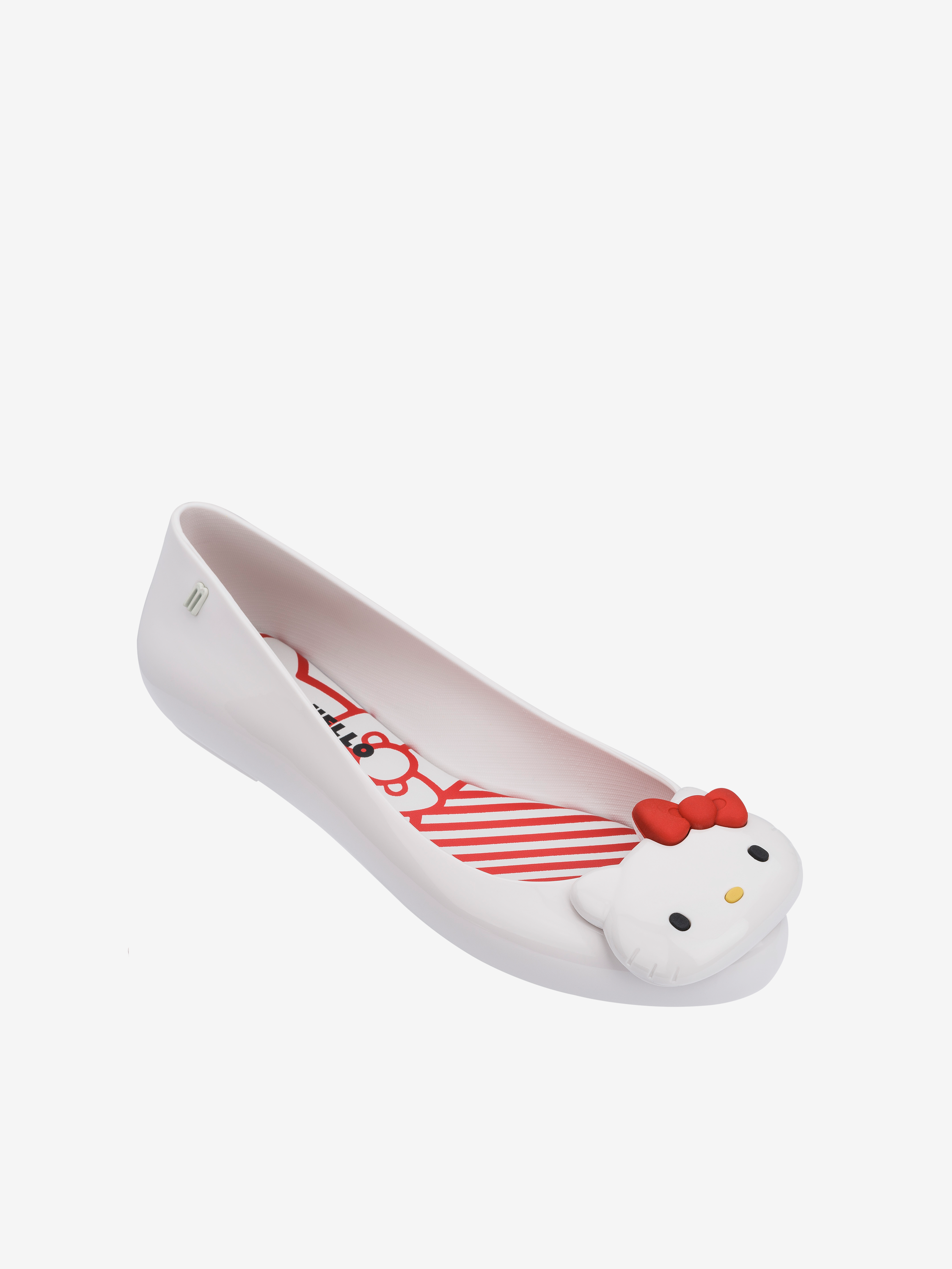 Baleriny Melissa wykonane są z aromatyzowanego, unikalnego tworzywa Mel-flex - mieszanki plastiku i kauczuku o charakterystycznym zapachu gumy balonowej. Buty na płaskiej podeszwie zapewniają komfort użytkowania i stabilizację. Baleriny Melissa są wykonane bez materiałów pochodzenia zwierzęcego, kauczuk pod wpływem ciepła układa się do stopy, buty nie obcierają i nie odparzają, są bardzo wygodne i wodoodporne. Model inspirowany Hello Kitty.