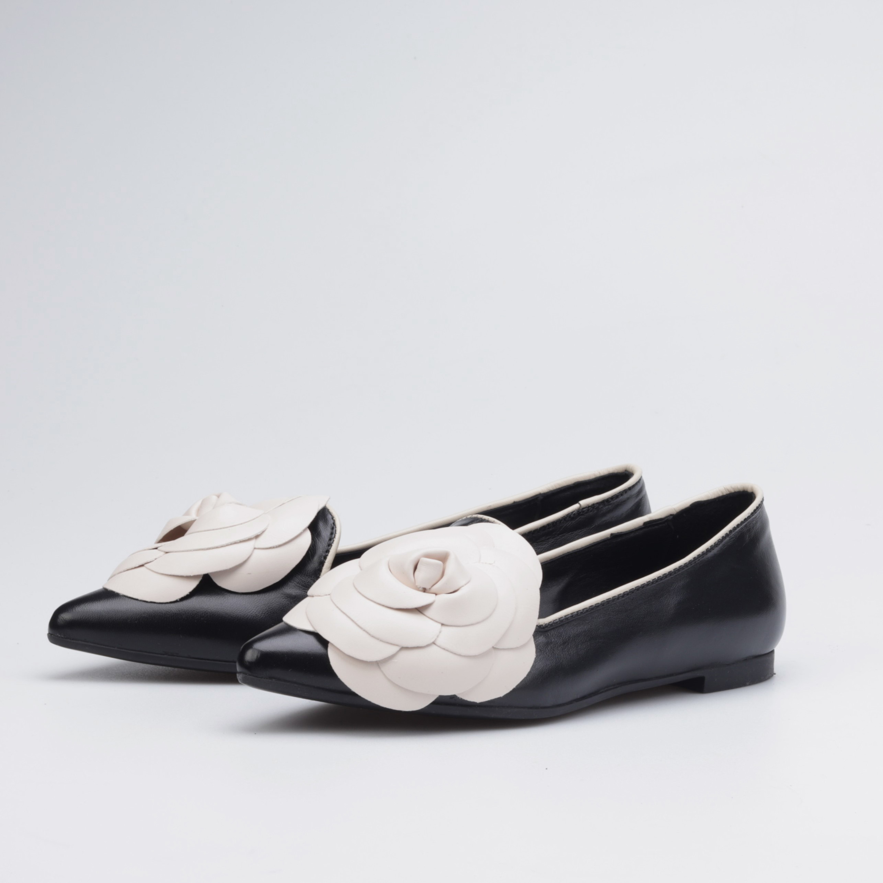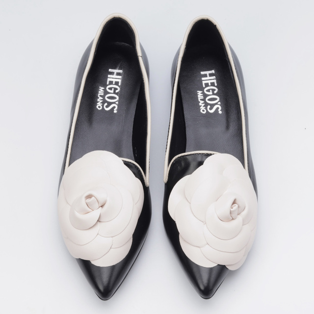 Baleriny wcale nie muszą być nudne! W sezonie AW21 projektanci HEGO'S Milano stworzyli model 1589 z myślą o eleganckich kobietach szukających stylowych i wygodnych rozwiązań. Buty wykonane zostały z wysokiej jakości skóry nappa dzięki czemu gwarantują dopasowanie do stopy i komfort przez wiele godzin na nogach. Mocno zarysowany nosek w szpic oraz duży, ozdobny kwiat na przodzie sprawiają, że prezentowany model prezentuje się tak unikatowo i z charakterem.