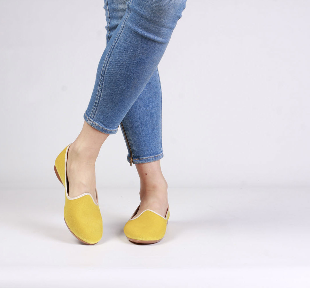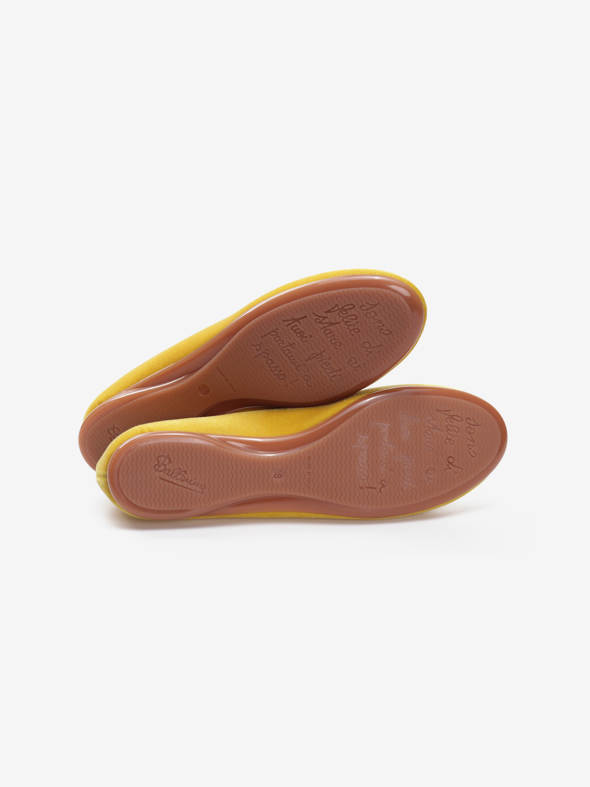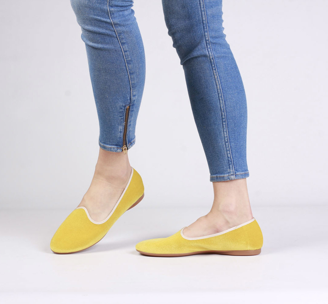 Piękne, aksamitne baleriny w żółtym wydaniu będą idealną alternatywą dla mokasyn czy sneakersów w sezonie wiosna/lato. Dzięki miękkiej, skórzanej wkładce idealnie dopasują się do stopy gwarantując komfort i wygodę przez wiele godzin na nogach. Dodatkowo, gumowa podeszwa zapewni odpowiednią przyczepność i amortyzację. Świetnie pasować będą zarówno do sukienek czy spódnic jak i jeansu.