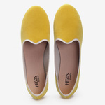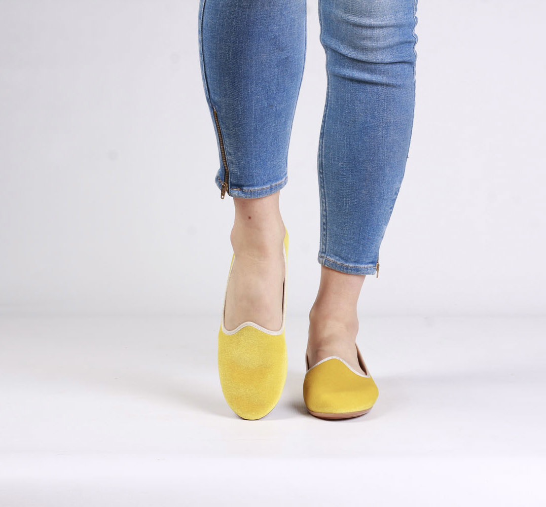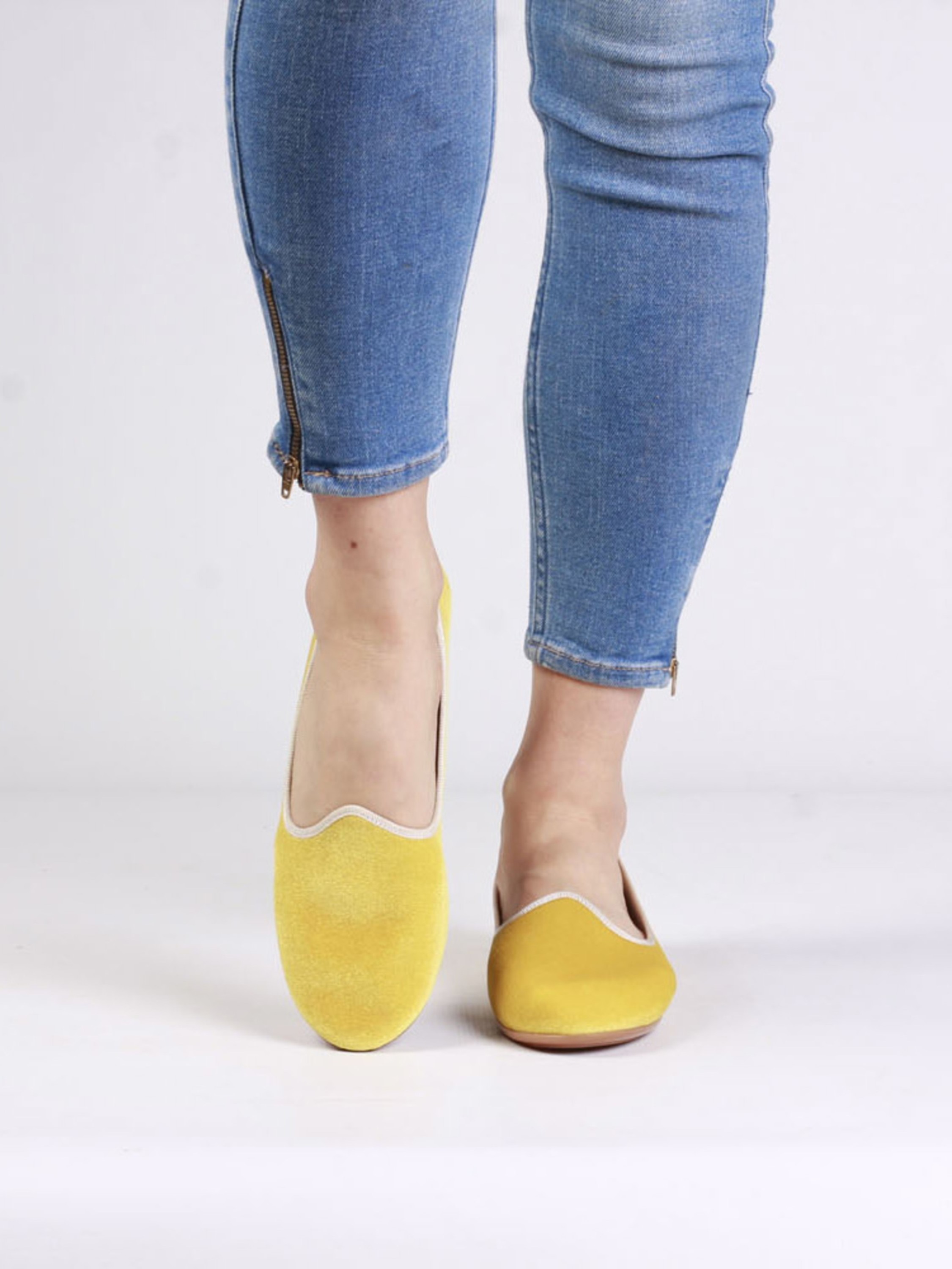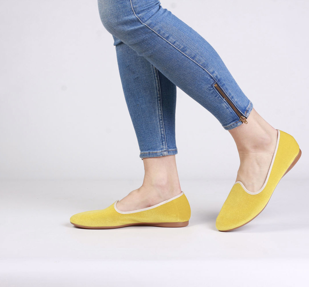 Piękne, aksamitne baleriny w żółtym wydaniu będą idealną alternatywą dla mokasyn czy sneakersów w sezonie wiosna/lato. Dzięki miękkiej, skórzanej wkładce idealnie dopasują się do stopy gwarantując komfort i wygodę przez wiele godzin na nogach. Dodatkowo, gumowa podeszwa zapewni odpowiednią przyczepność i amortyzację. Świetnie pasować będą zarówno do sukienek czy spódnic jak i jeansu.
