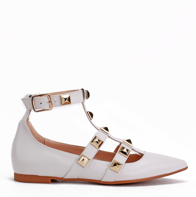 Unikatowe baleriny z charakterem muszą znaleźć się w szafie każdej miłośniczki wygody i nowoczesnych trendów w sezonie SS21! Skórzana cholewka oraz wkładka gwarantują niebywały komfort przez wiele godzin na nogach. Regulowany pasek przy kostce pozwoli idealnie dopasować buta do stopy. Dzięki noskowi w szpic oraz paskom z dużymi, złotymi ćwiekami prezentują się tak designersko i wyjątkowo. Nikt nie przejdzie obok nich obojętnie!