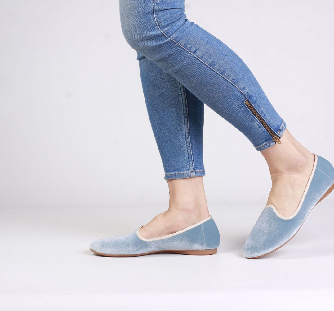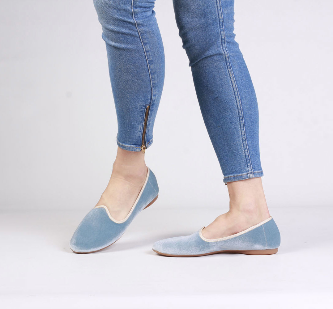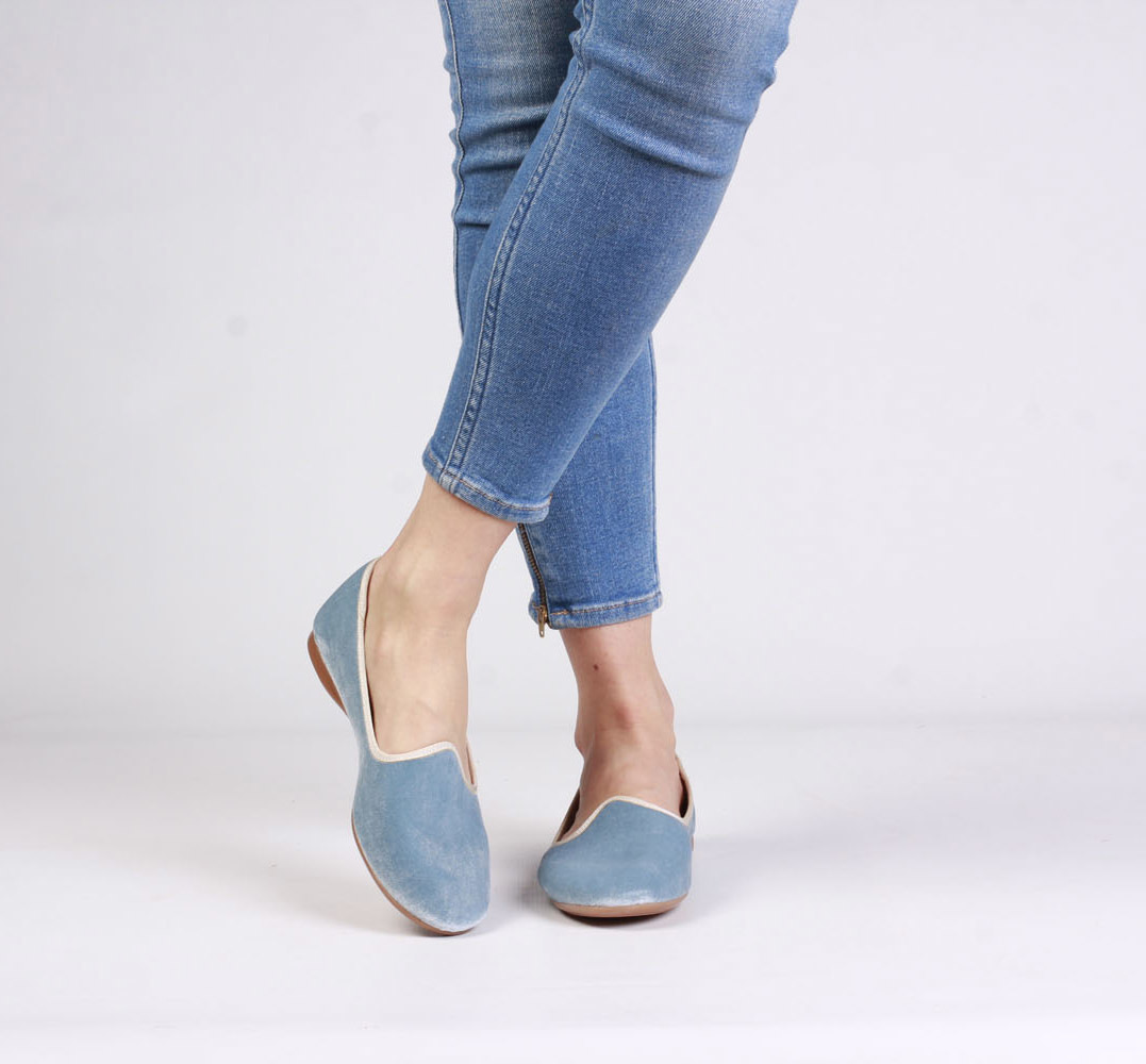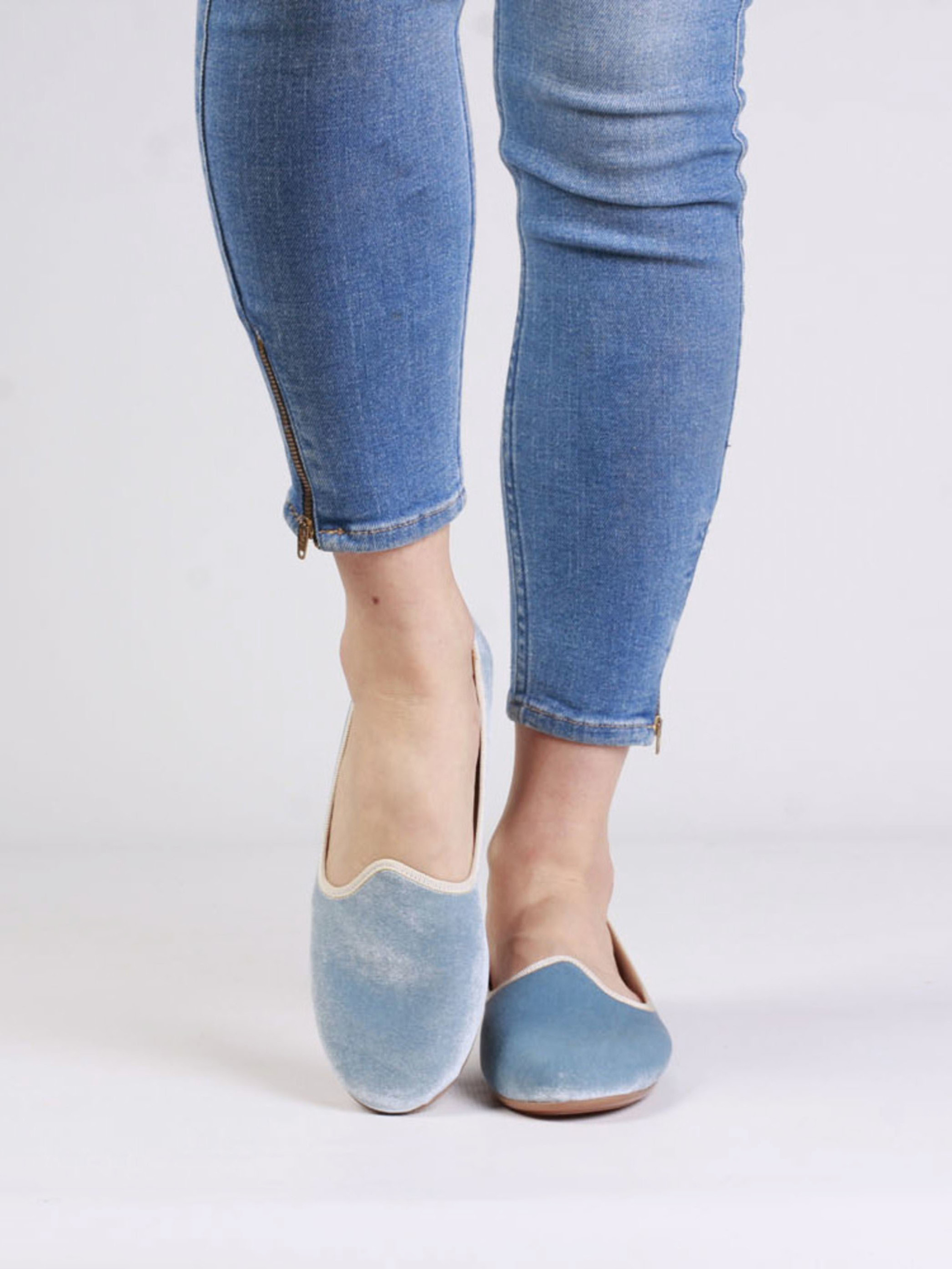 Piękne, aksamitne baleriny w jasnoniebieskim wydaniu będą idealną alternatywą dla mokasyn czy sneakersów w sezonie wiosna/lato. Dzięki miękkiej, skórzanej wkładce idealnie dopasują się do stopy gwarantując komfort i wygodę przez wiele godzin na nogach. Dodatkowo, gumowa podeszwa zapewni odpowiednią przyczepność i amortyzację. Świetnie pasować będą zarówno do sukienek czy spódnic jak i jeansu.