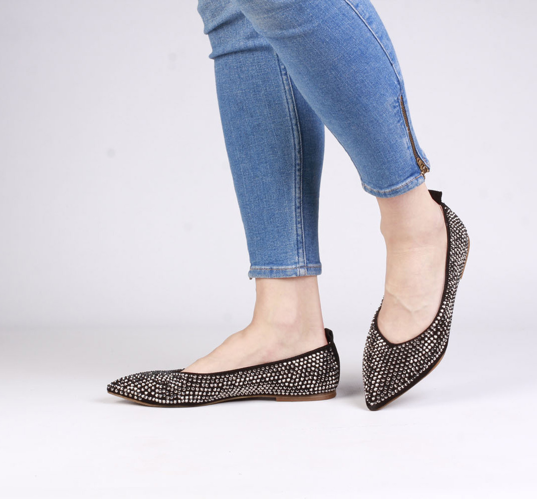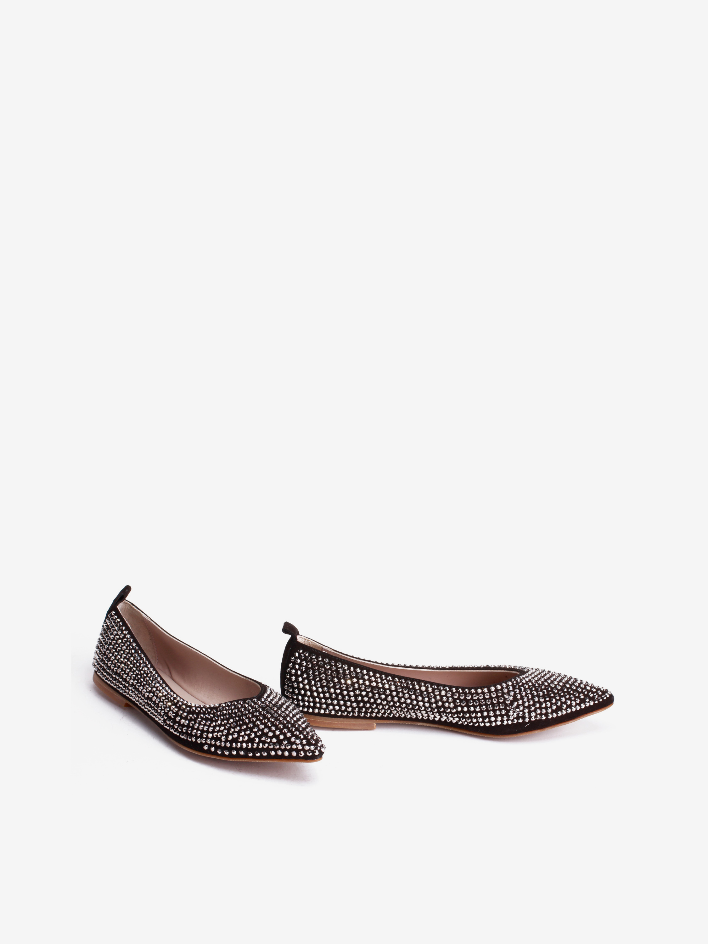 Piękne, przykuwające wzrok baleriny dodadzą blasku każdej stylizacji! Skórzana cholewka, wnętrze oraz wkładka gwarantują komfort i wygodę przez wiele godzin na nogach. Klasyczny krój z noskiem szpic i charakterystycznym wycięciem w łódeczkę, dzięki odbijającym światło kryształkom prezentuje się unikatowo i niepowtarzalnie. Nikt nie przejdzie obok nich obojętnie!