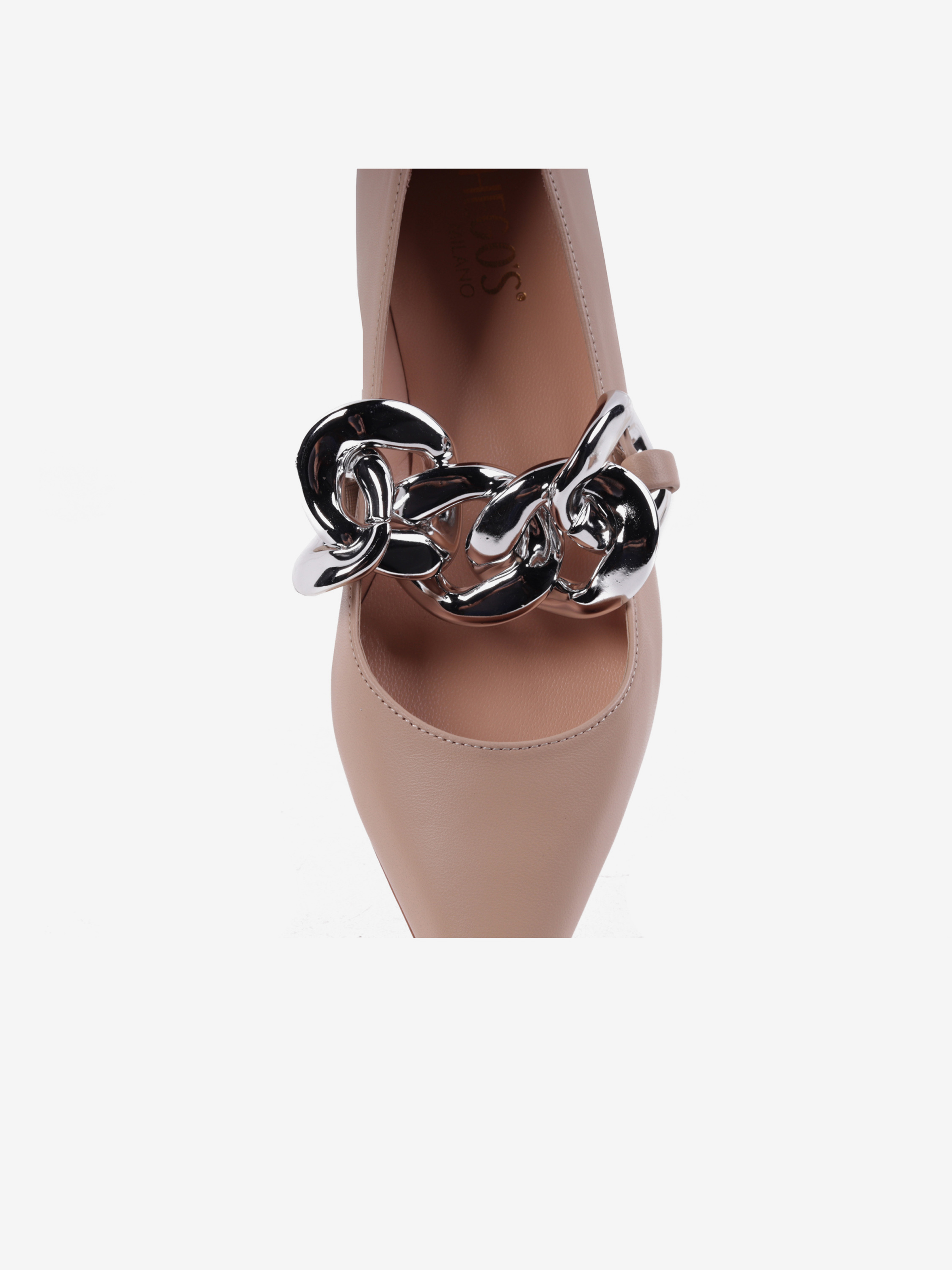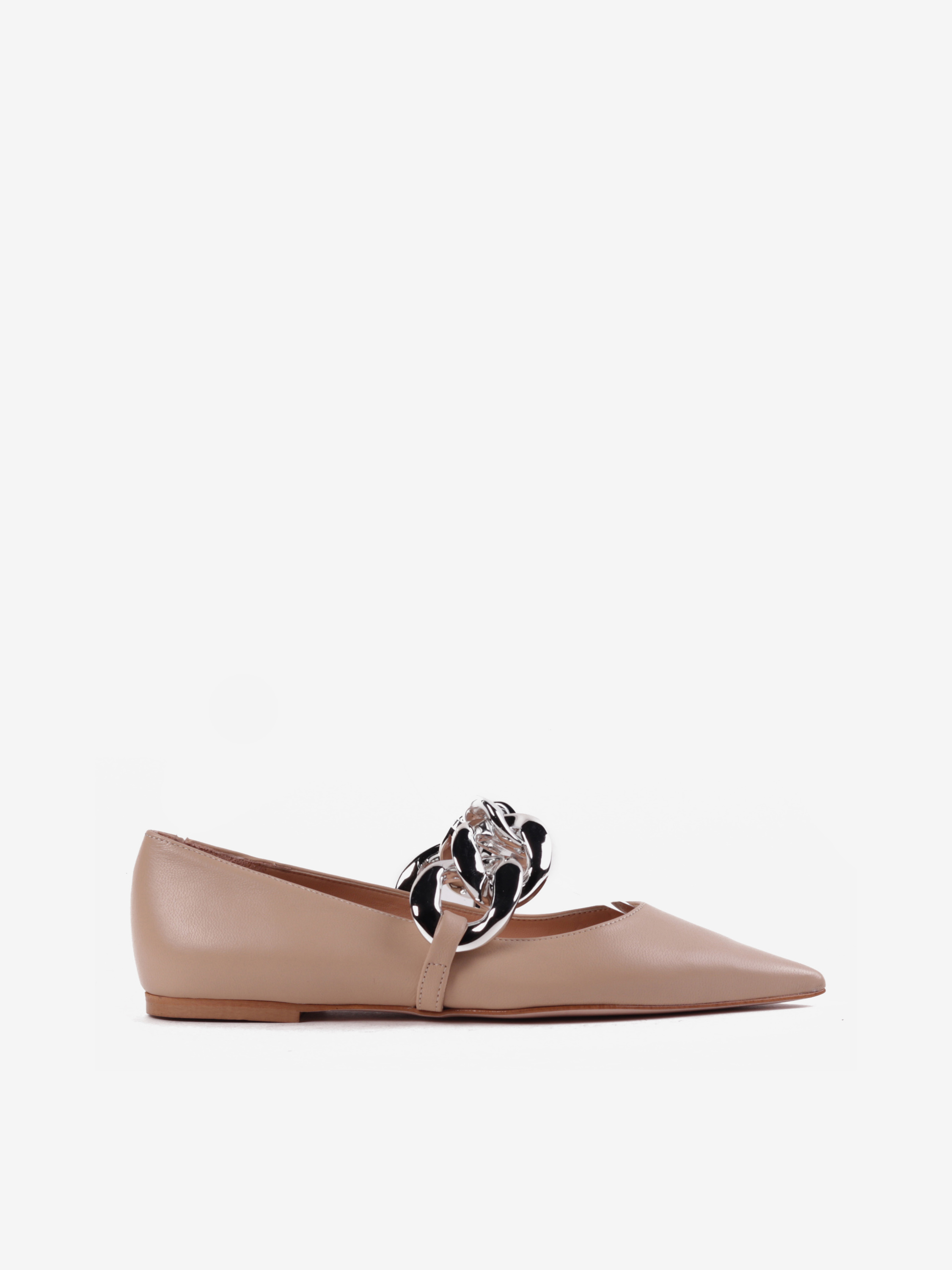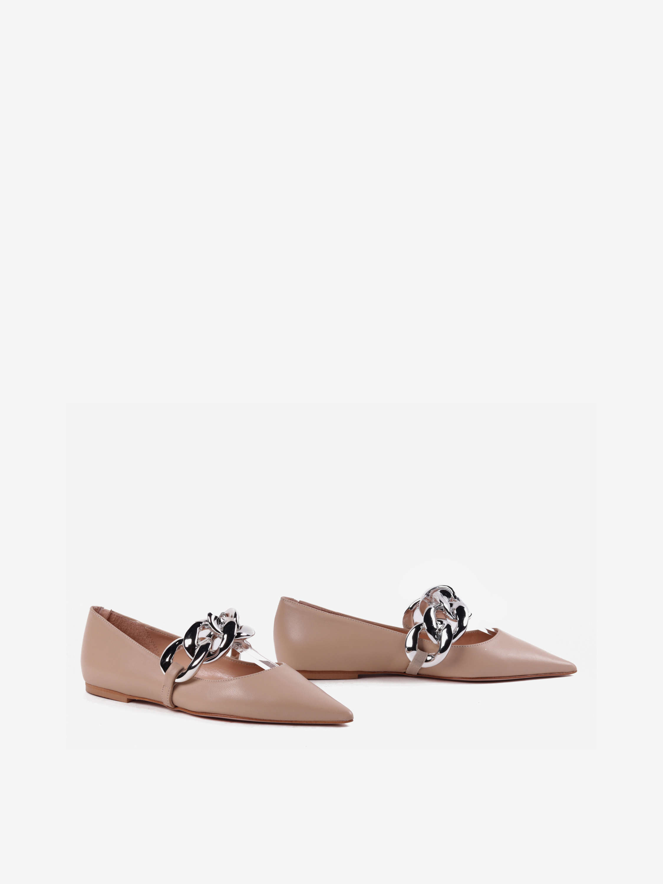 Wygodne baleriny wcale nie muszą być nudne! Skórzana cholewka, wnętrze oraz wkładka gwarantują niebywały komfort oraz dopasowanie do stopy. Wyraźnie zarysowany nosek w szpic optycznie wysmukli sylwetkę i podkreśli kobiecość, a duży, ozdobny łańcuch sprawia, że klasyczny krój nabiera charakteru. Dodadzą stylu i elegancji każdej stylizacji!
