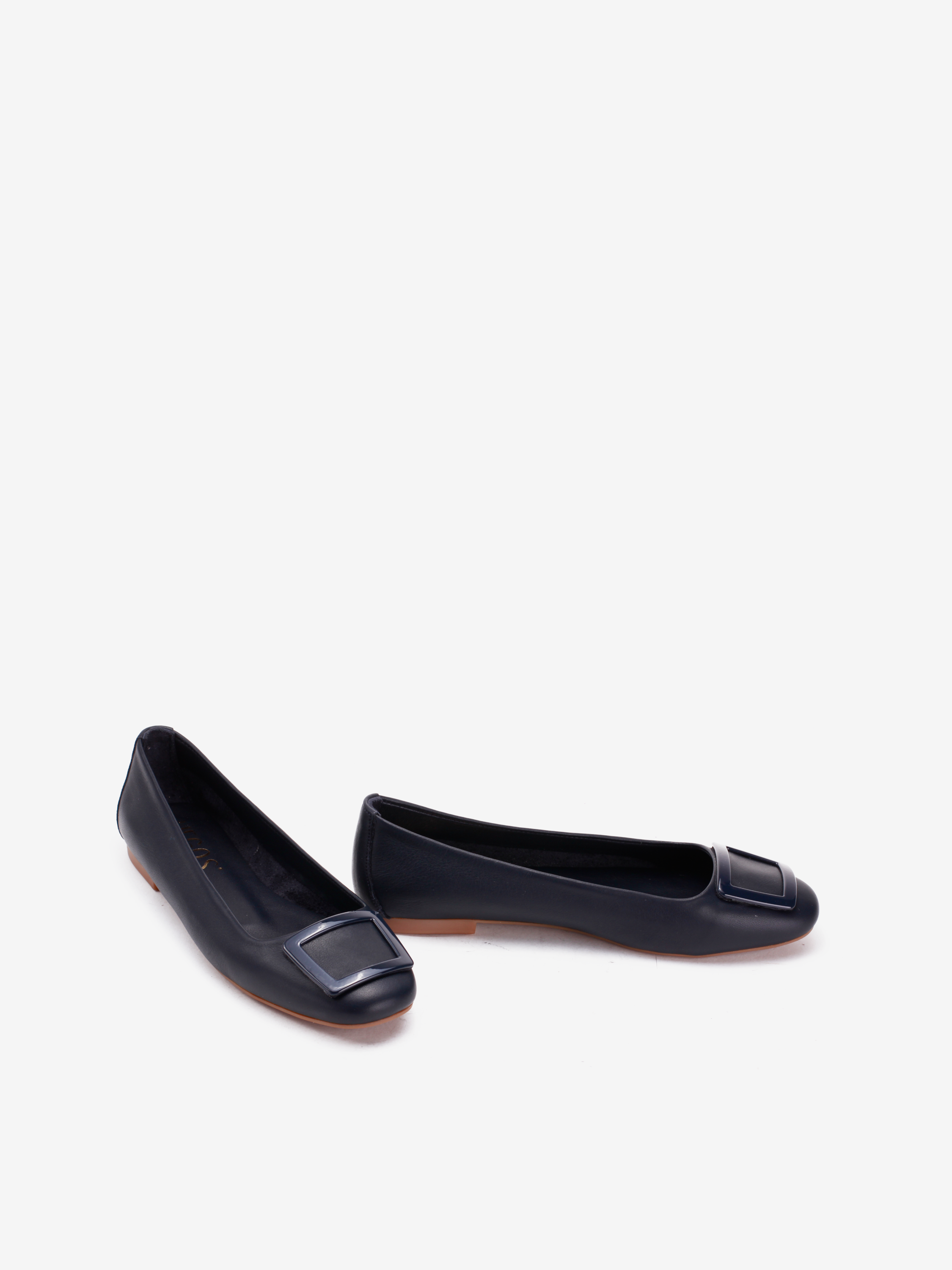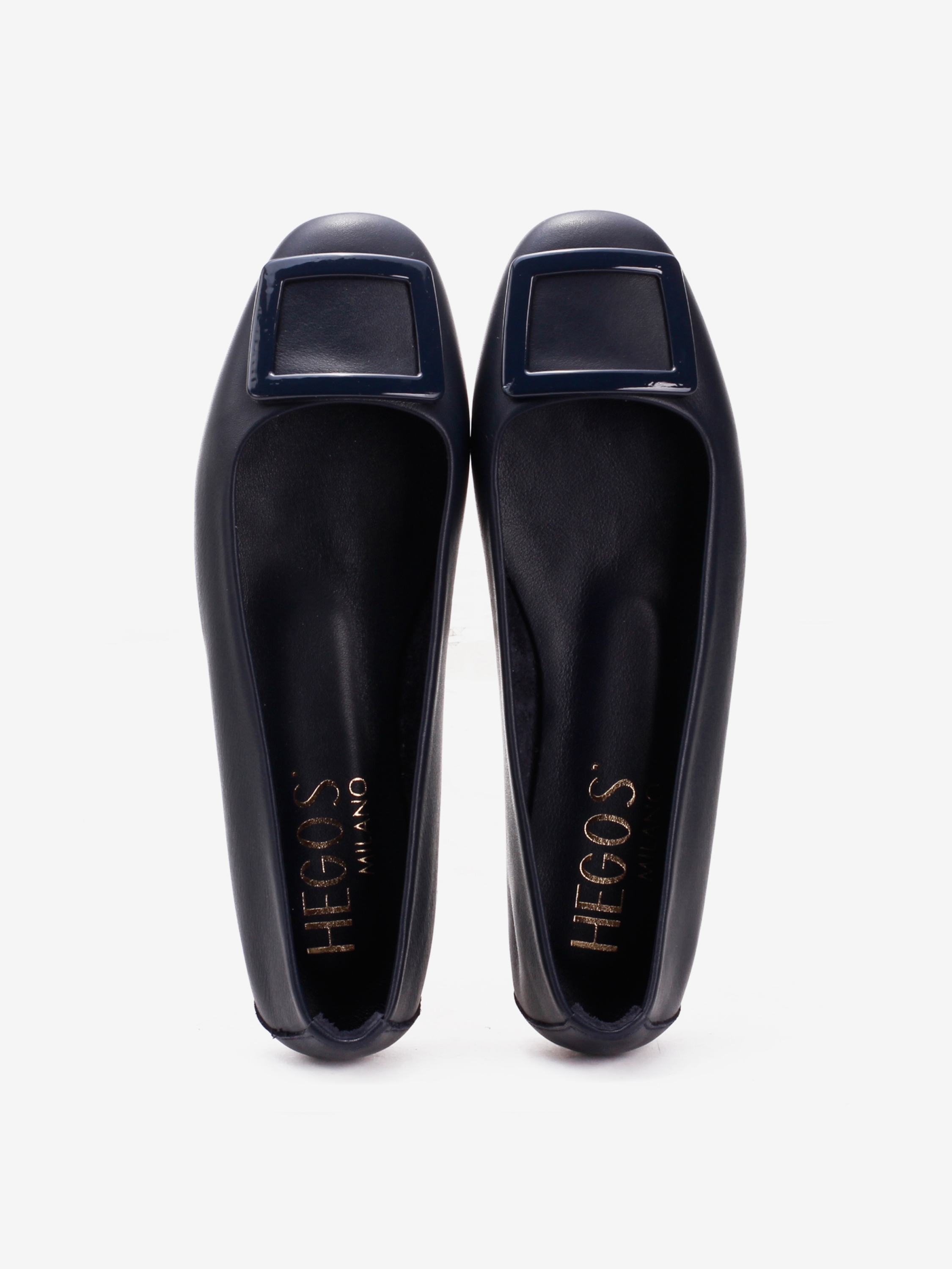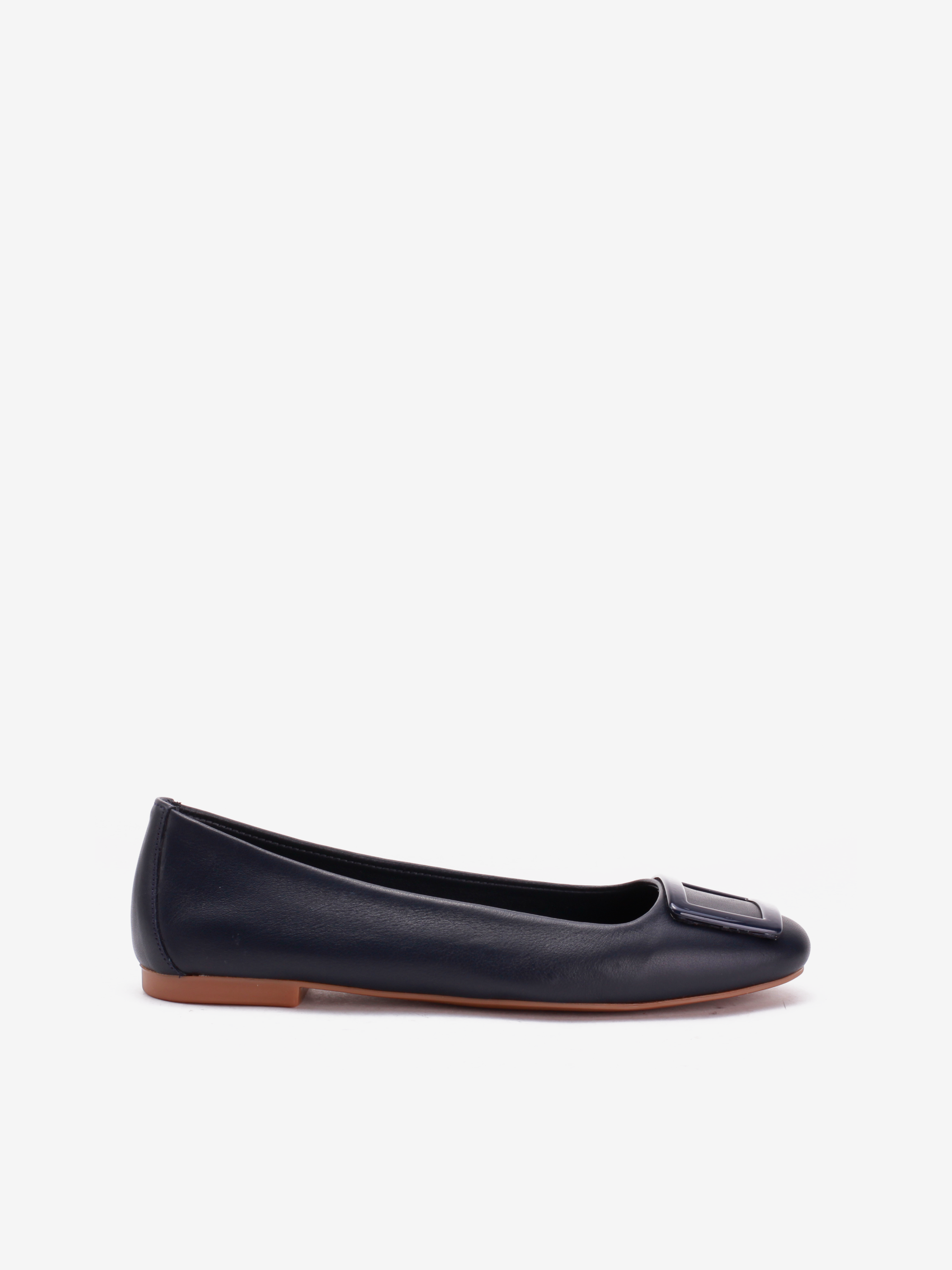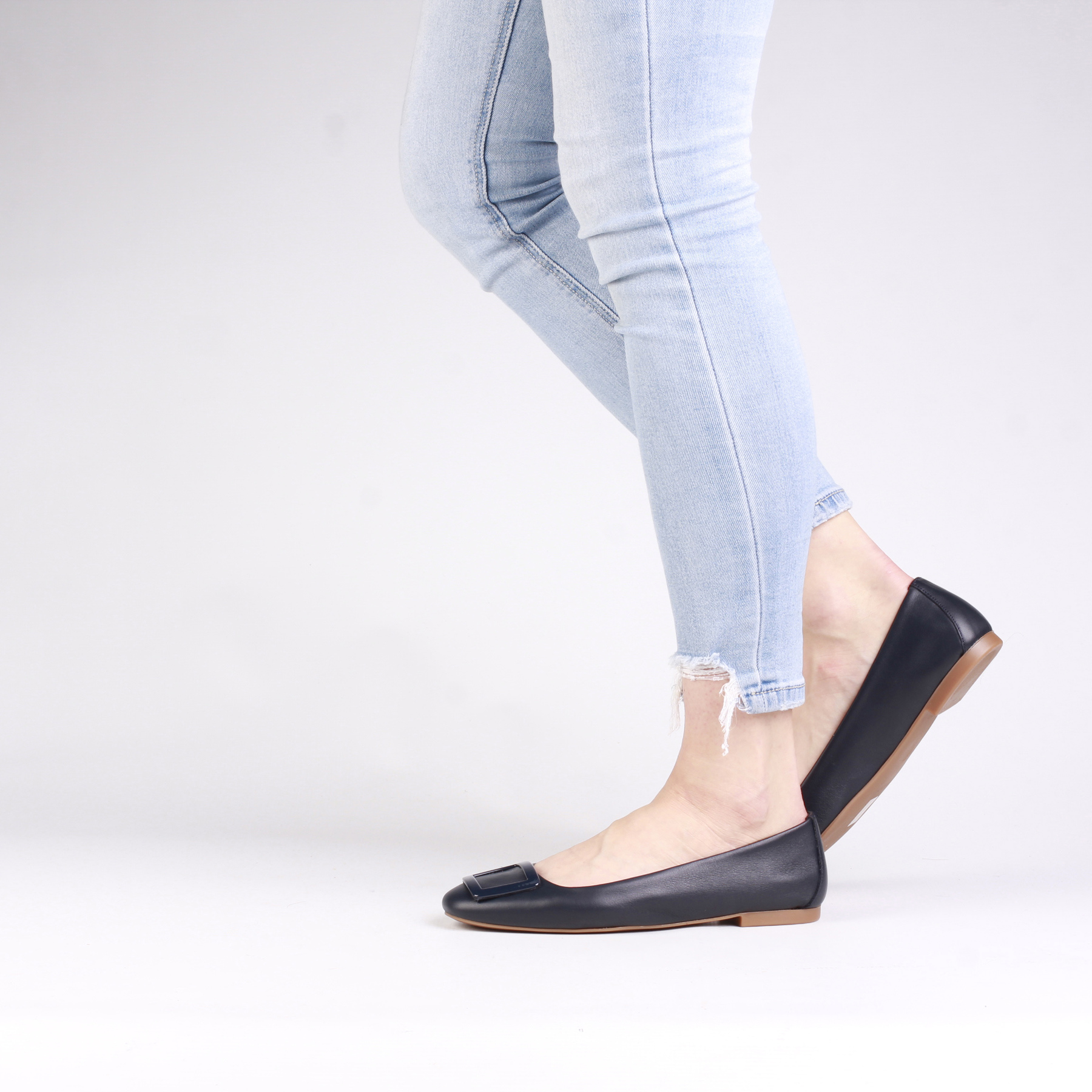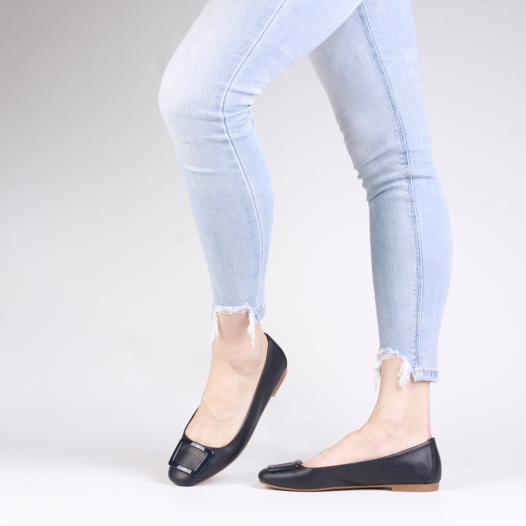 Granatowe,jednolite baleriny w całośći wykonane z naturalnej skóry.Subtelna klamerka z przodu nadaje im elenanckiego wyglądu.