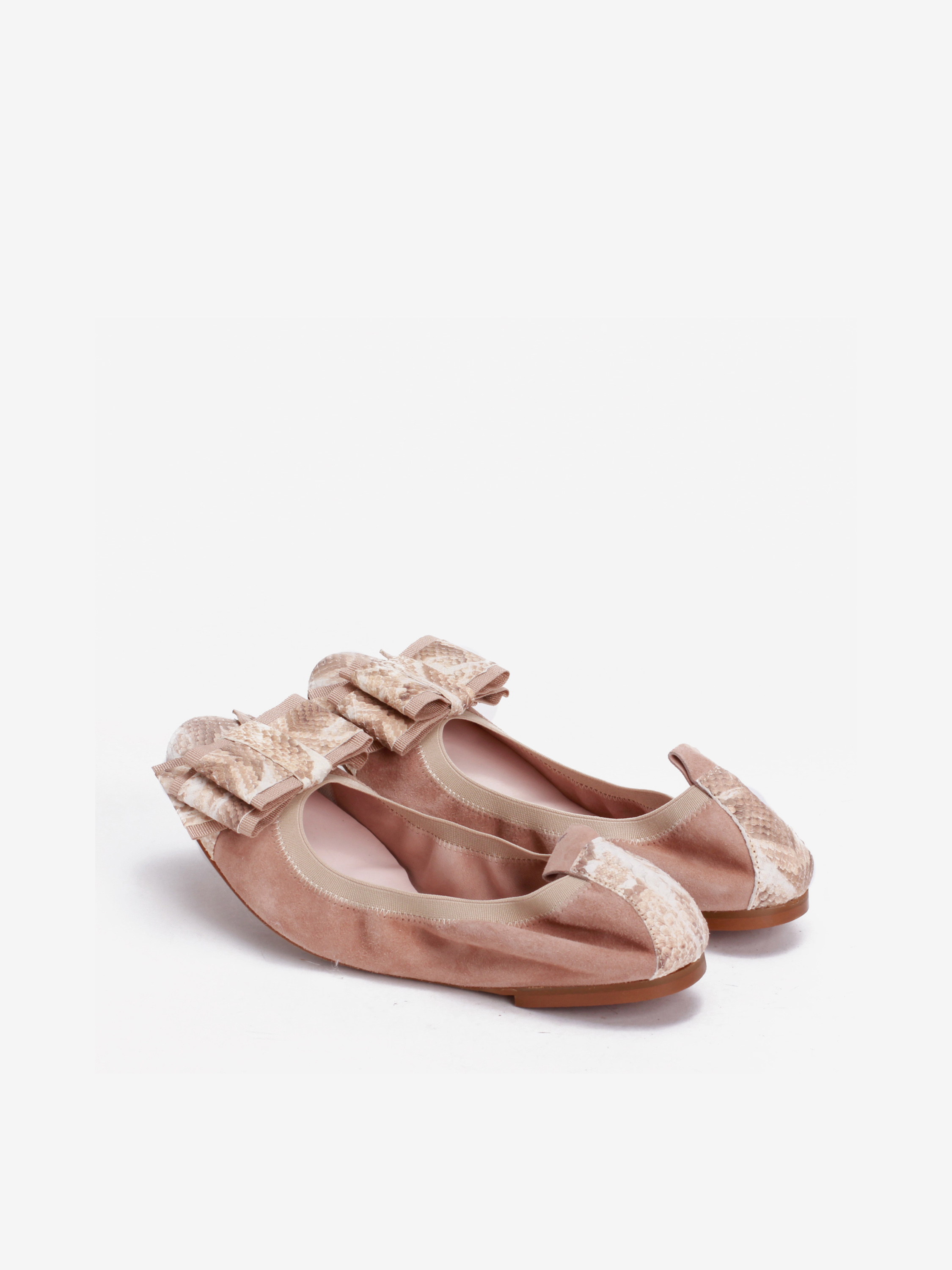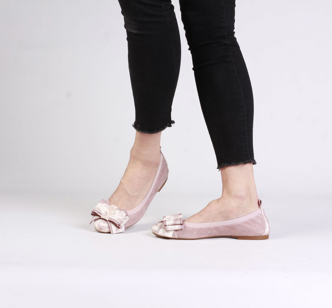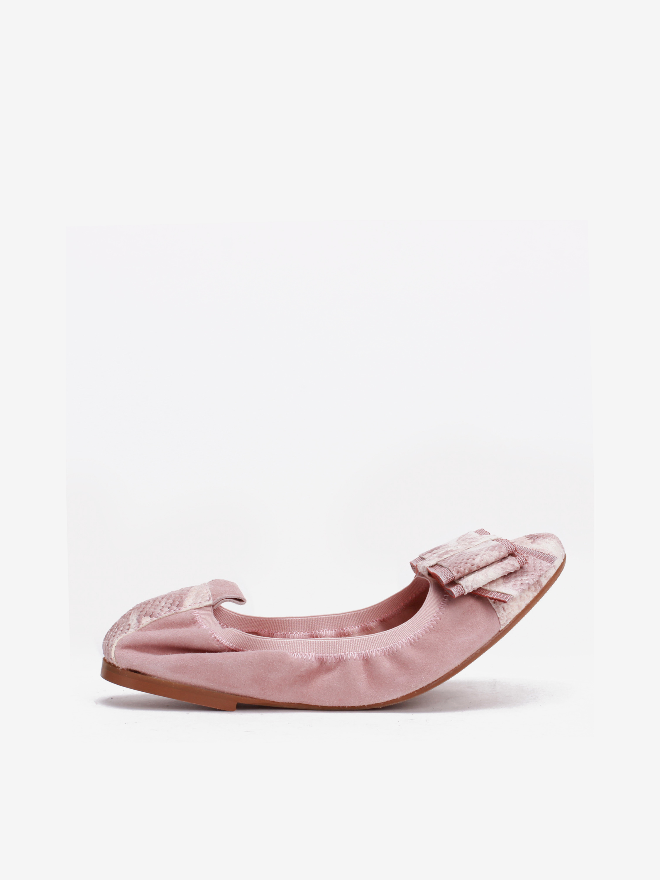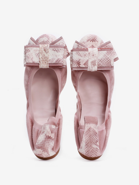 Piękne, wykonane z miękkiego zamszu baleriny to uniwersalna, ale przede wszystkim wygodna propozycja na sezon wiosna/lato. Skórzana wkładka zapewnia dodatkowy komfort przez wiele godzin. Wykończona gumką cholewka gwarantuje idealne dopasowanie się do stopy. Imitujący wężową skórkę print oraz duża, ozdobna kokarda na przodzie sprawia, że nabierają one charakteru. Będą idealnym uzupełnieniem każdej stylizacji!