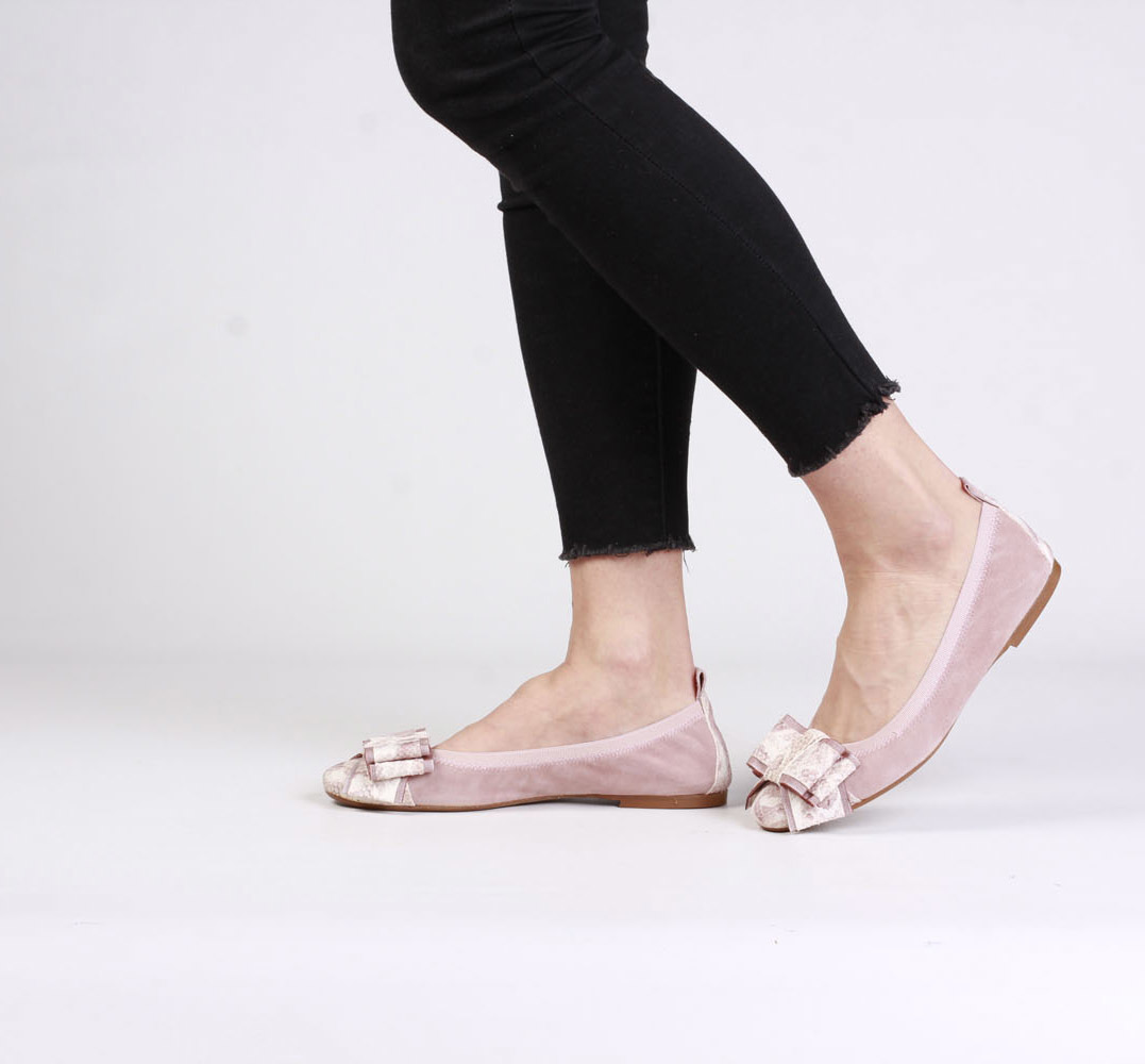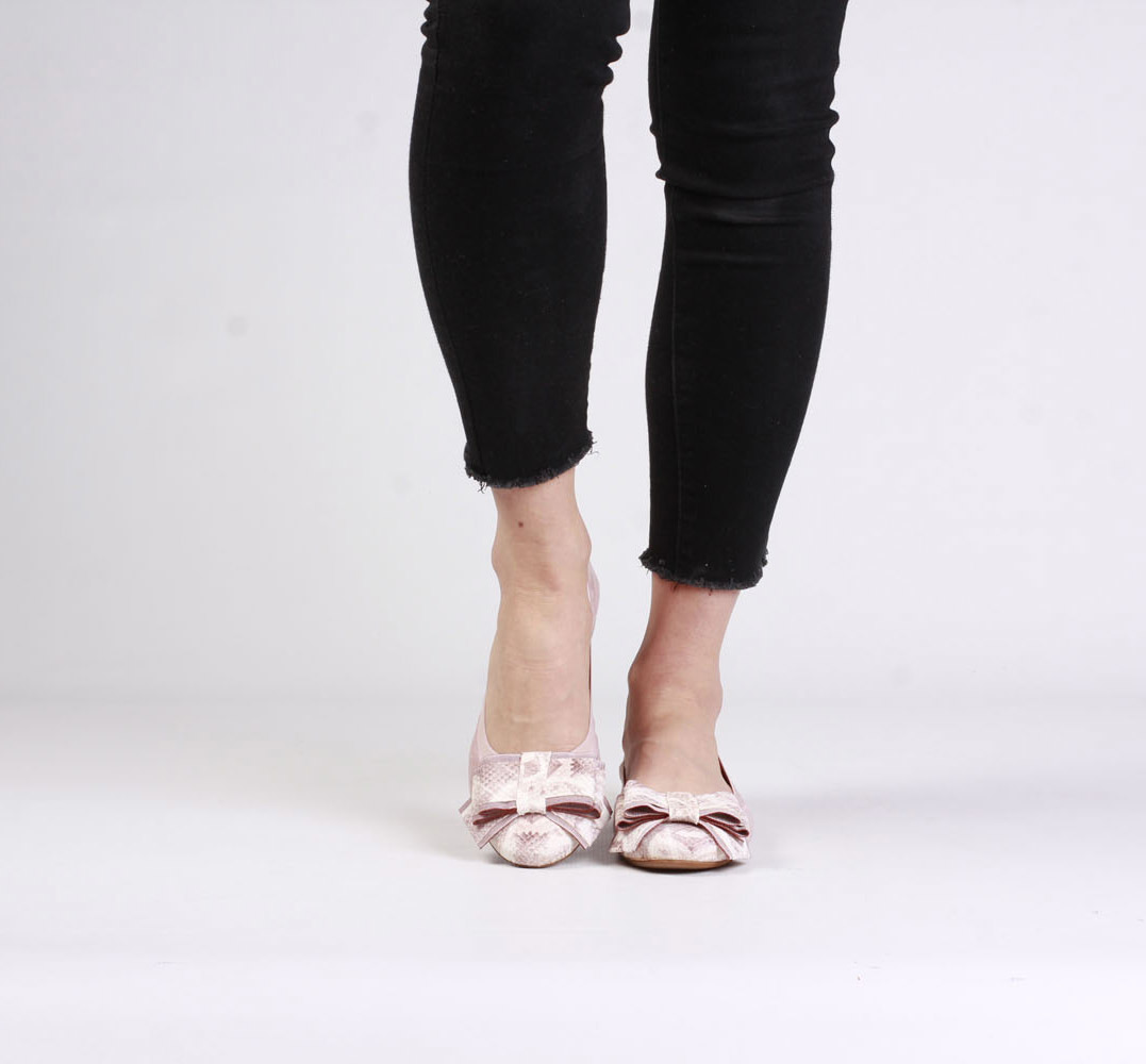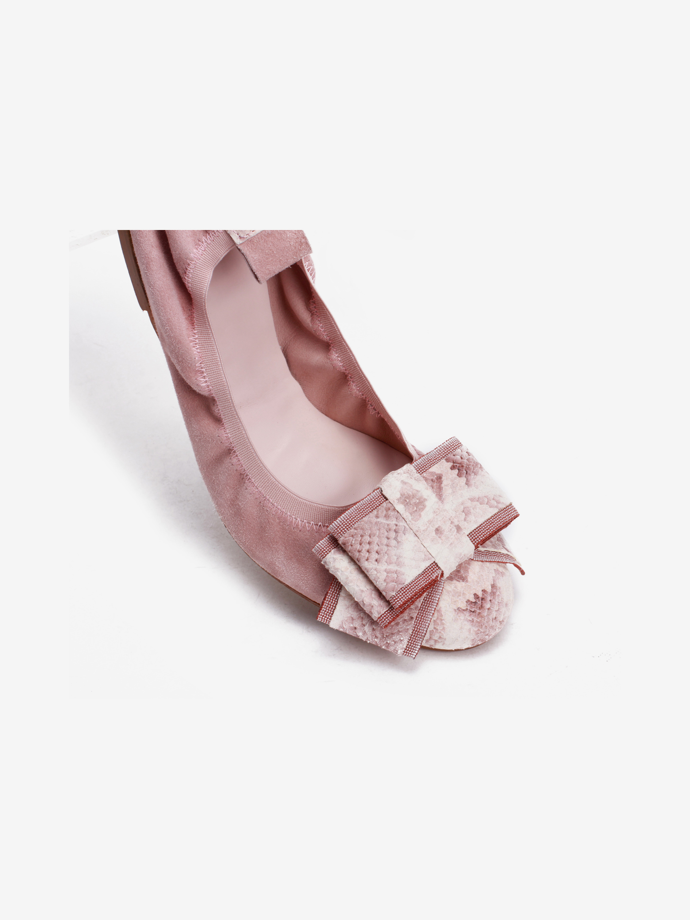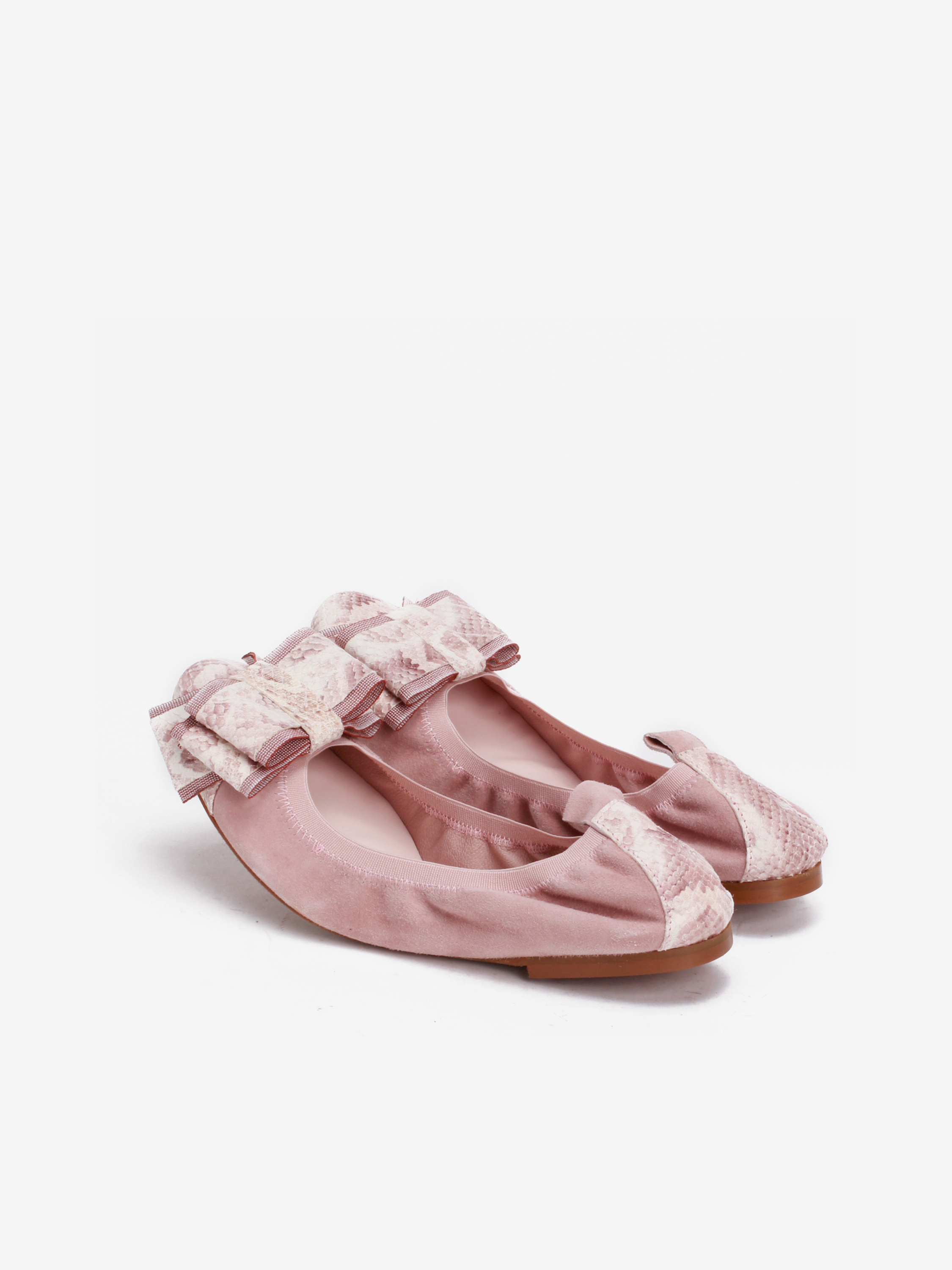 Piękne, wykonane z miękkiego zamszu baleriny to uniwersalna, ale przede wszystkim wygodna propozycja na sezon wiosna/lato. Skórzana wkładka zapewnia dodatkowy komfort przez wiele godzin. Wykończona gumką cholewka gwarantuje idealne dopasowanie się do stopy. Imitujący wężową skórkę print oraz duża, ozdobna kokarda na przodzie sprawia, że nabierają one charakteru. Będą idealnym uzupełnieniem każdej stylizacji!
