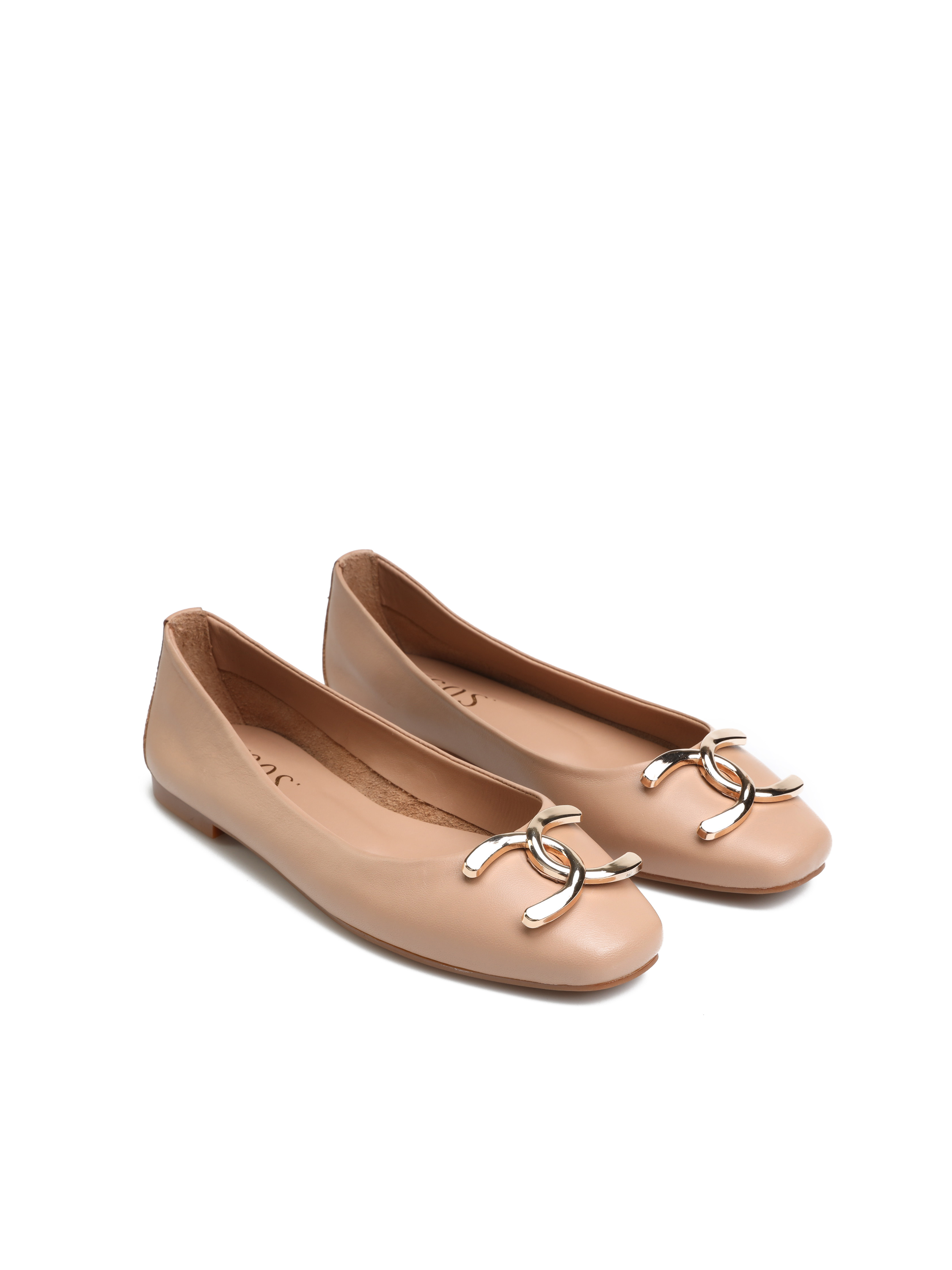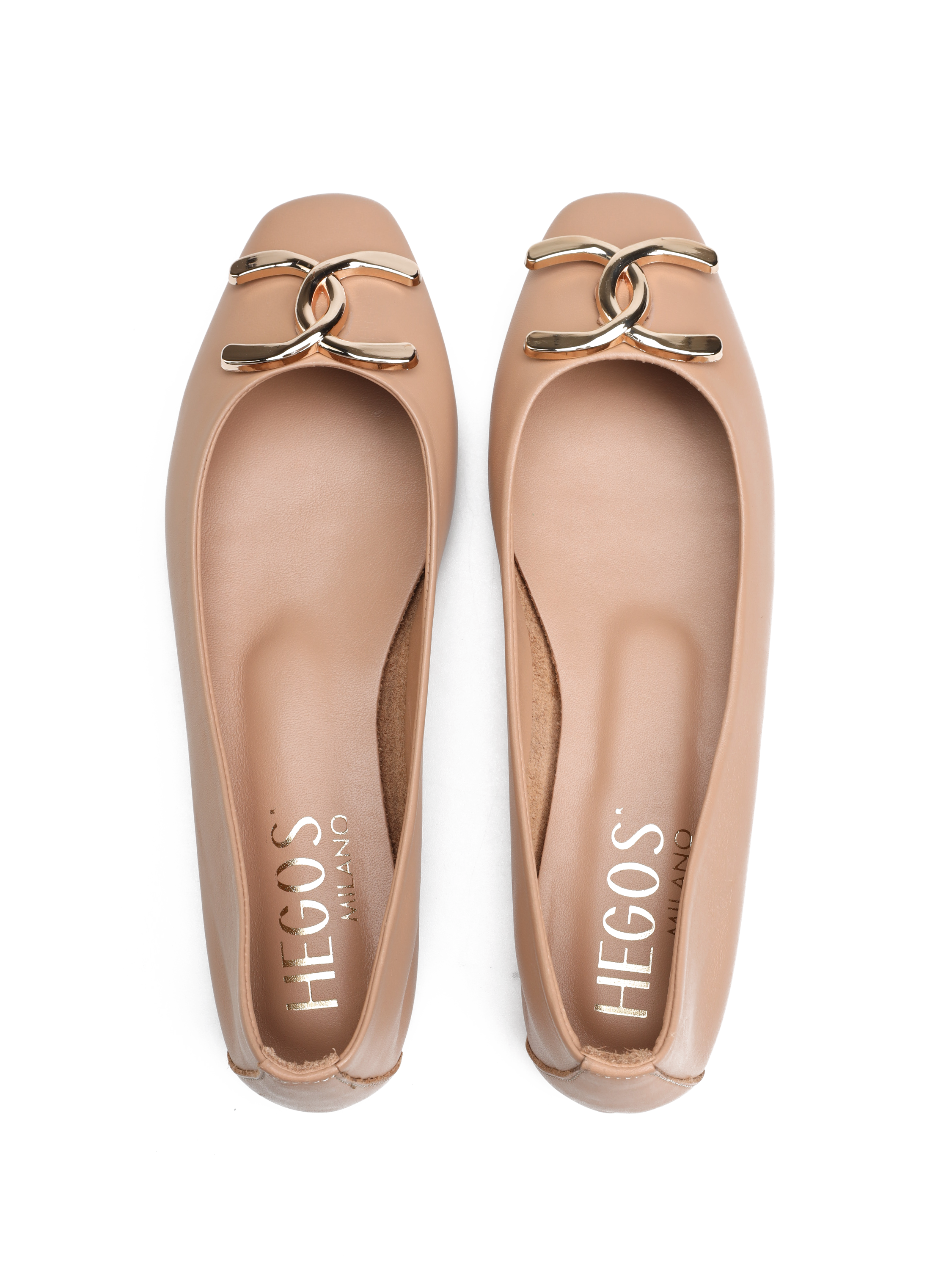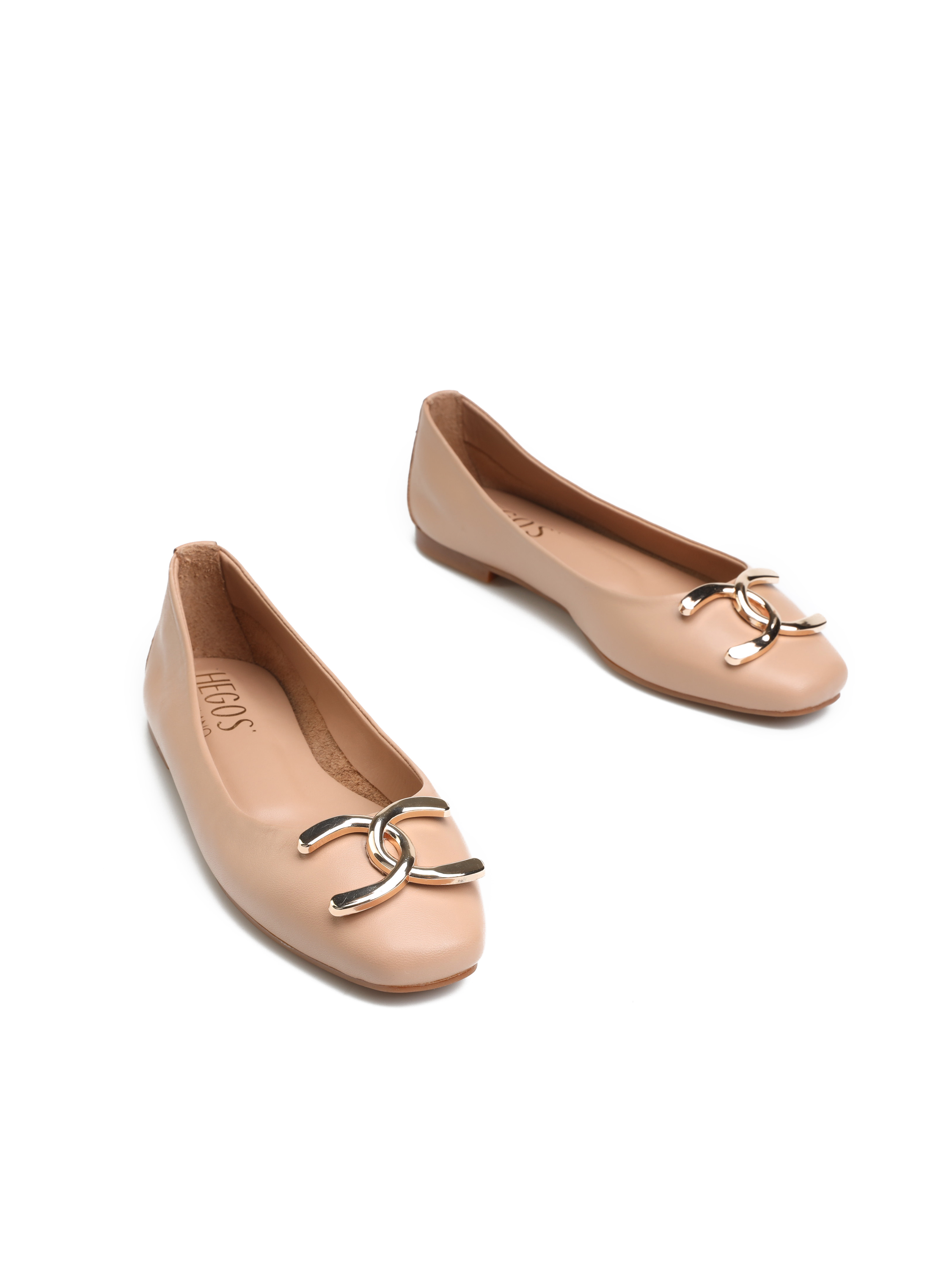 Baleriny na płaskim obcasie HEGO'S Milano to TOP Trend sezonu. Wykonane są z włoskiej naturalnej skóry NAPPA. Miękka, skórzana wkładka i płaski obcas odpowiadają za wygodę i komfort noszenia butów przez cały dzień. Cholewka wzbogacona została o metaliczny detal w złotym kolorze. Ścięty nosek wpisuje się nie tylko w obecne Trendy. Klasyczny fason w beżowym kolorze natury będzie ozdobą i dopełnieniem modnej garderoby kobiety.