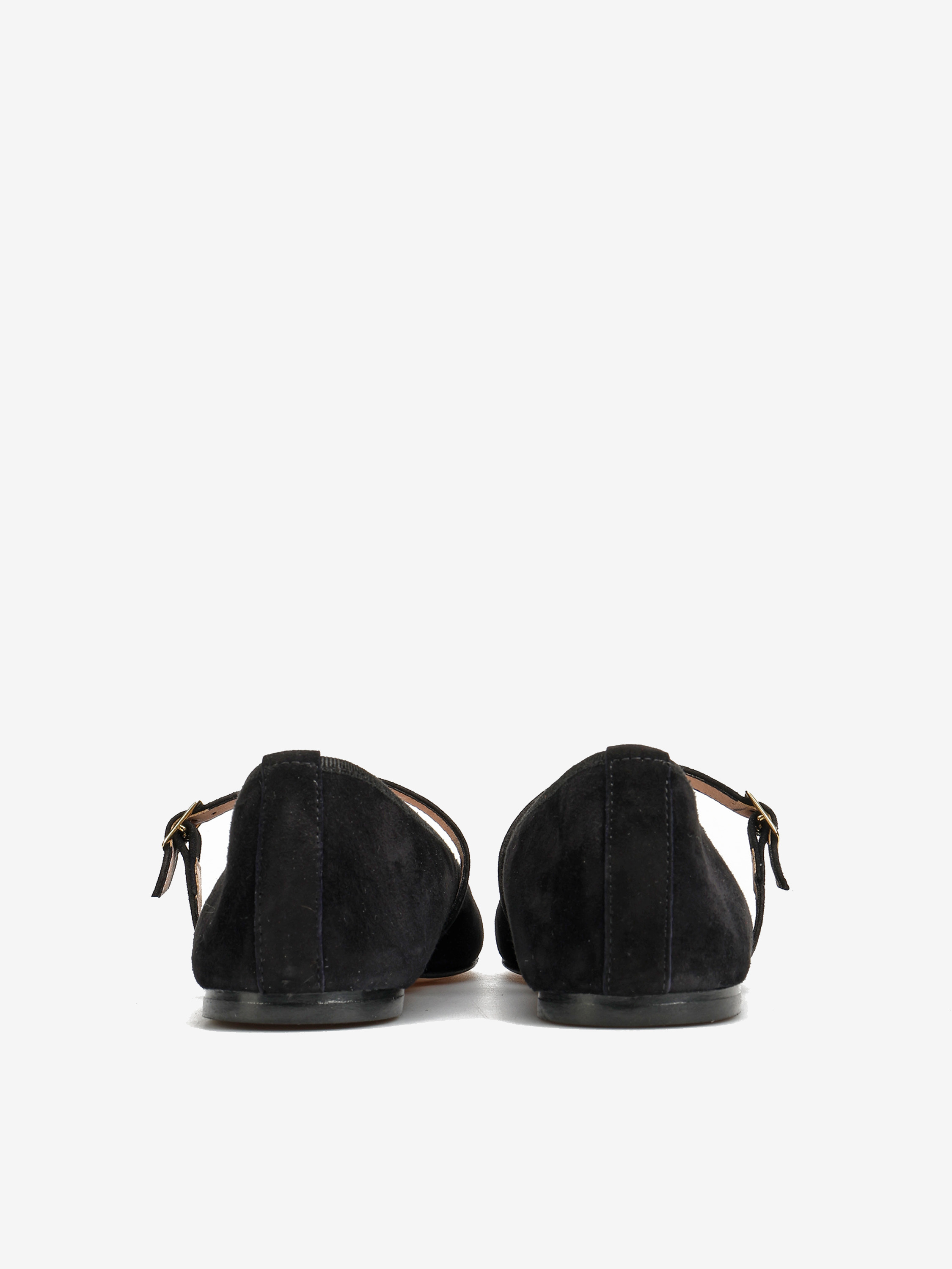 Zamszowe baleriny Mary Jane z noskiem w szpic. Regulowany pasek.