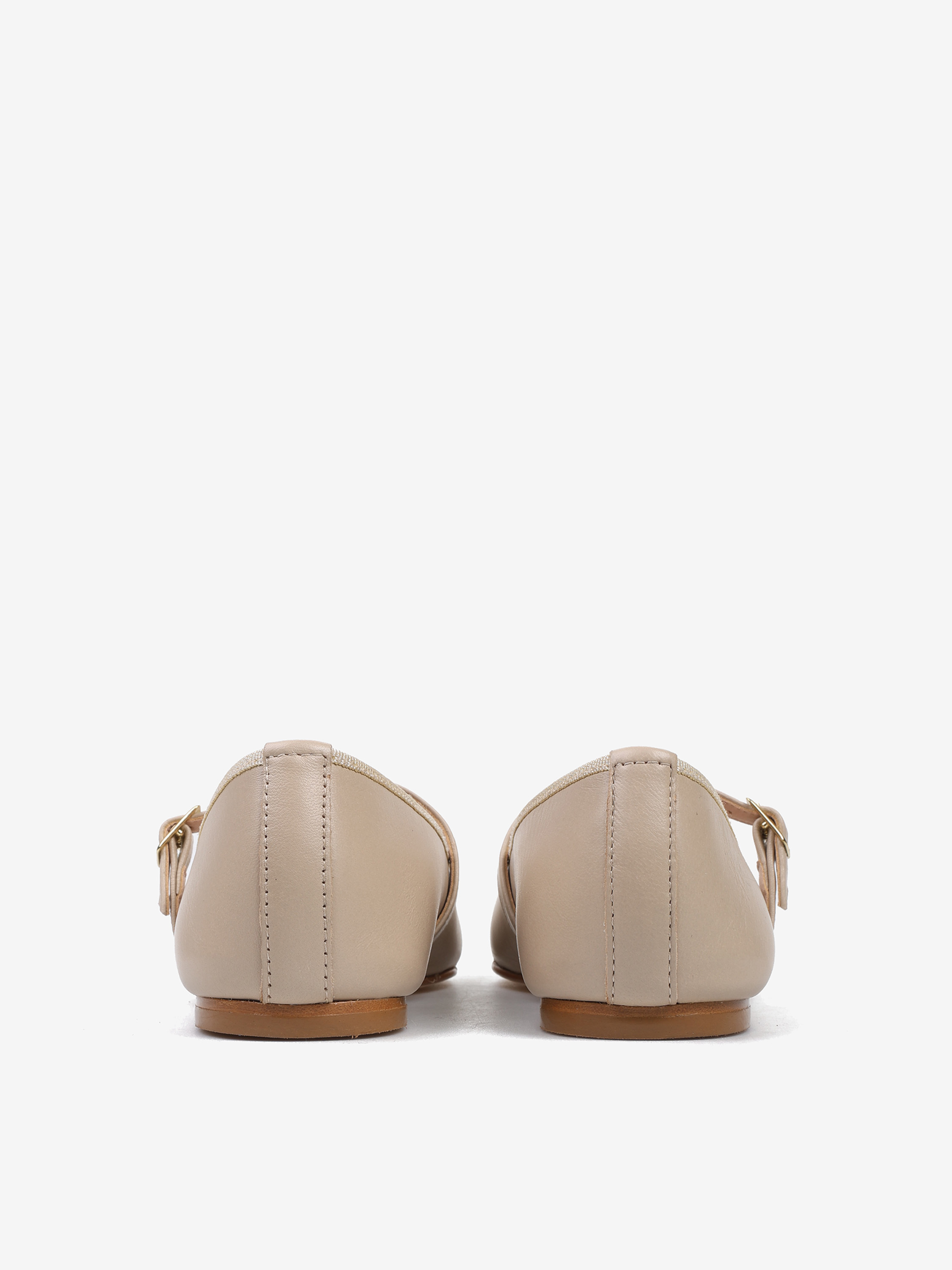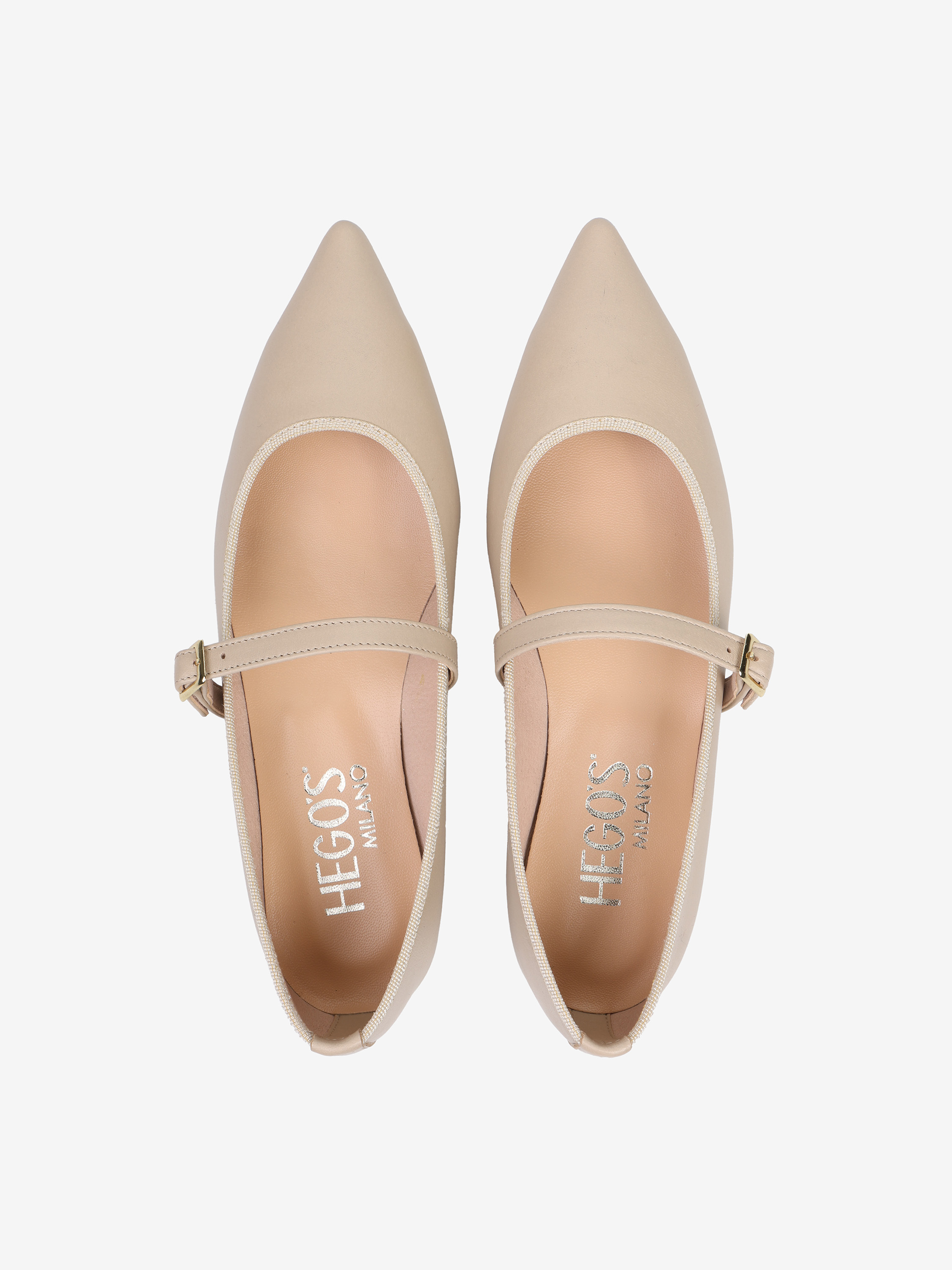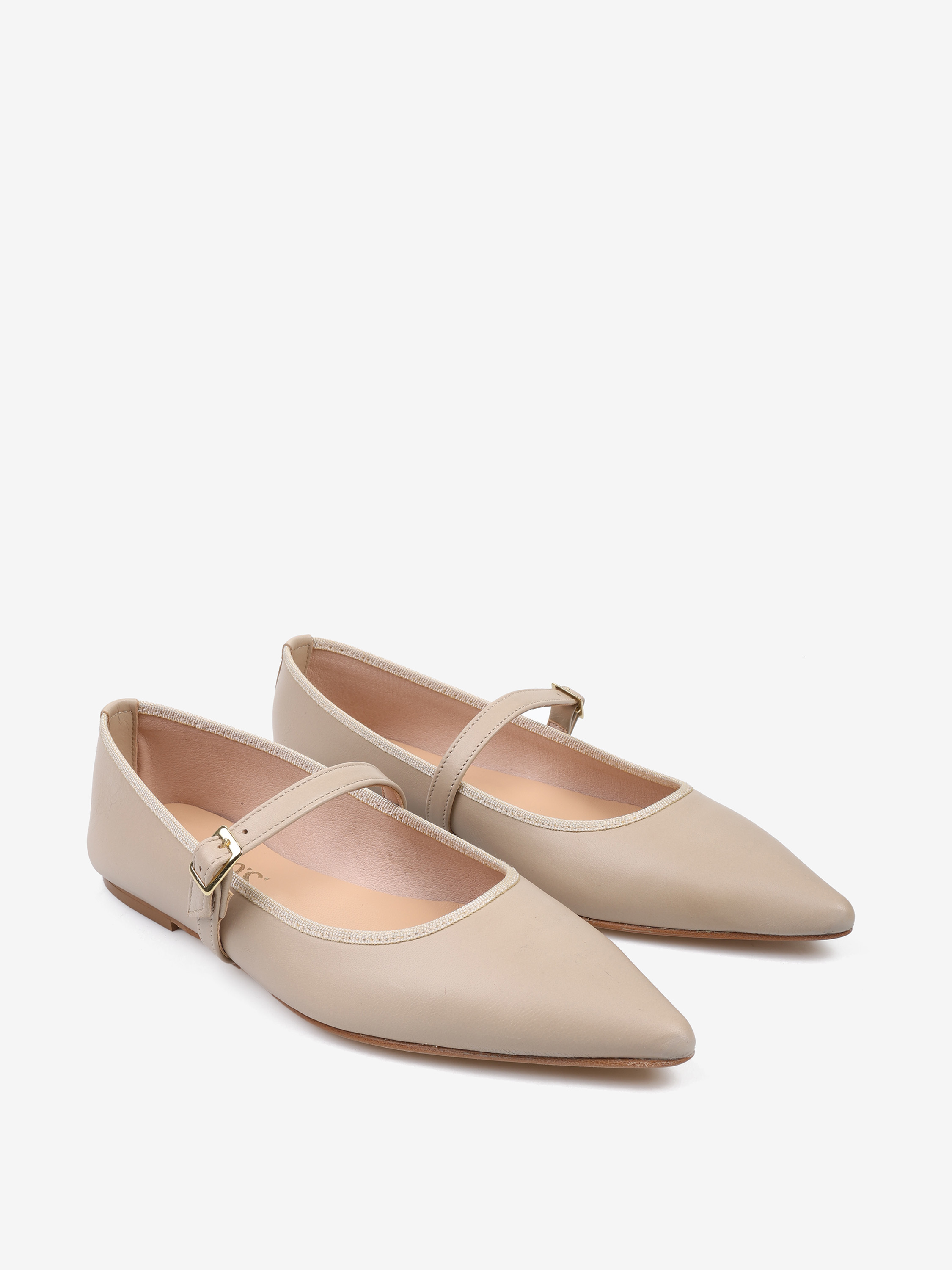 Baleriny Mary Jane z noskiem w szpic wykonane z delikatnej, miękkiej skóry. Regulowany pasek.