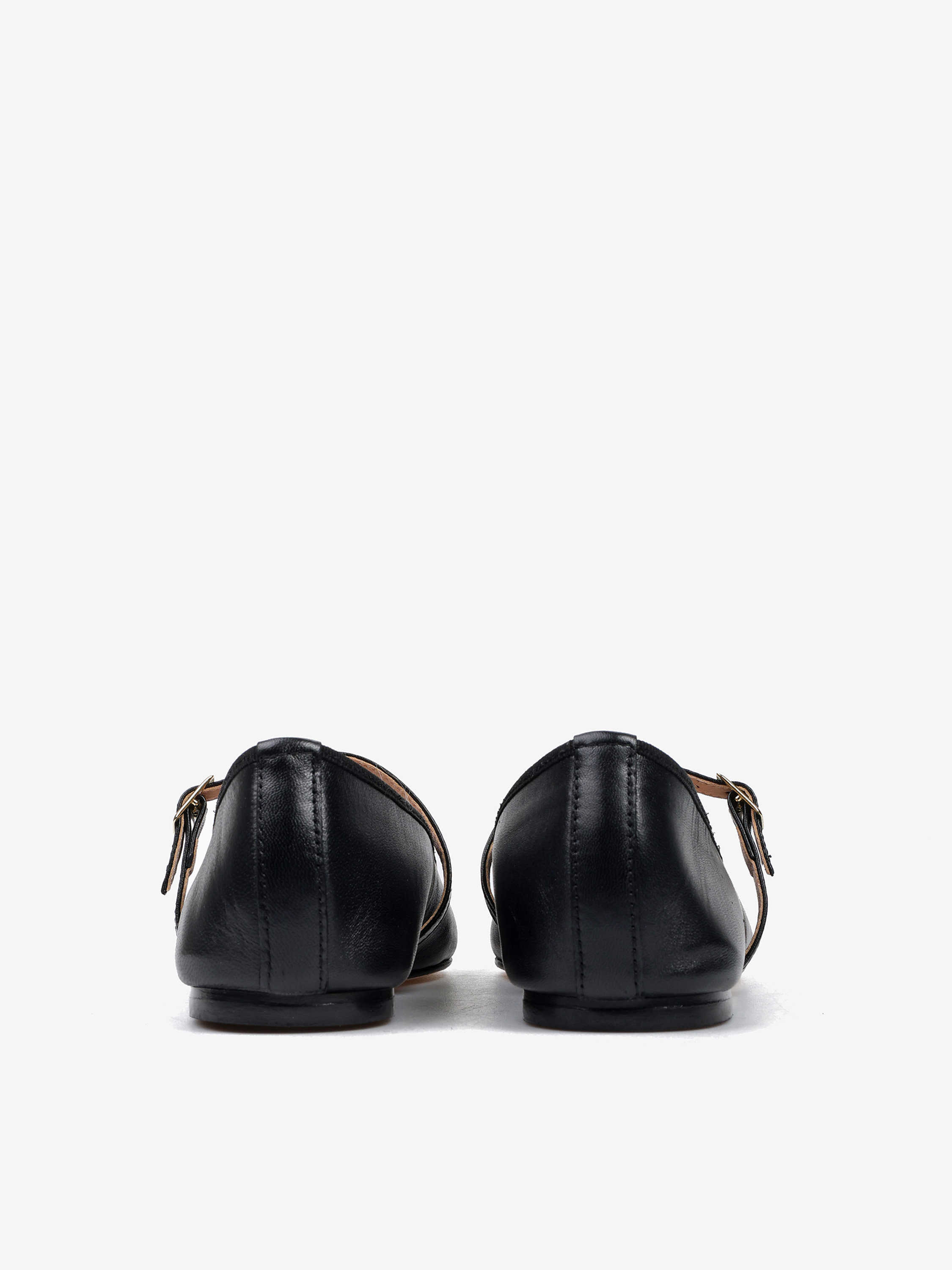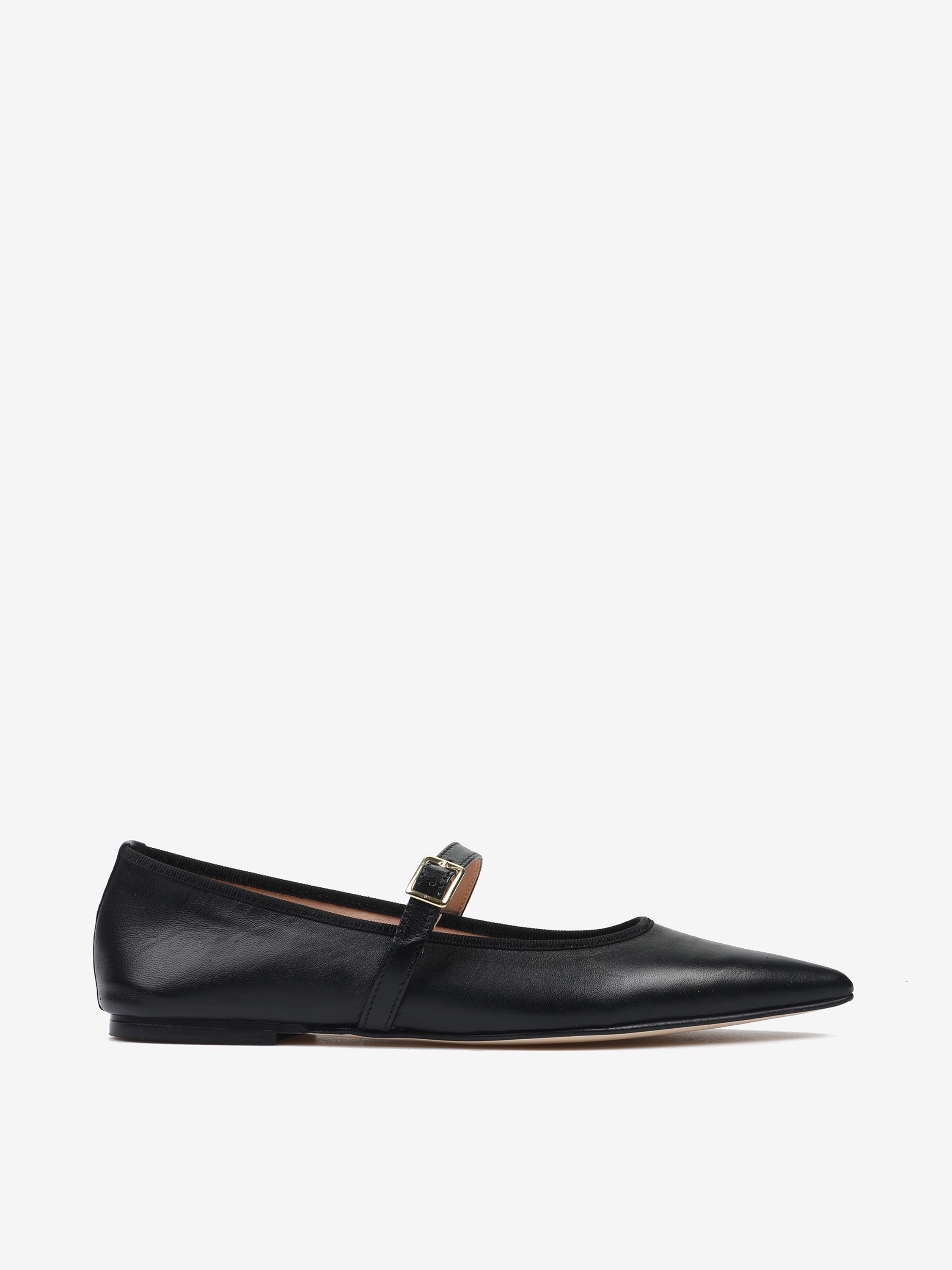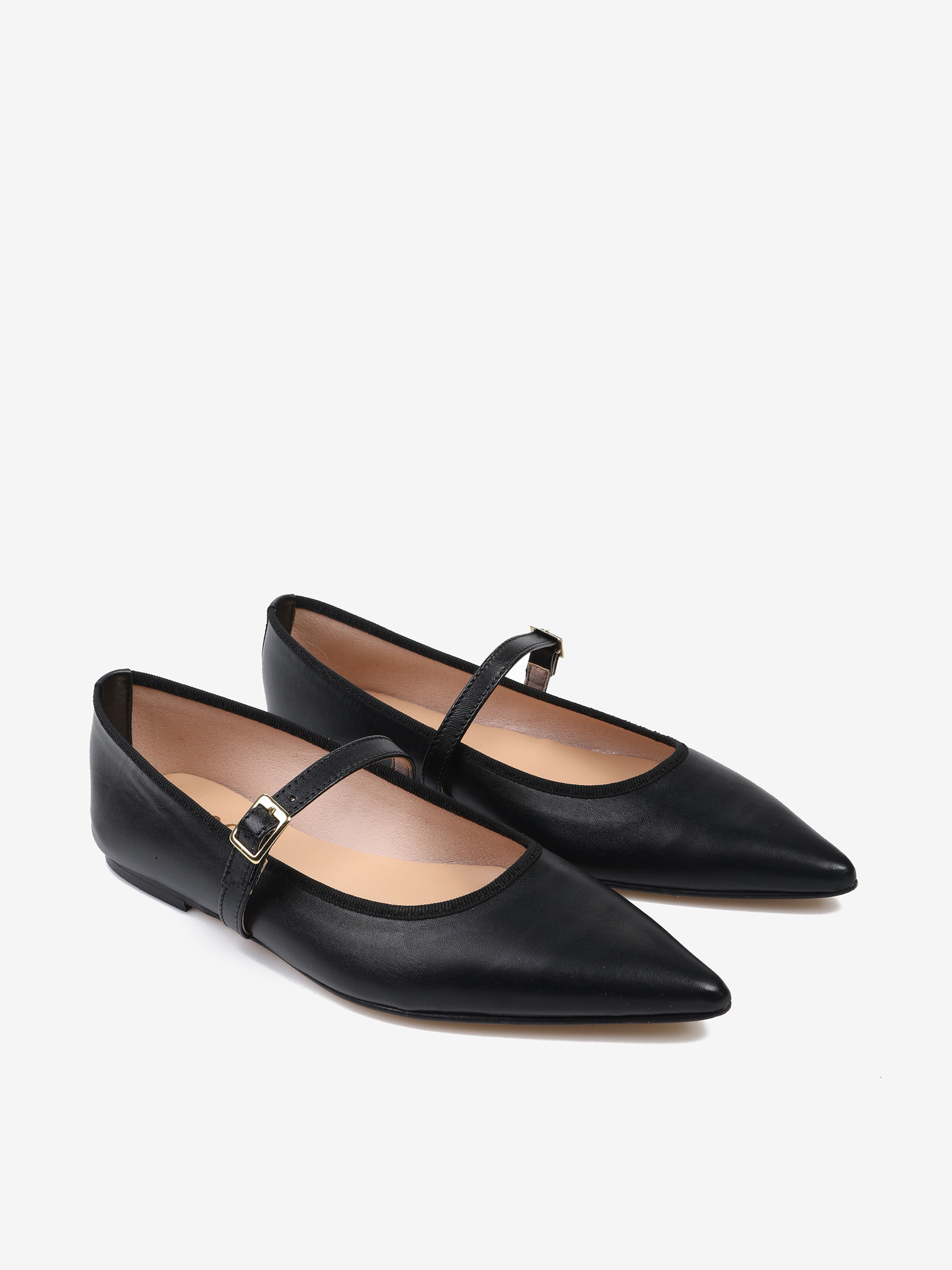 Baleriny Mary Jane z noskiem w szpic wykonane z delikatnej, miękkiej skóry. Regulowany pasek.