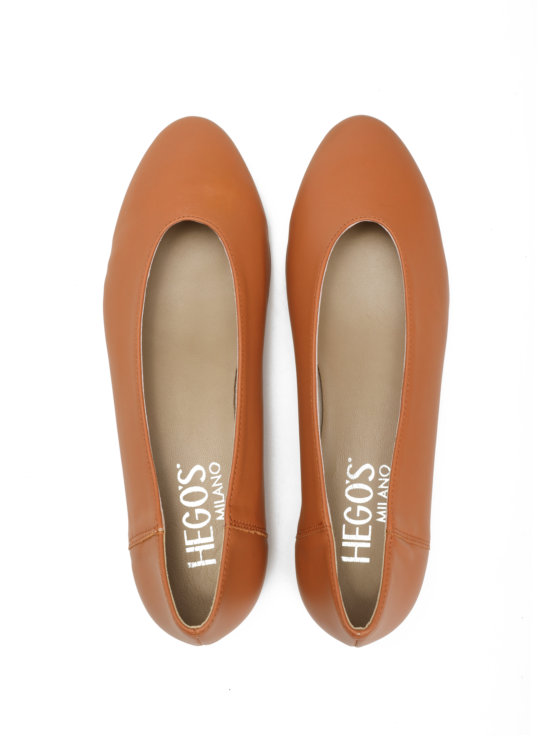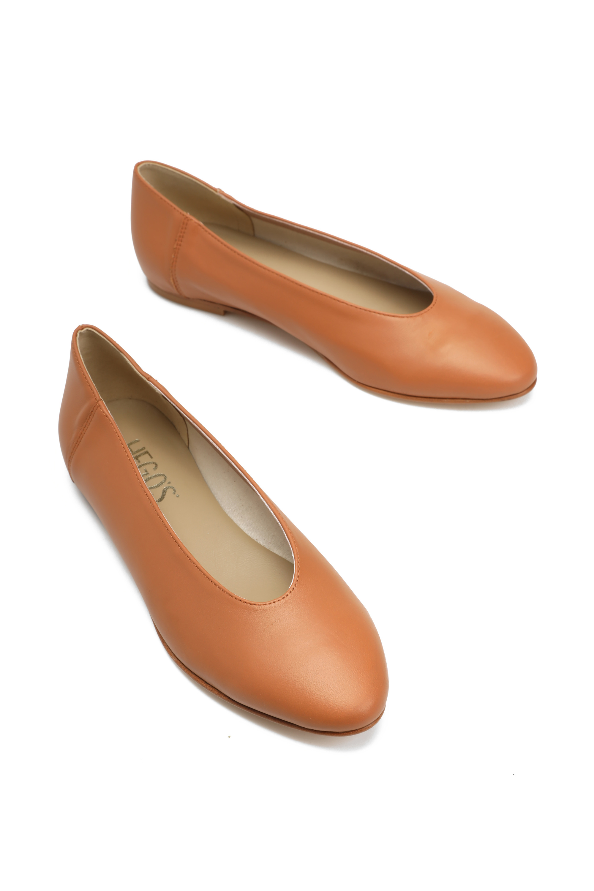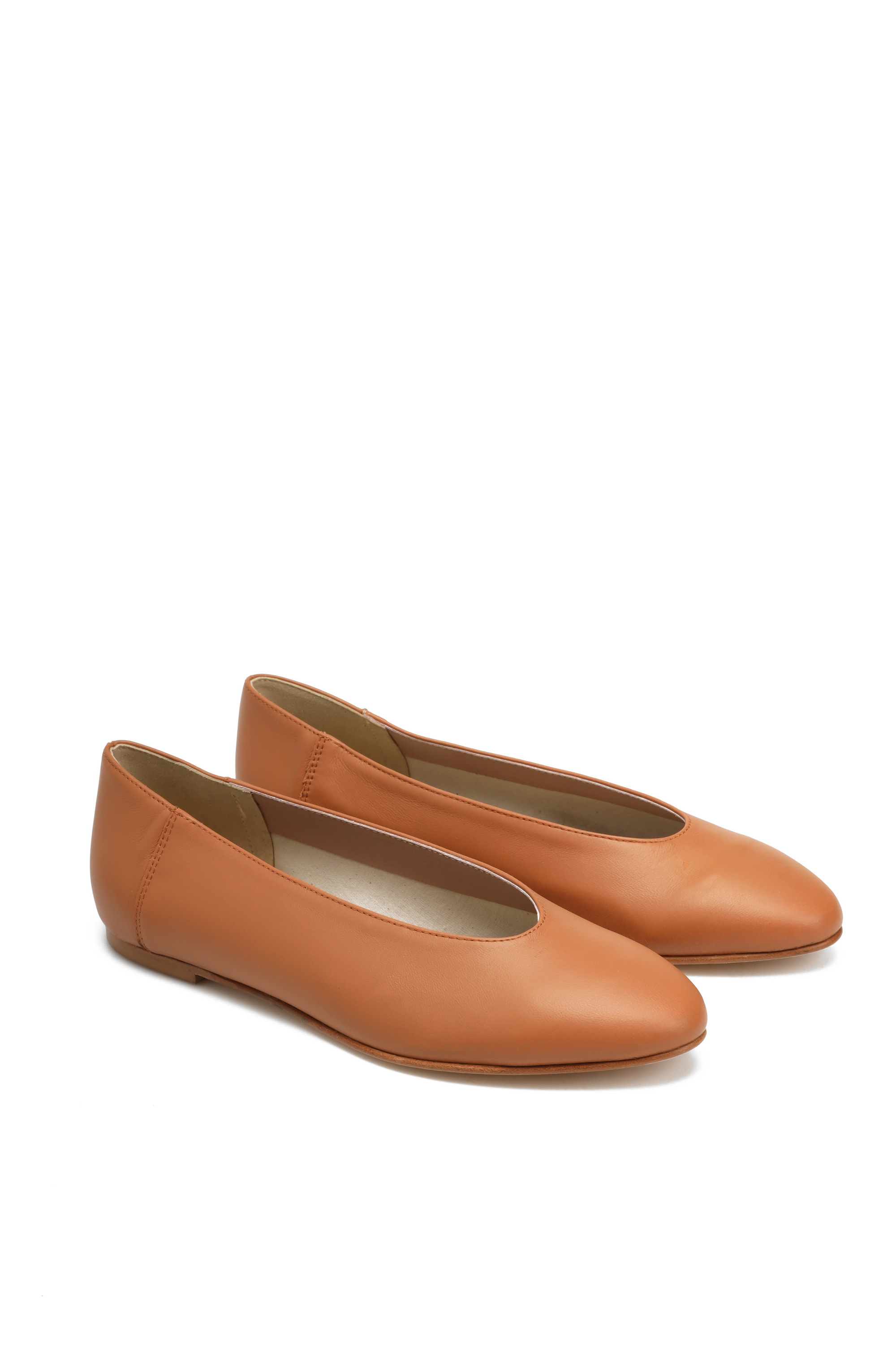 Proste baleriny z owalnym wycięciem i zabudowanymi brzegami na skórzanej podeszwie, wykonane z delikatnej, miękkiej skóry.