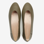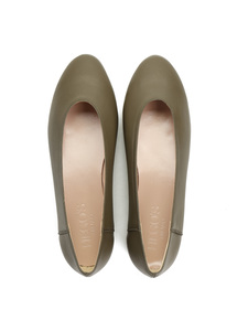 Proste baleriny z owalnym wycięciem i zabudowanymi brzegami na skórzanej podeszwie, wykonane z delikatnej, miękkiej skóry.