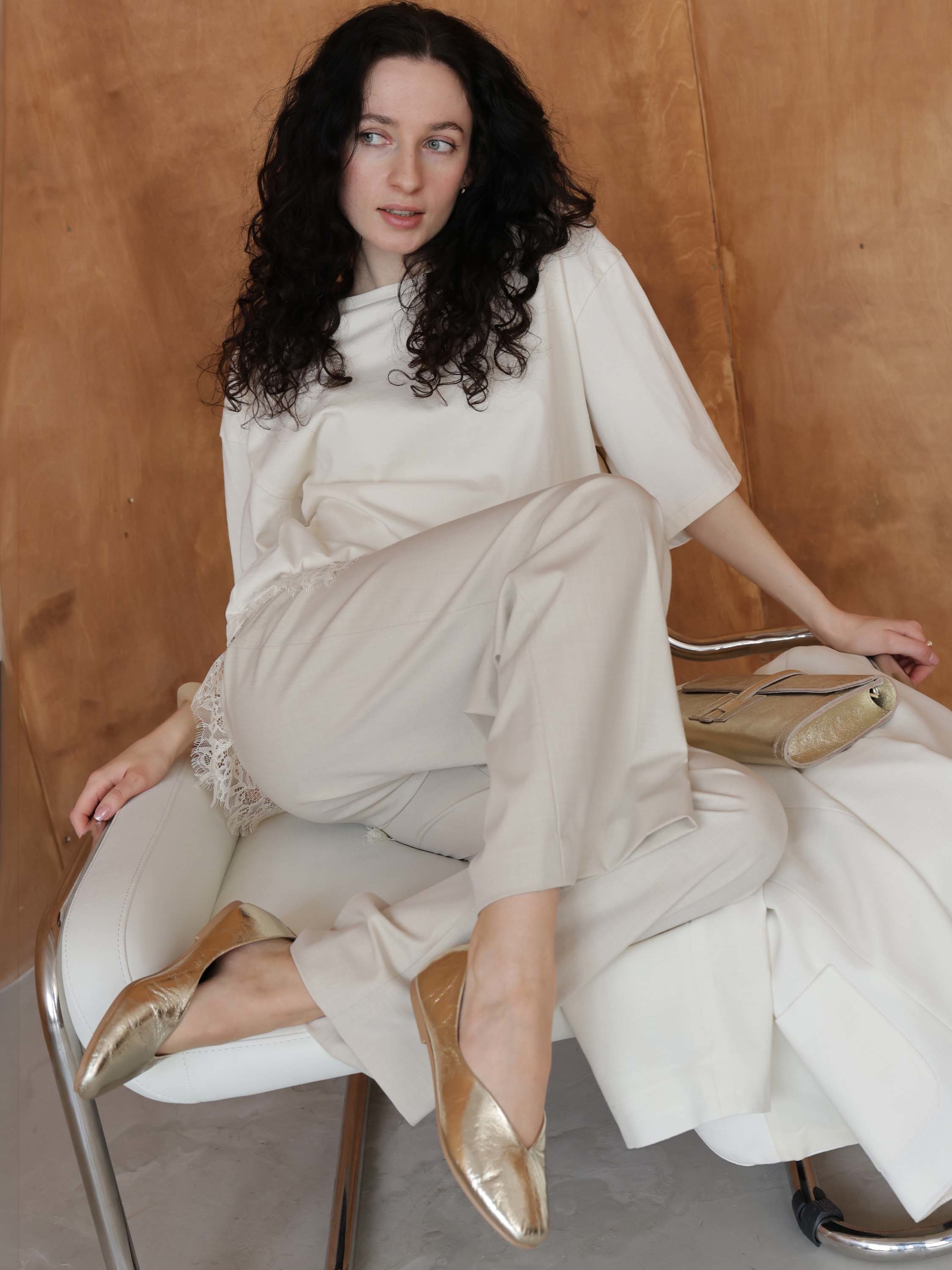 ZŁOTE BALERINY Z WYCIĘCIEM HEGO'S MILANO