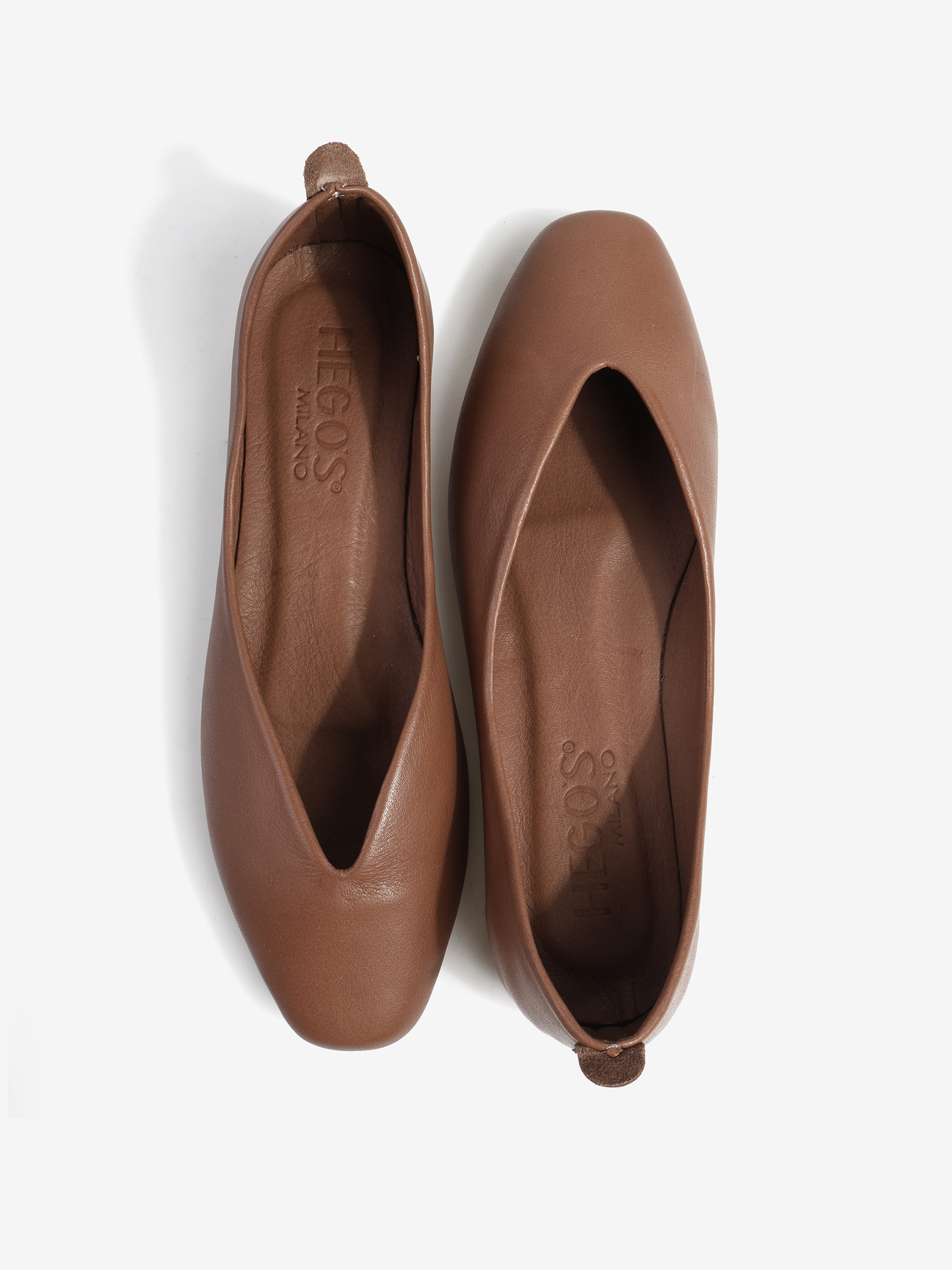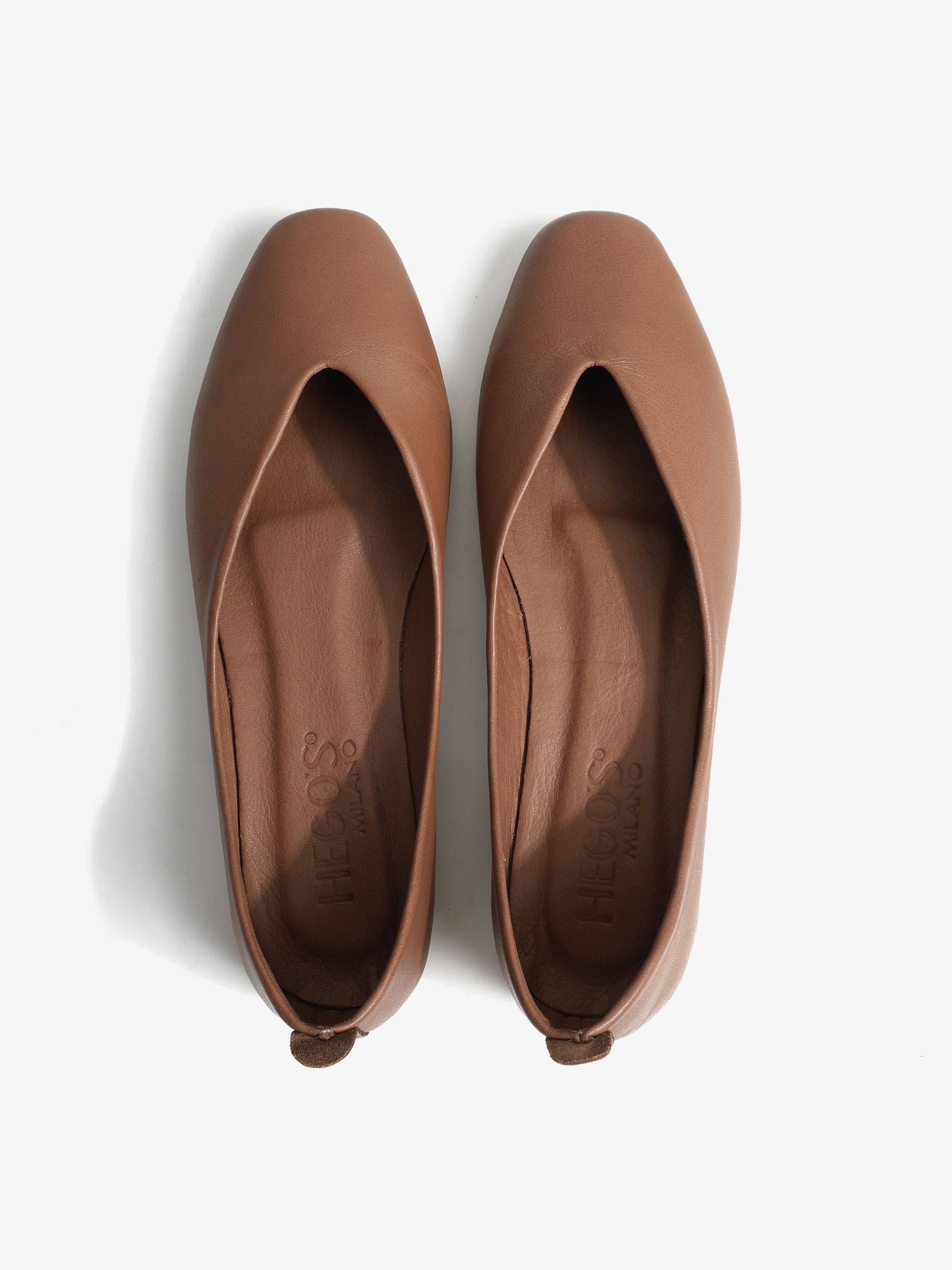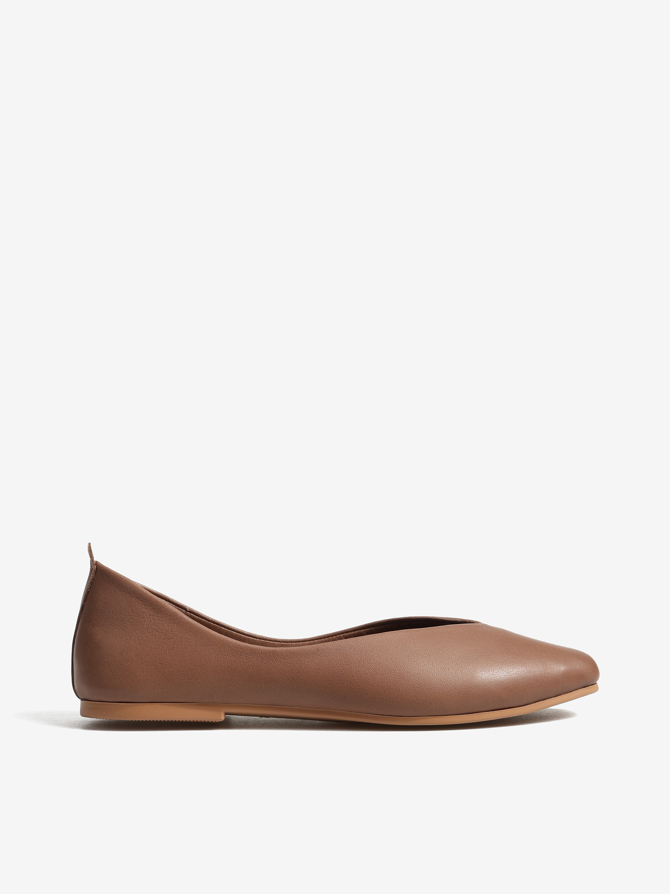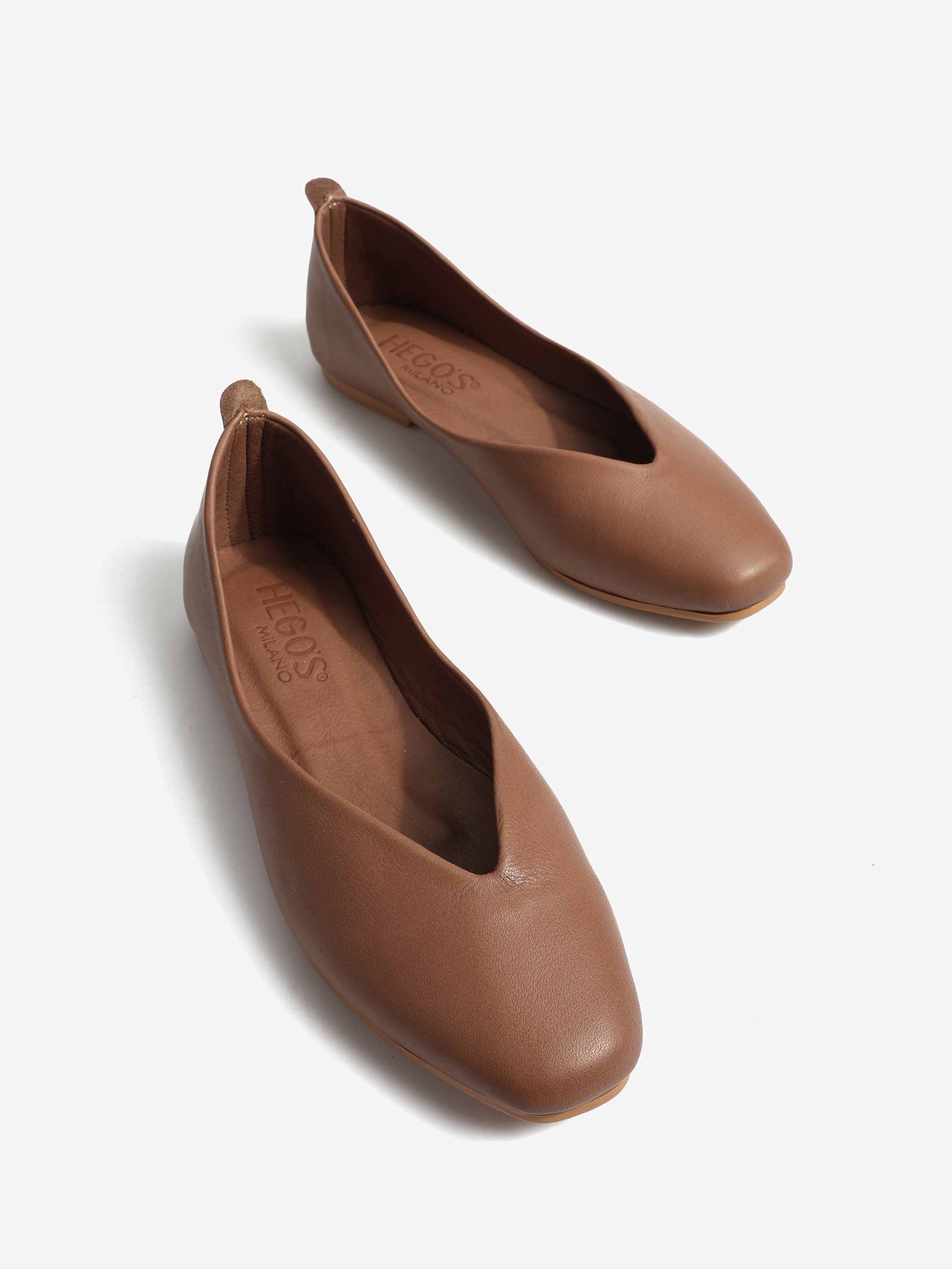 Baleriny wykonane z delikatnej, miękkiej skóry. Kwadratowy nosek i głębokie wycięcie w szpic.