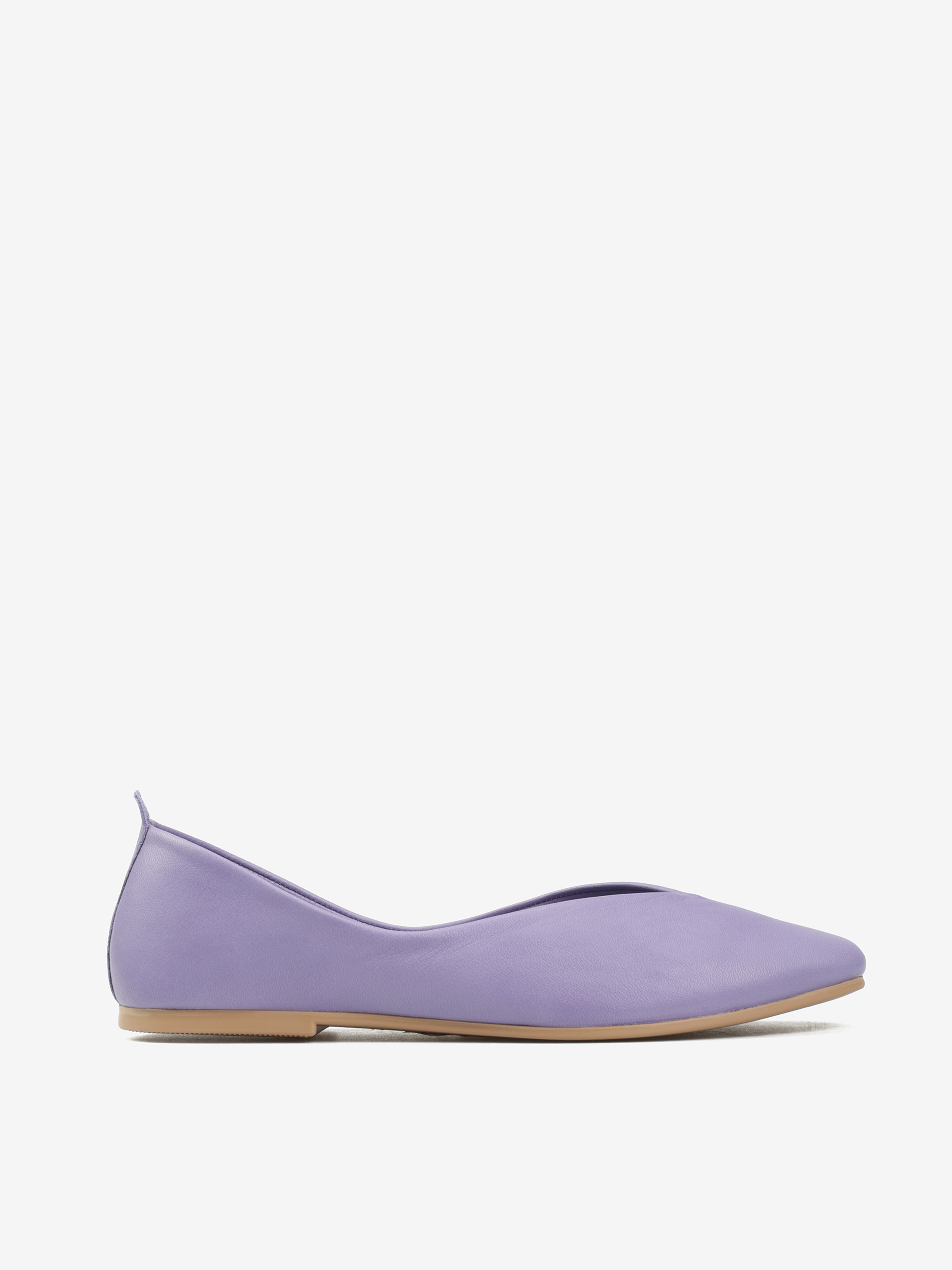 Baleriny wykonane z delikatnej, miękkiej skóry. Kwadratowy nosek i głębokie wycięcie w szpic.