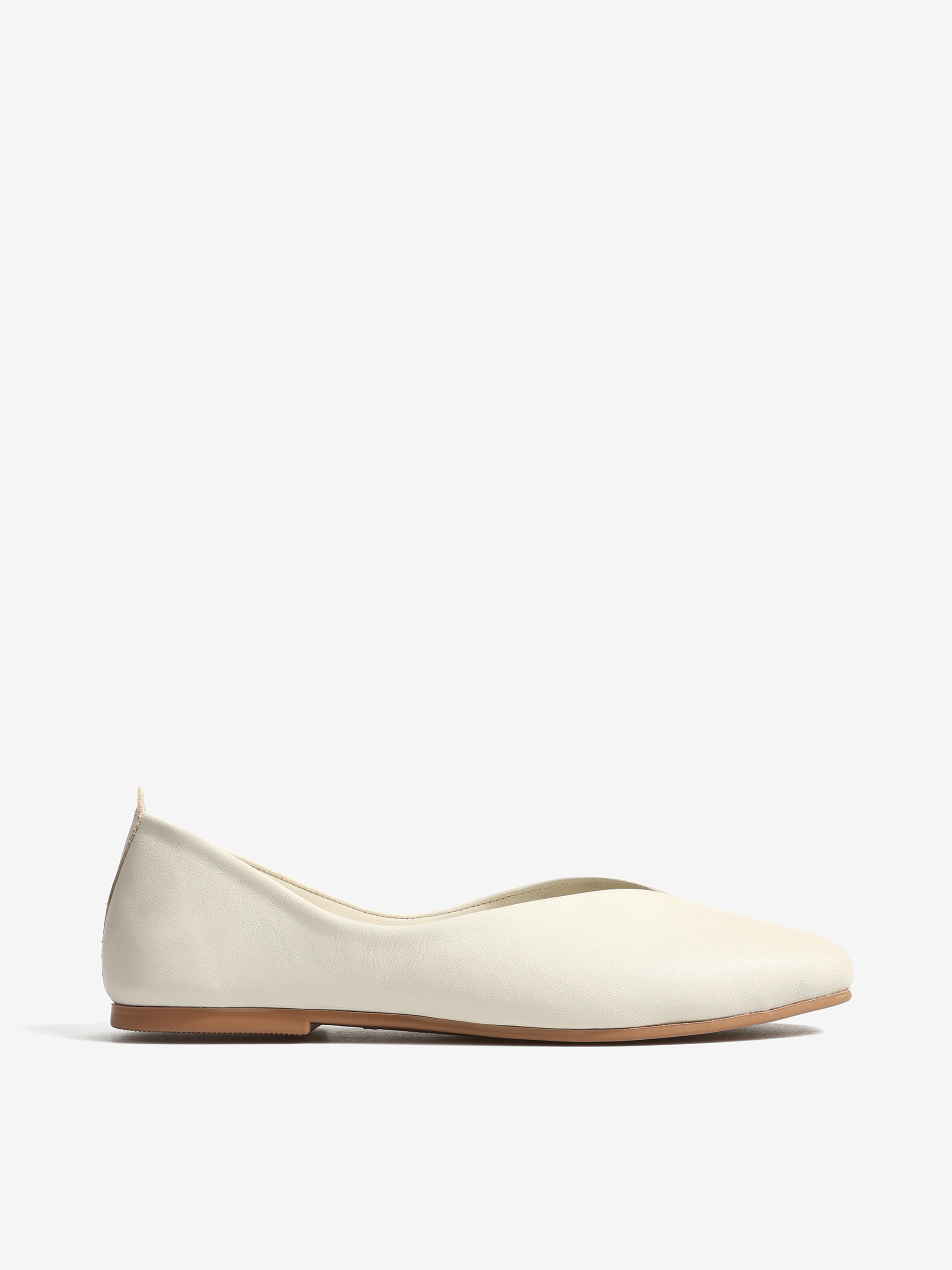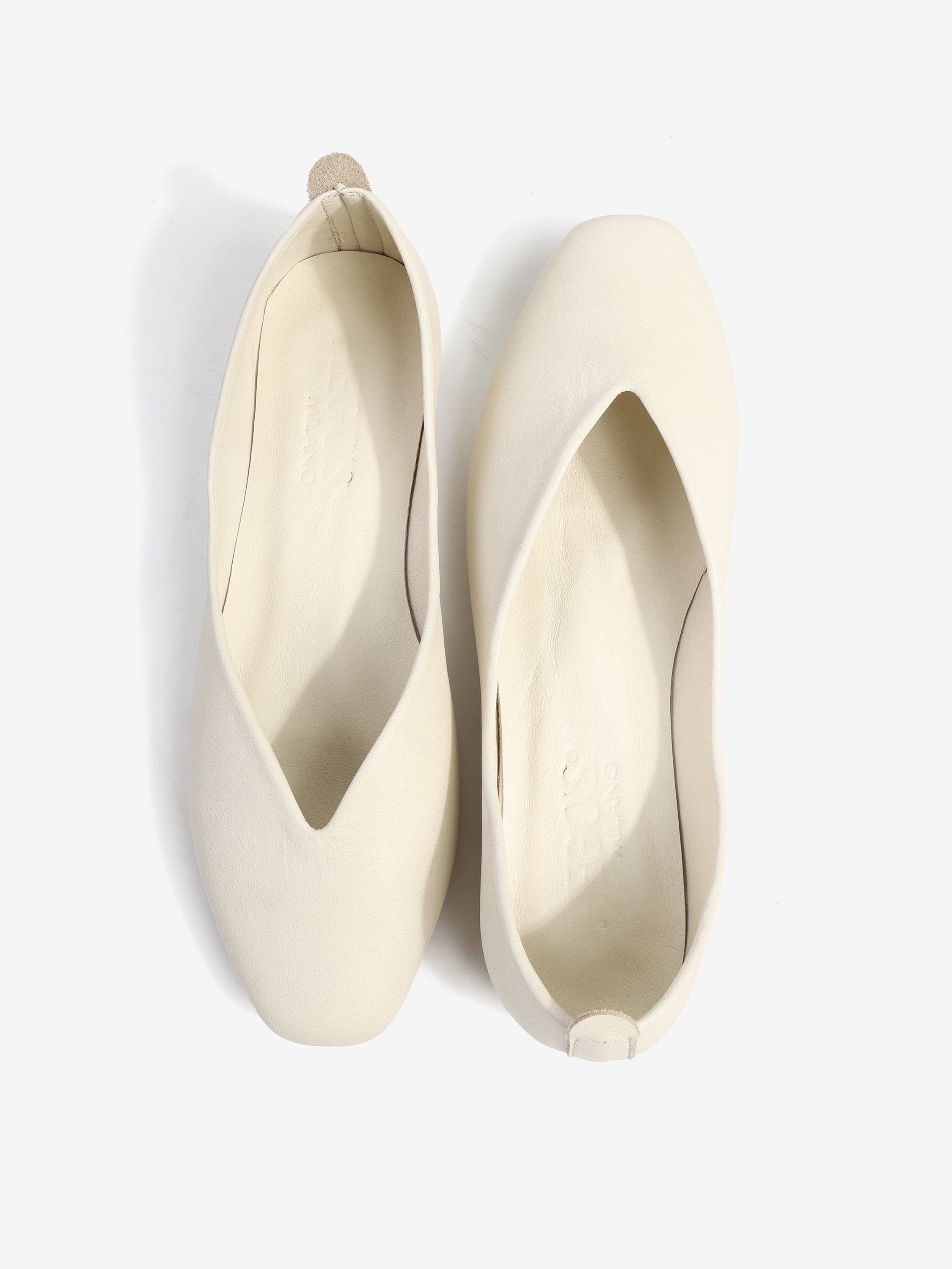 Baleriny wykonane z delikatnej, miękkiej skóry. Kwadratowy nosek i głębokie wycięcie w szpic.