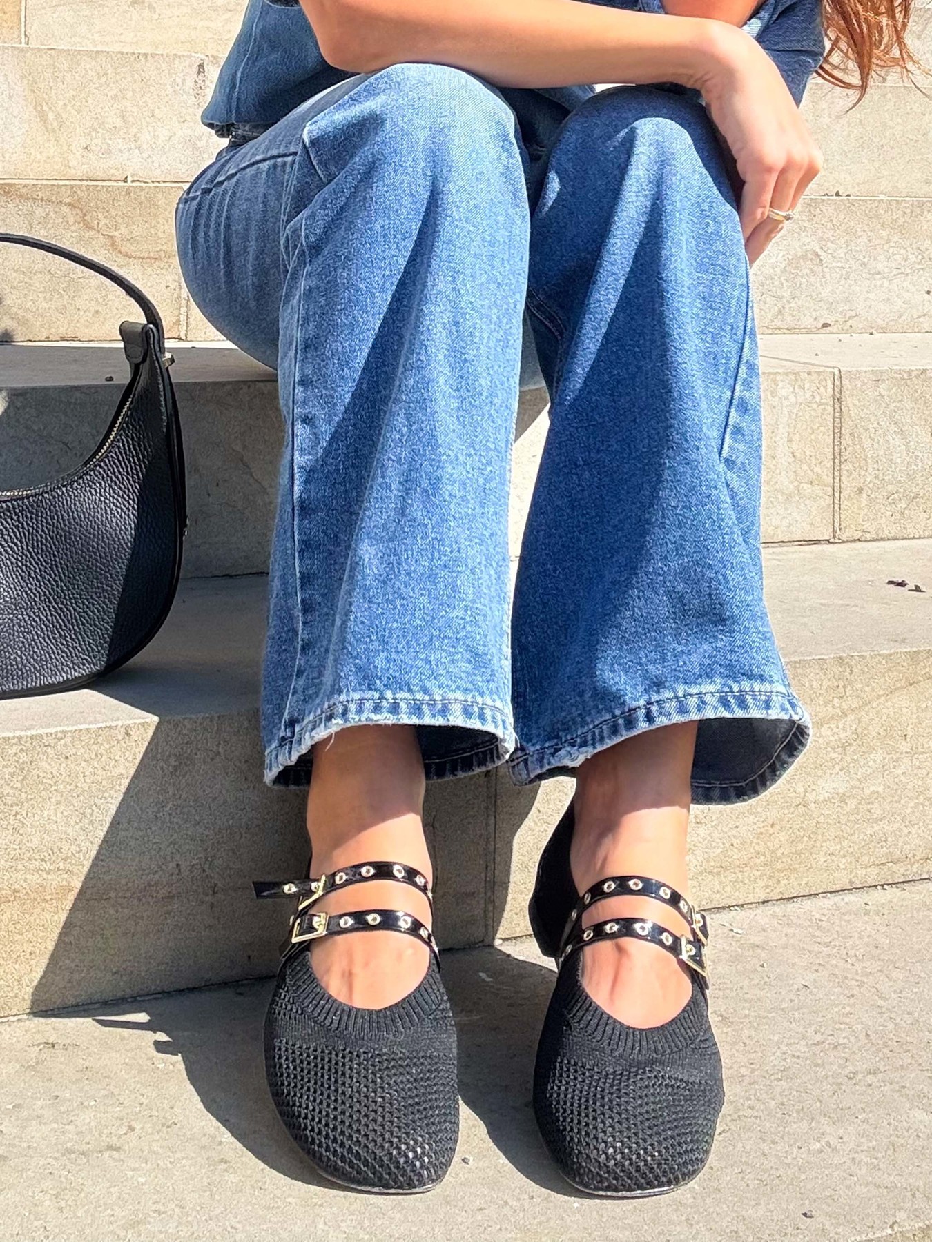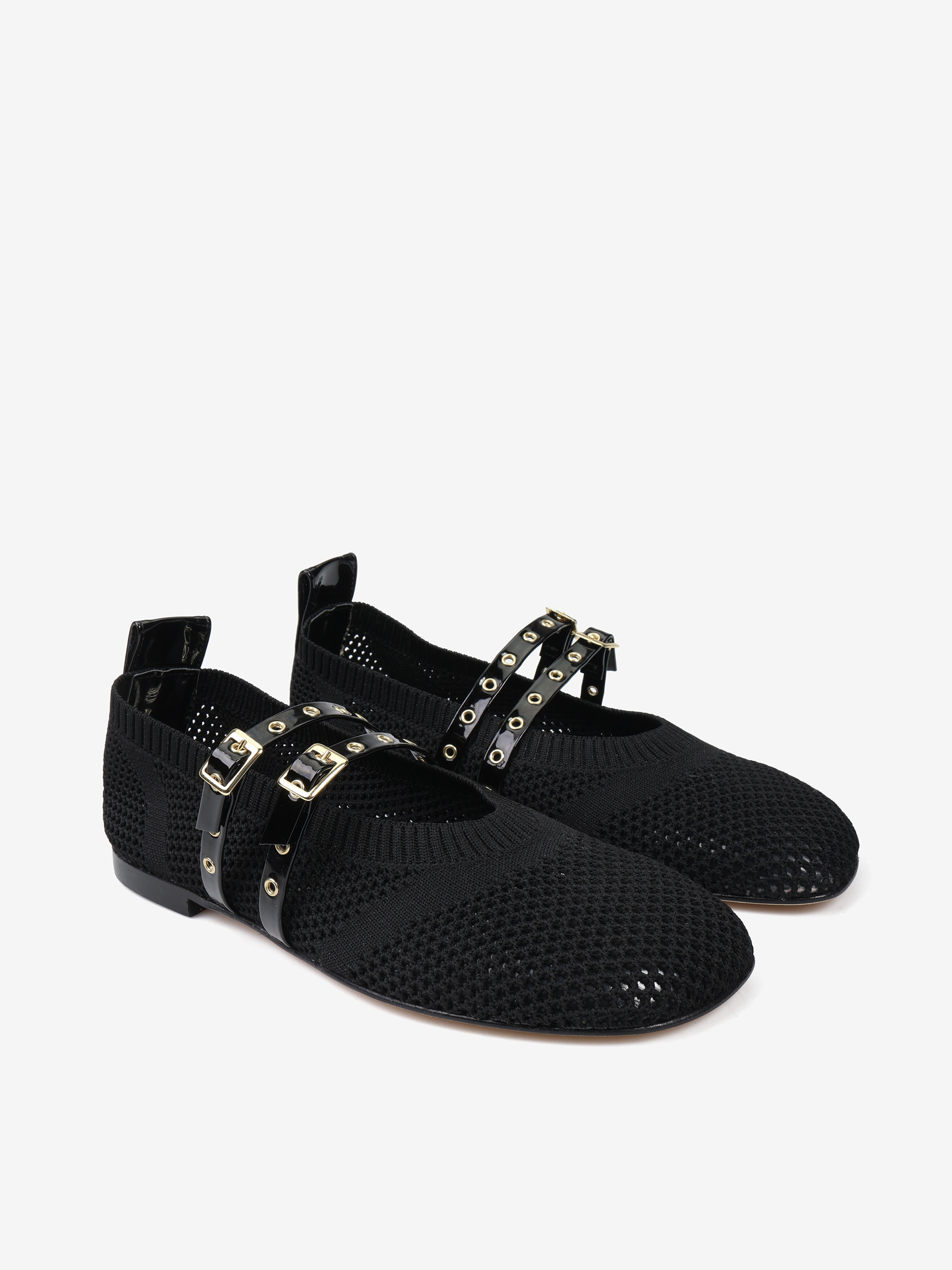Baleriny wykonane z elastycznej, przewiewnej siateczki dopasowującej się do stopy. Regulowane paski.