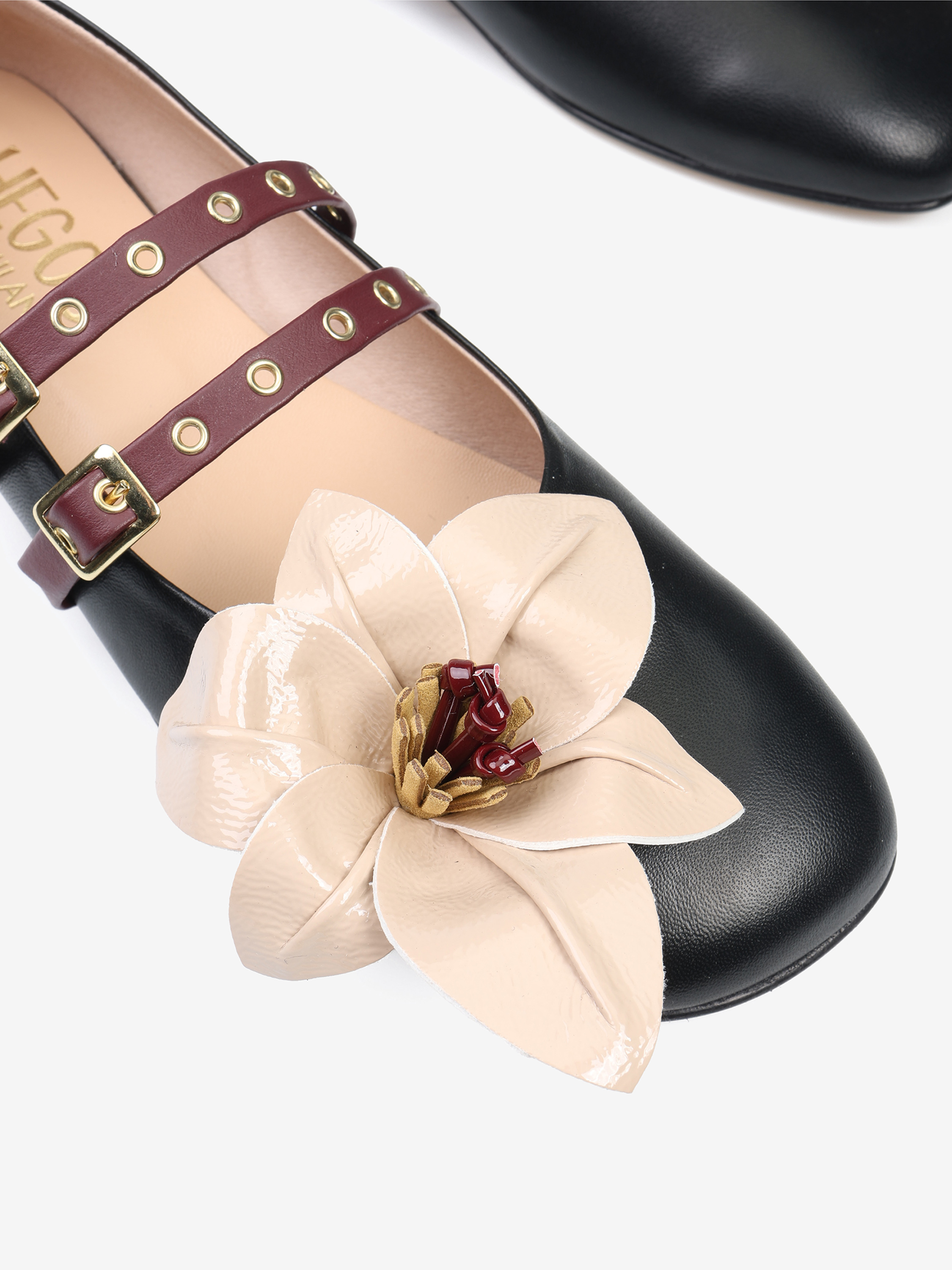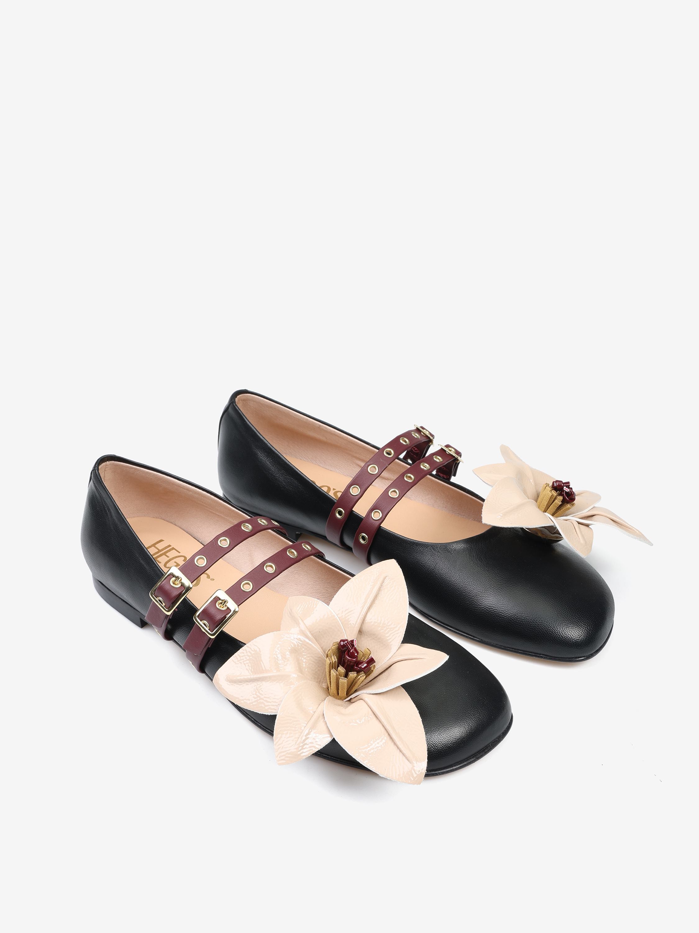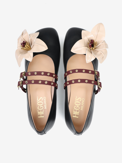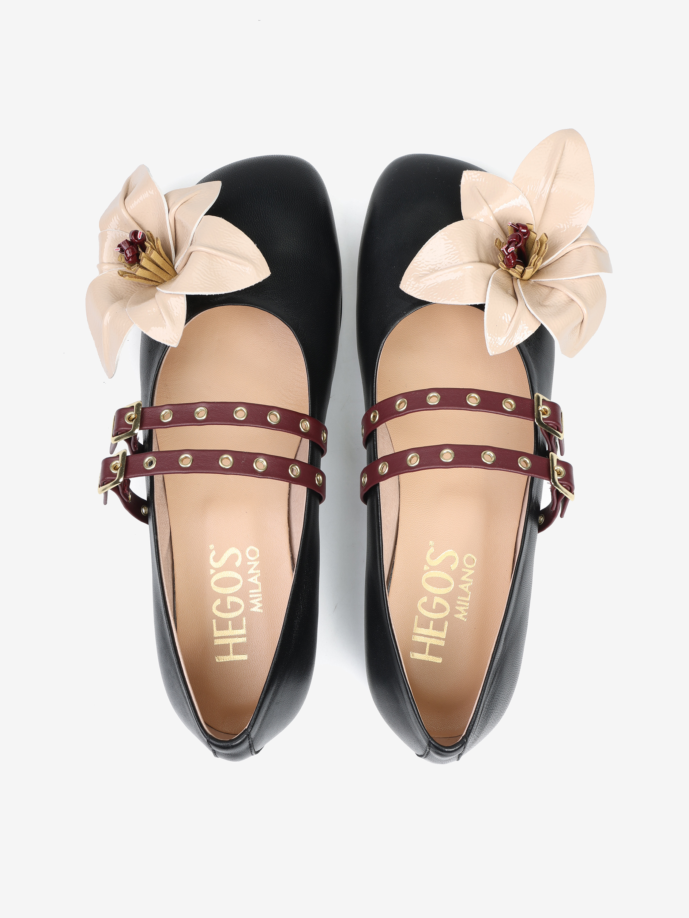 CZARNE BALERINY Z KWIATEM HEGO'S Milano