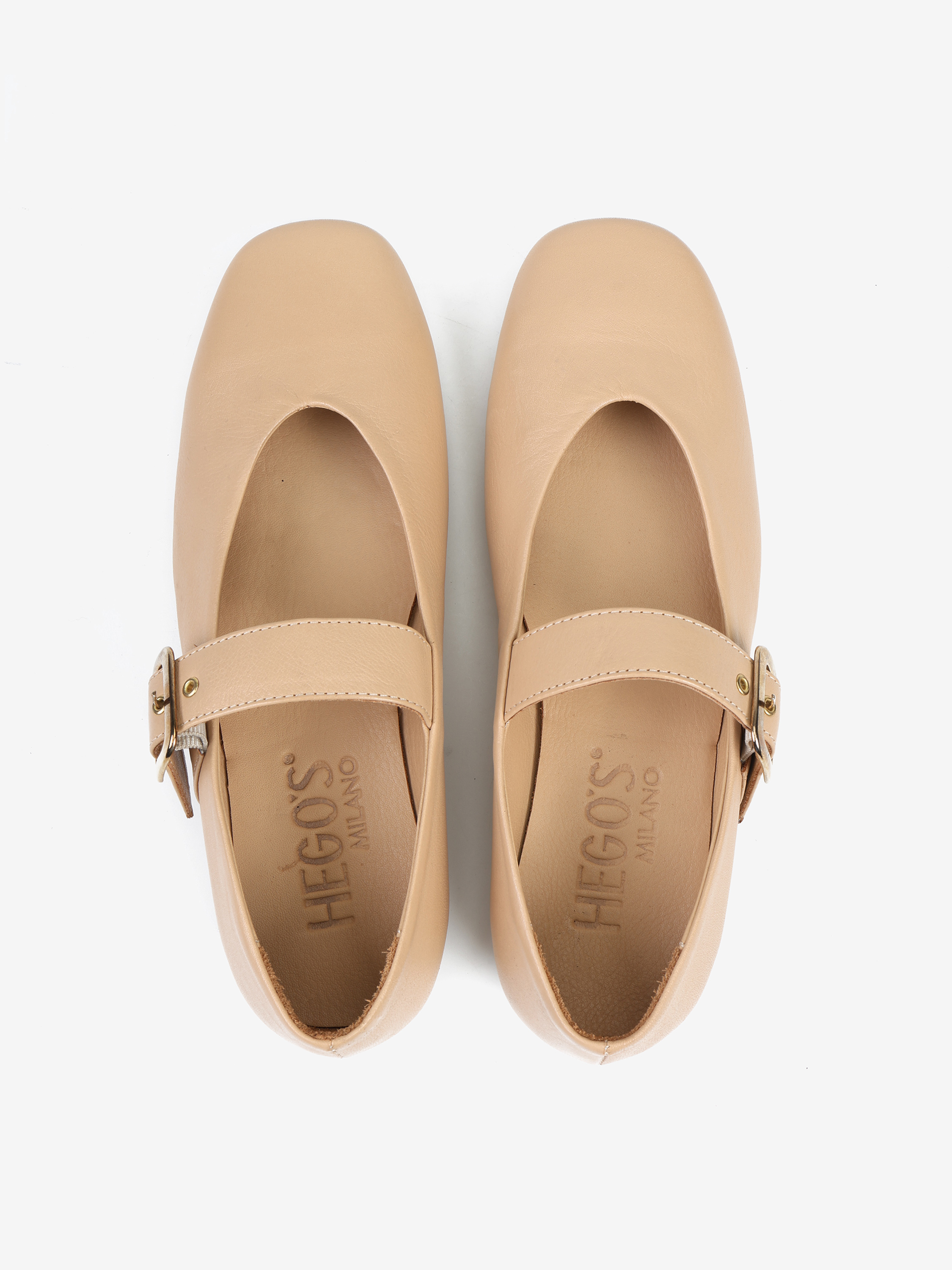 Baleriny Mary Jane wykonane z delikatnej, miękkiej skóry. Kwadratowy nosek i regulowany pasek.
