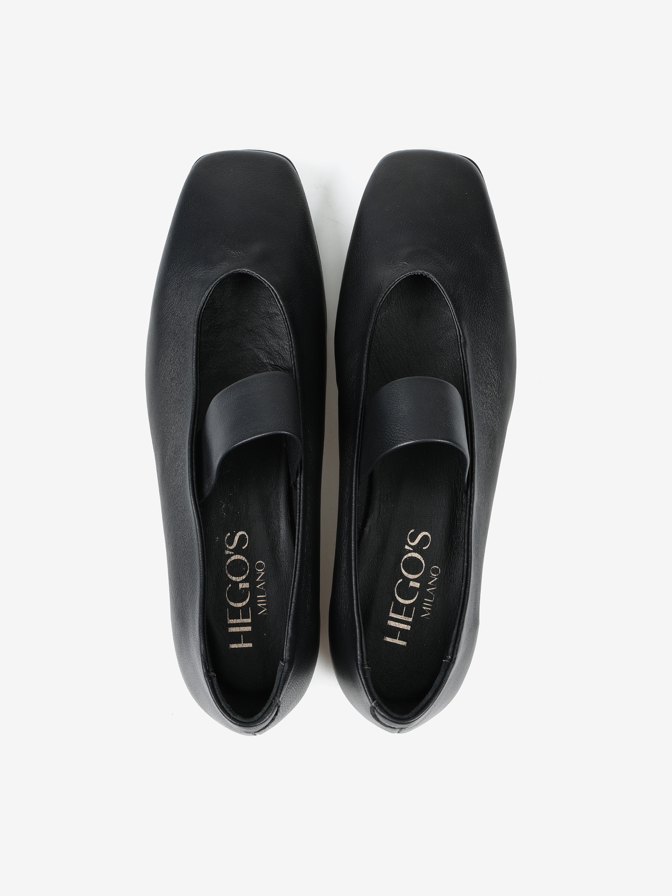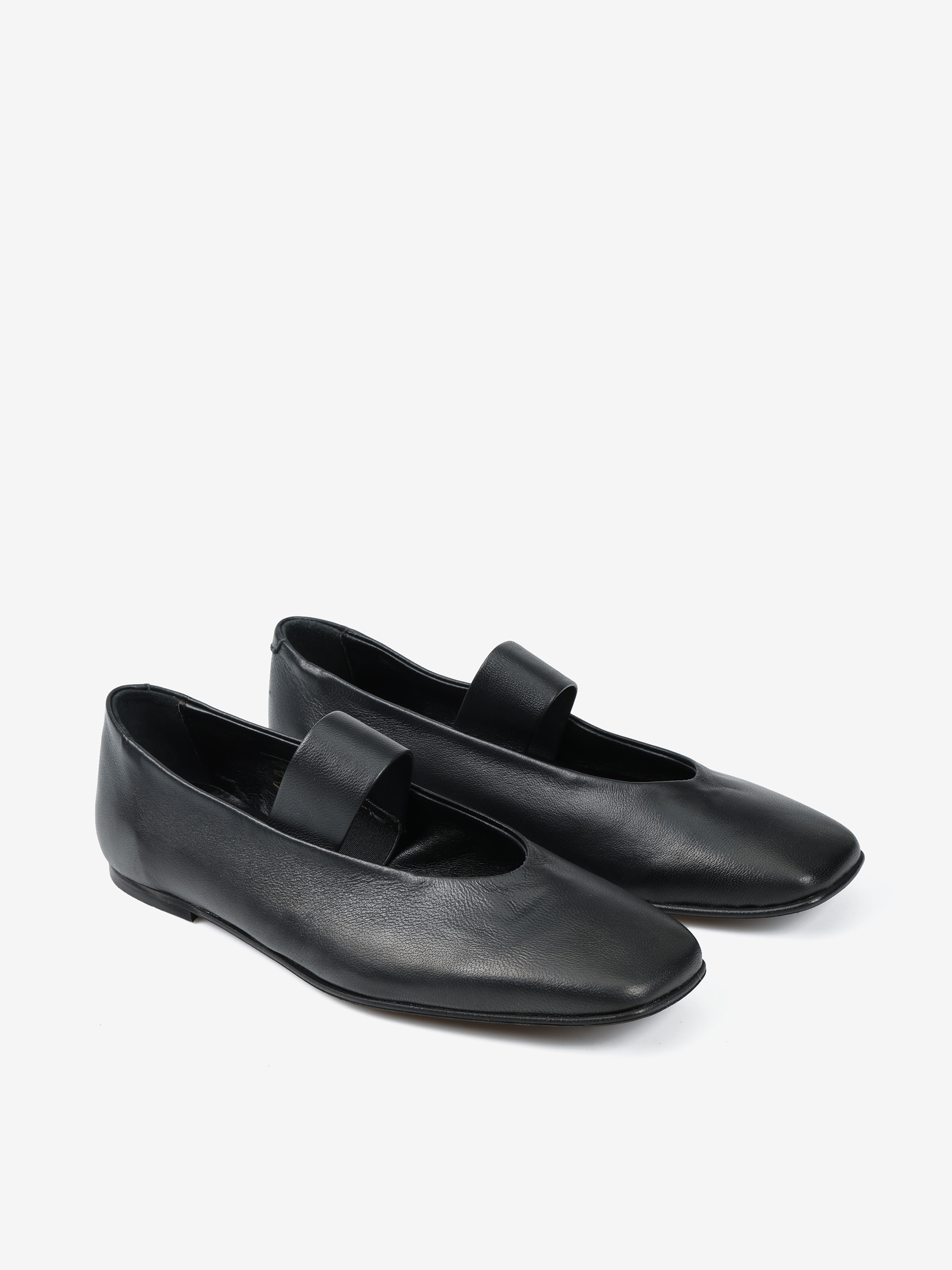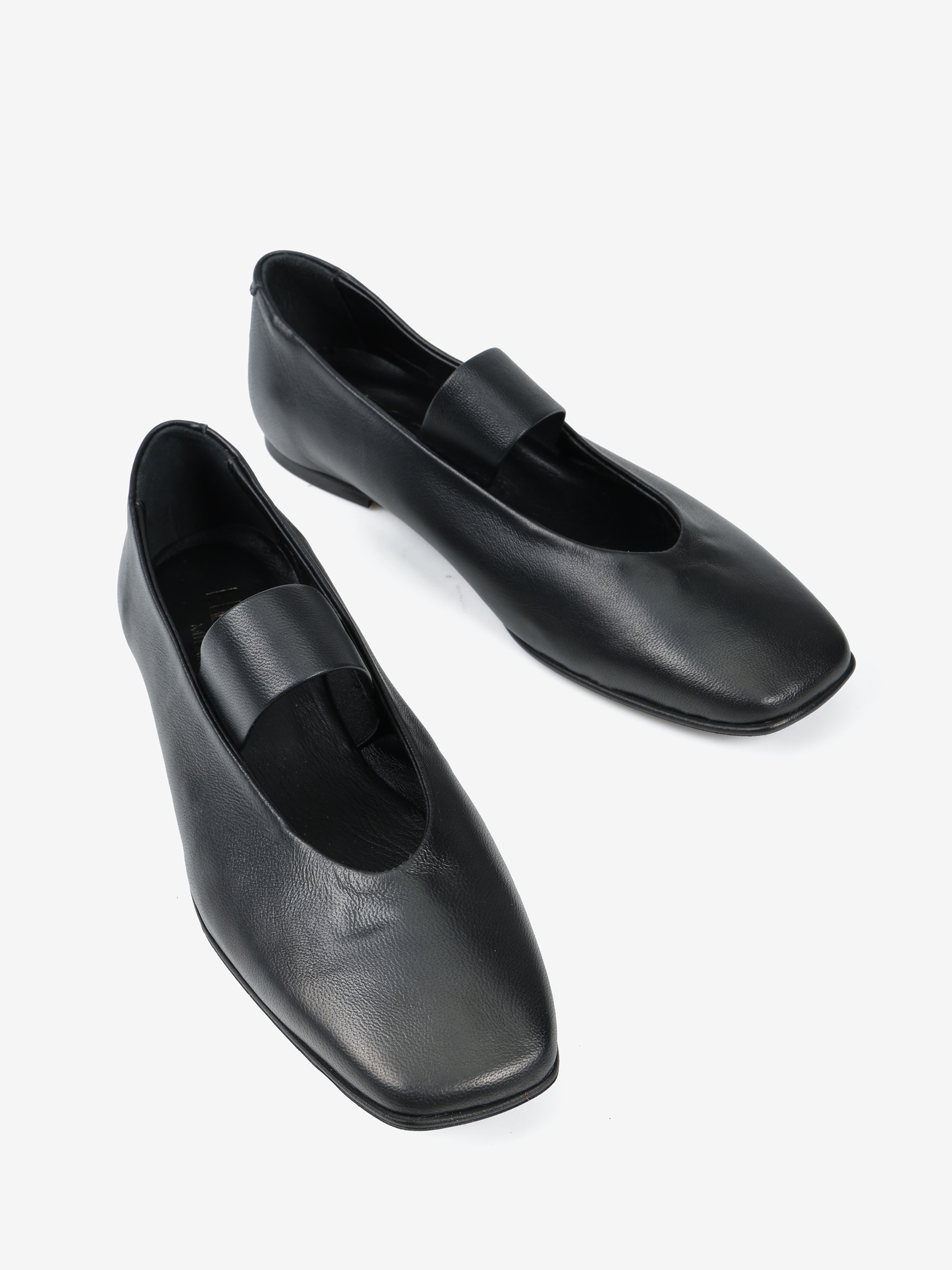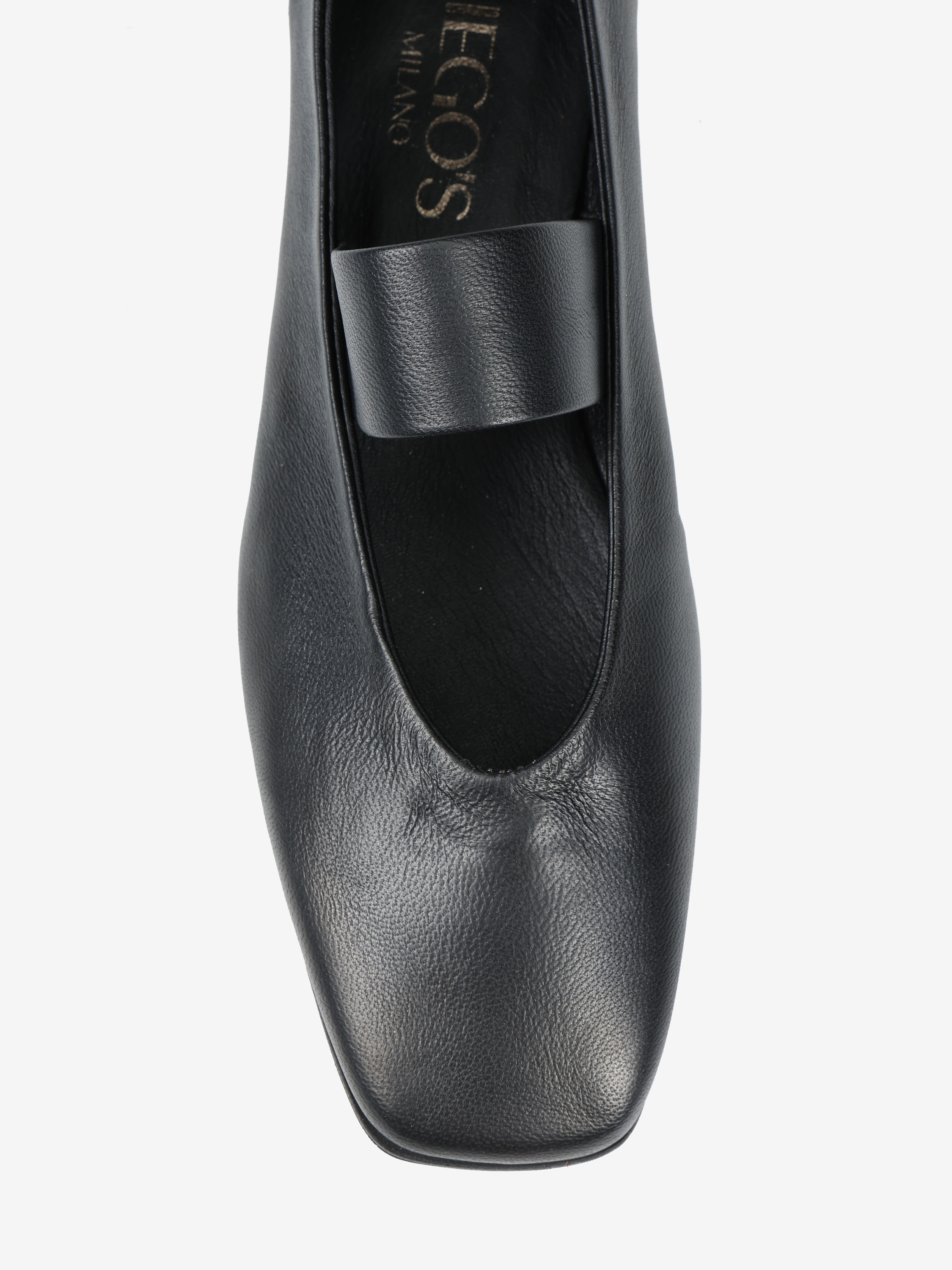 Czarne baleriny Mary Jane wykonane z miękkiej i delikatnej skóry. Kwadratowe noski i pasek na podbiciu.