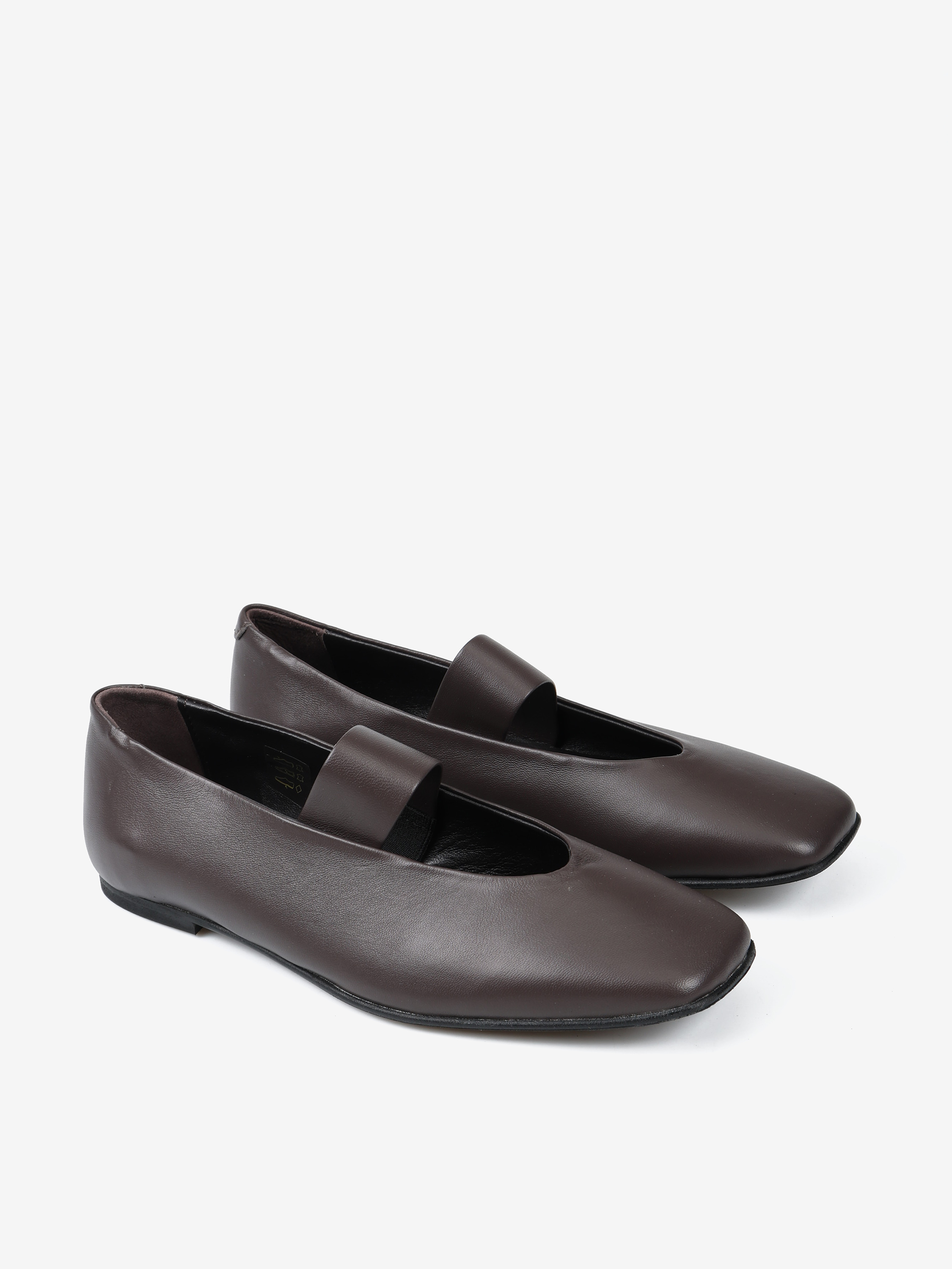 Brązowe baleriny Mary Jane wykonane z miękkiej i delikatnej skóry. Kwadratowe noski i pasek na podbiciu.