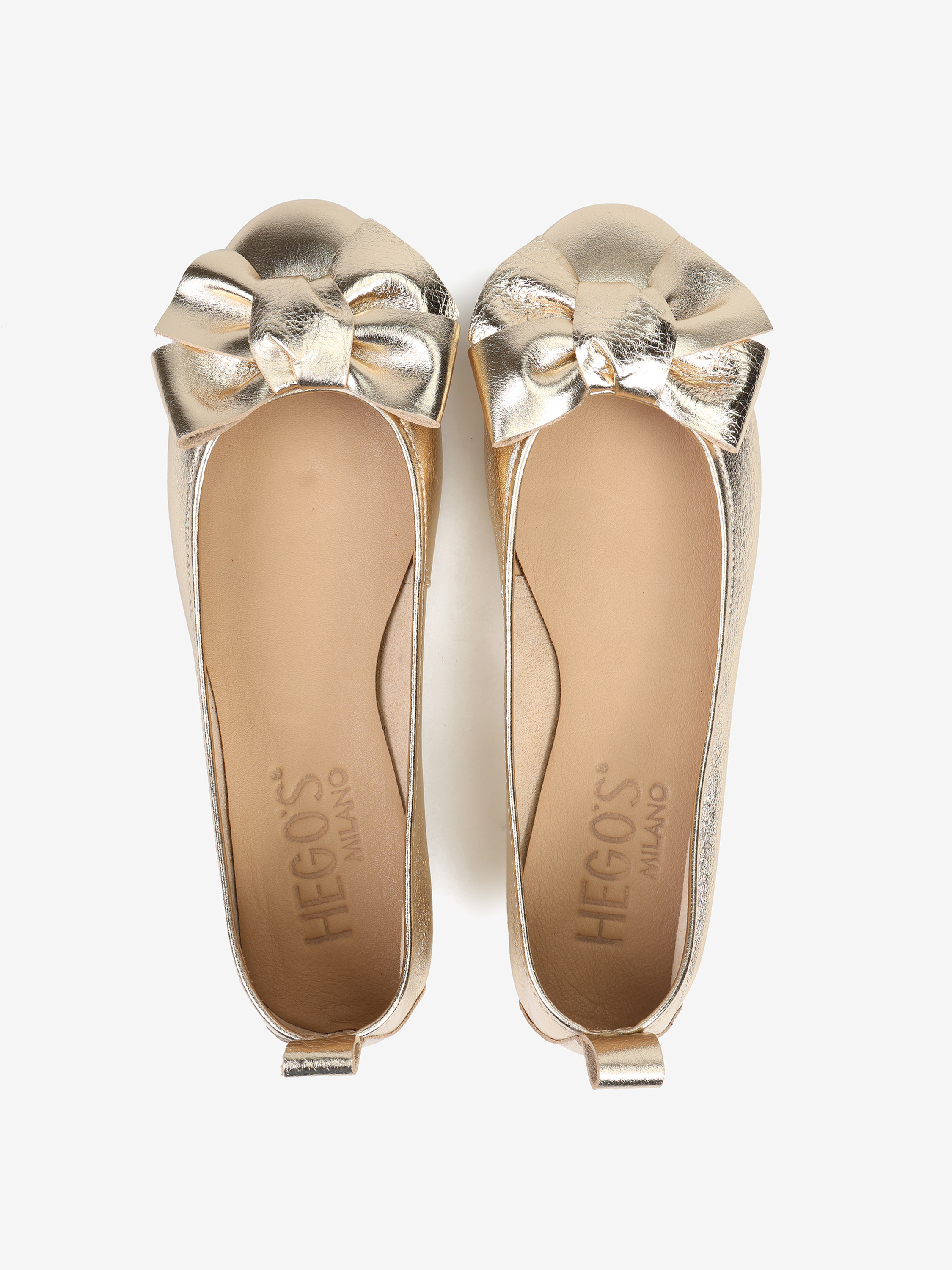 Baleriny HEGO'S Milano wykonane są z włoskiej, metalizowanej skóry. Miękka wkładka z koziej skóry oraz wyściółka bez futrówki dopasują się do stopy oraz zapewnią komfort podczas codziennego noszenia obuwia. Lekkie, miękkie i wygodne. Wykończone delikatną lamówką i minimalistyczną kokardą. To ponadczasowy model wpisujący się nie tylko w obecne Trendy.