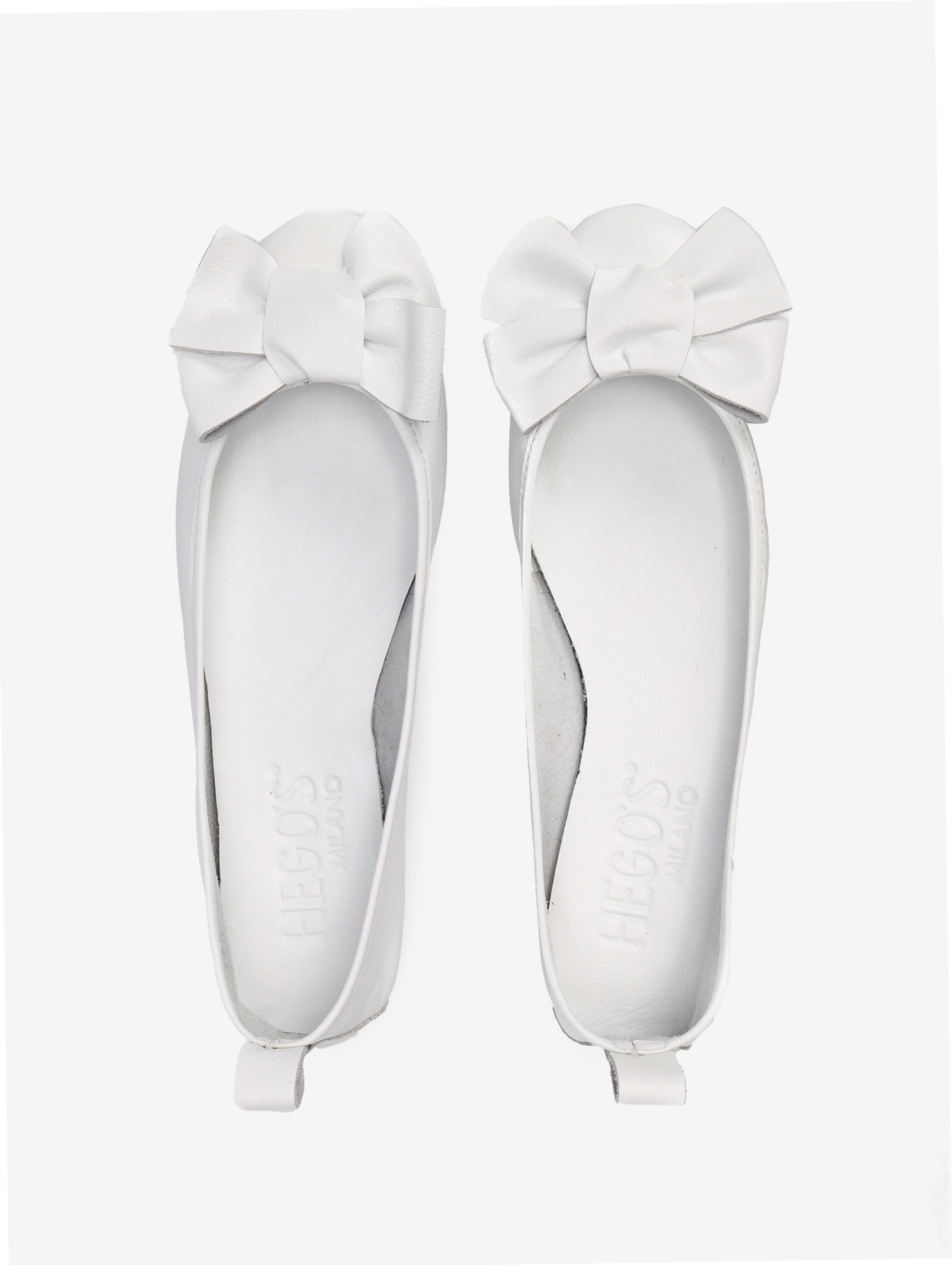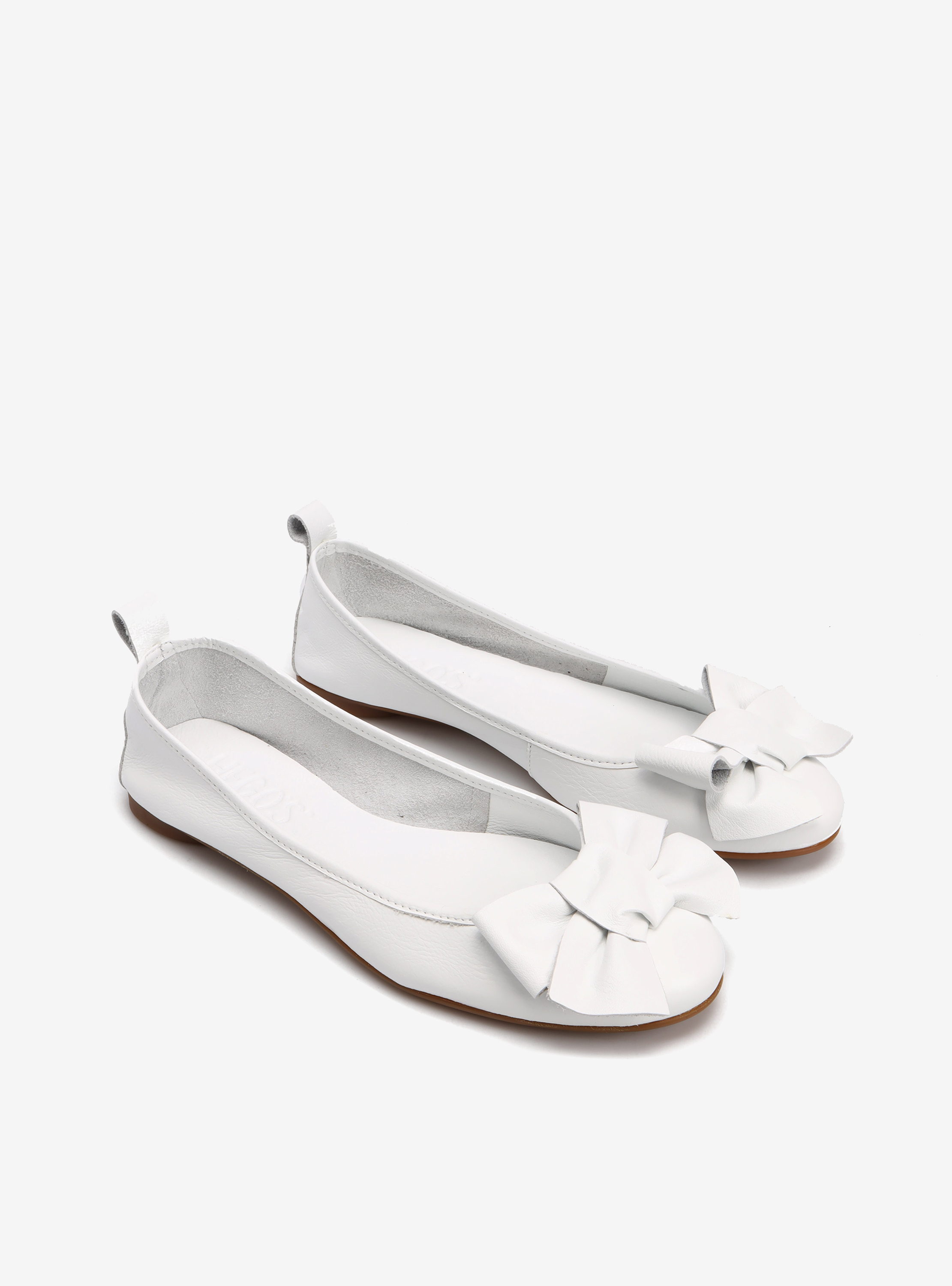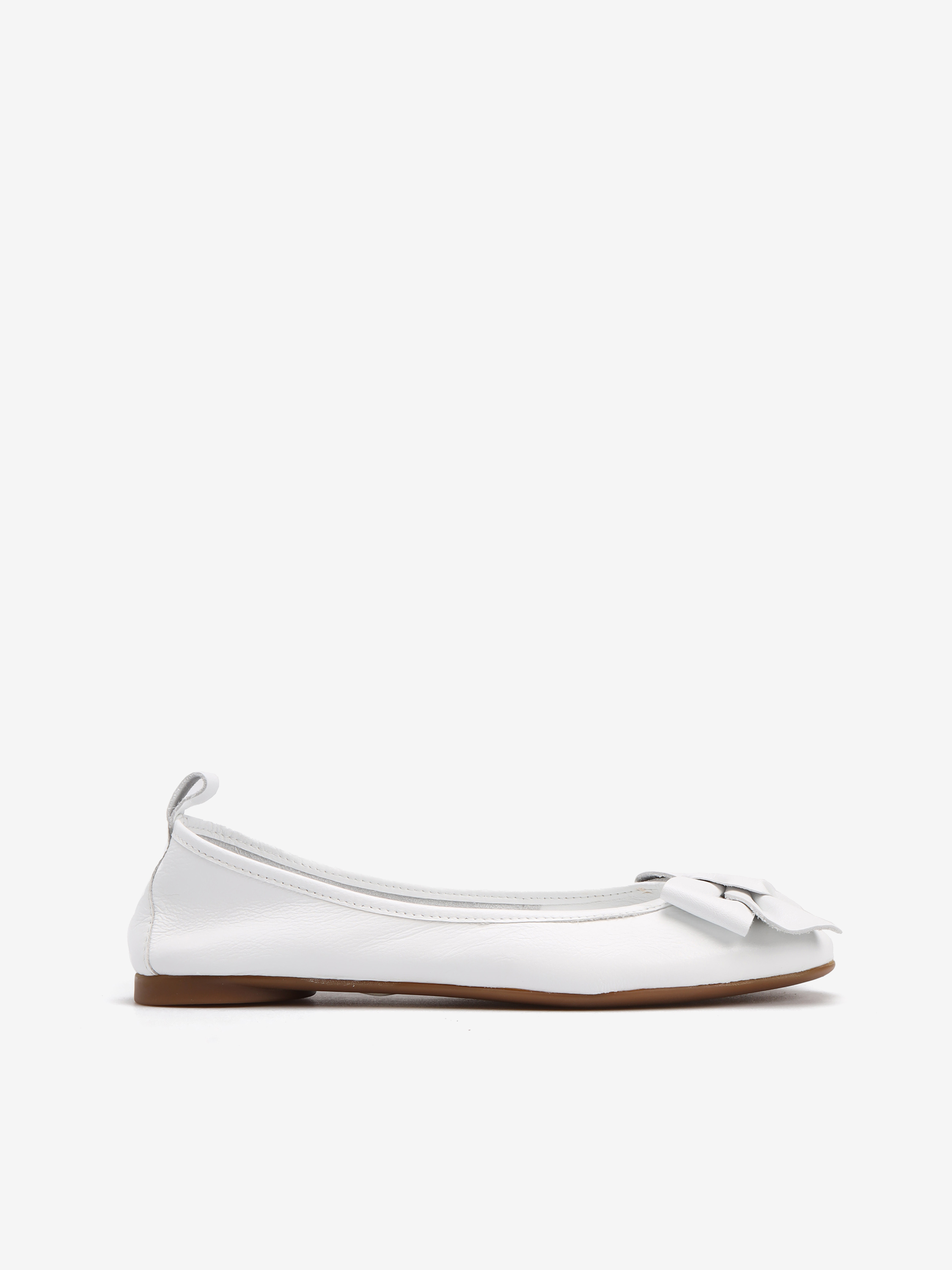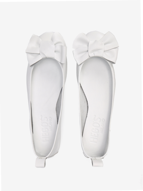 Baleriny wykonane z delikatnej, miękkiej skóry. Okrągły nosek ze skórzaną kokarda.