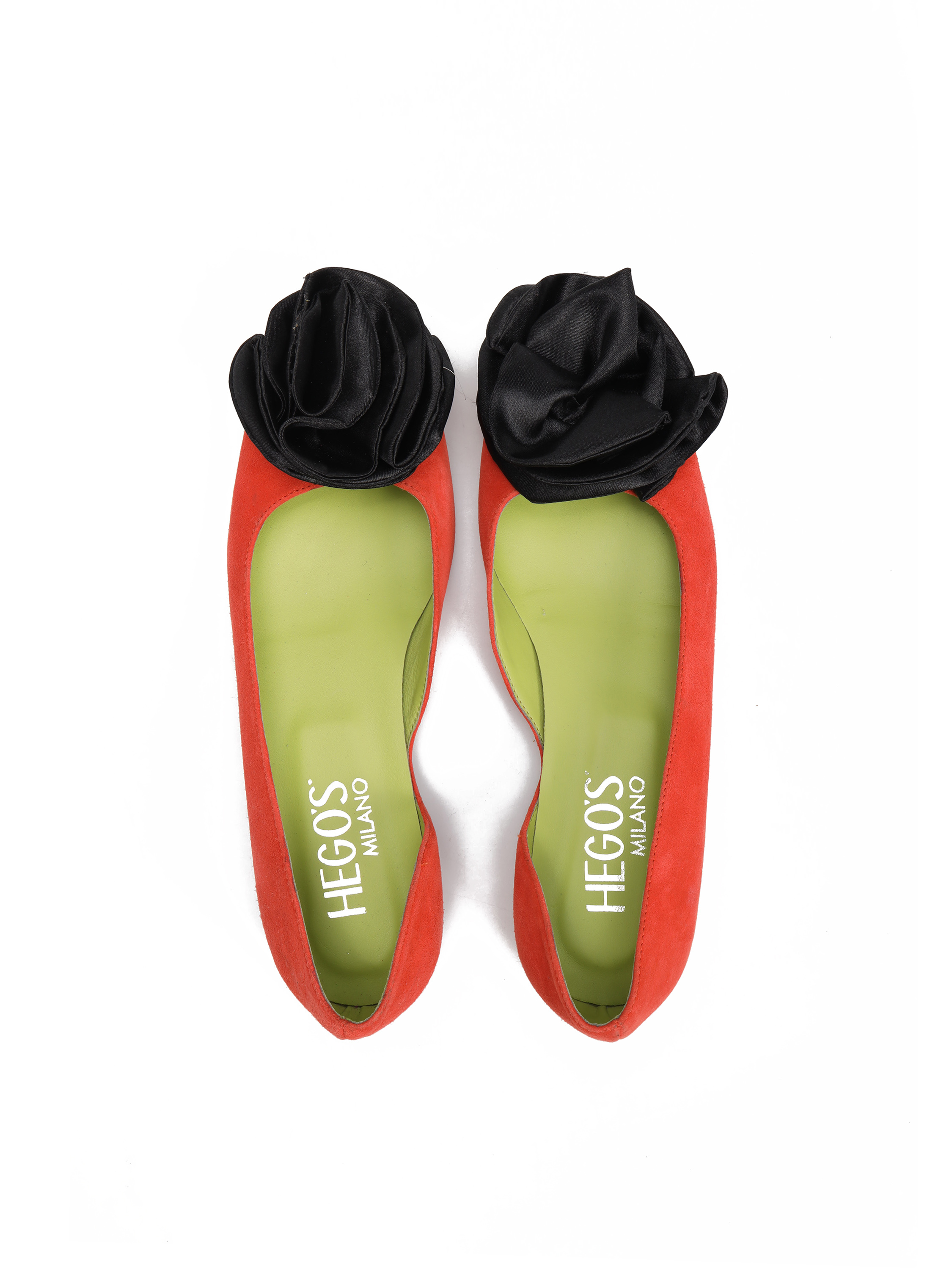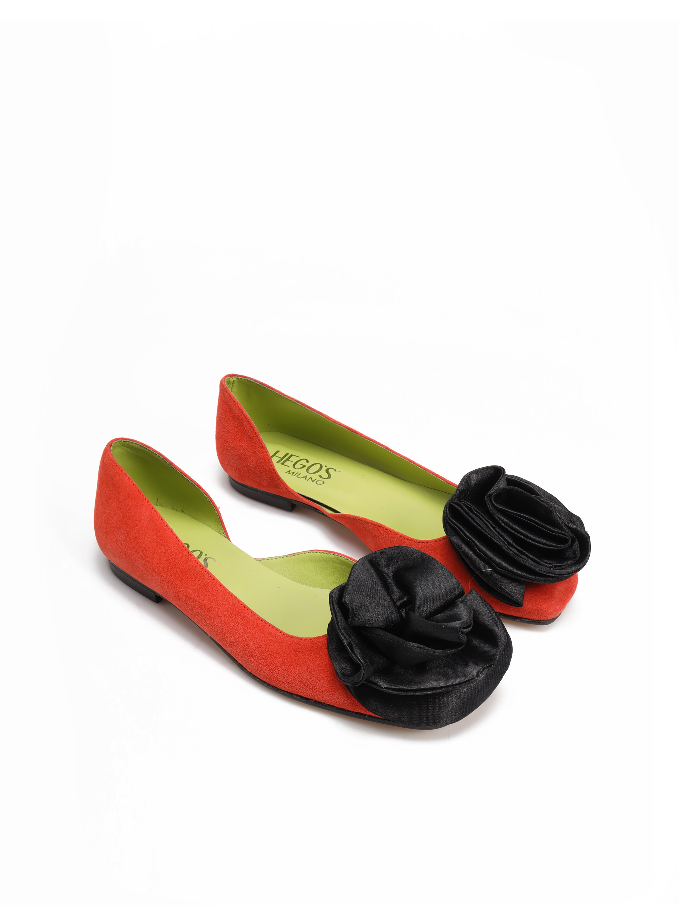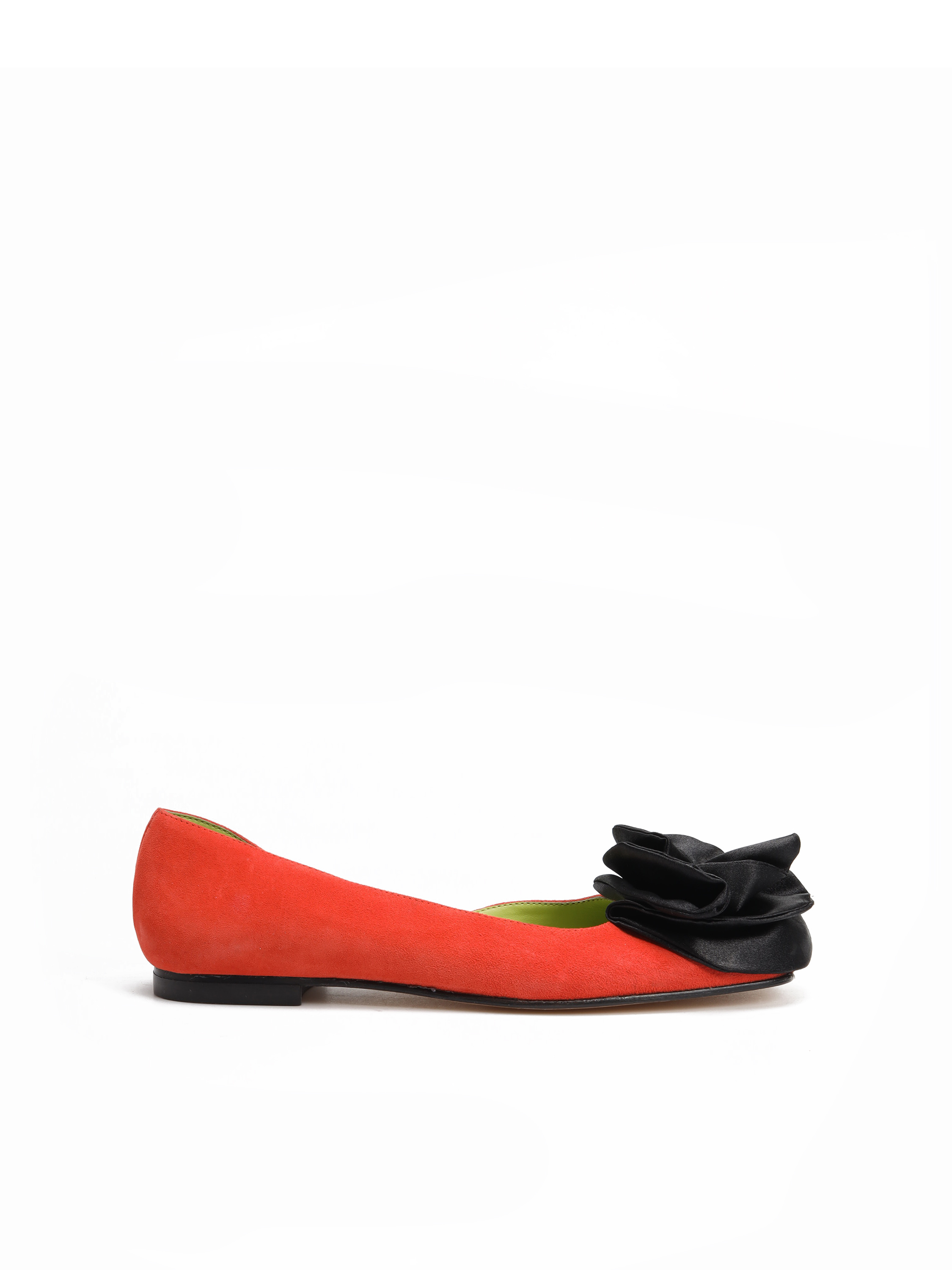 Model zaprojektowany i wyprodukowany we Włoszech. Wykonany z zamszu z efektownym, czarnym kwiatem.
