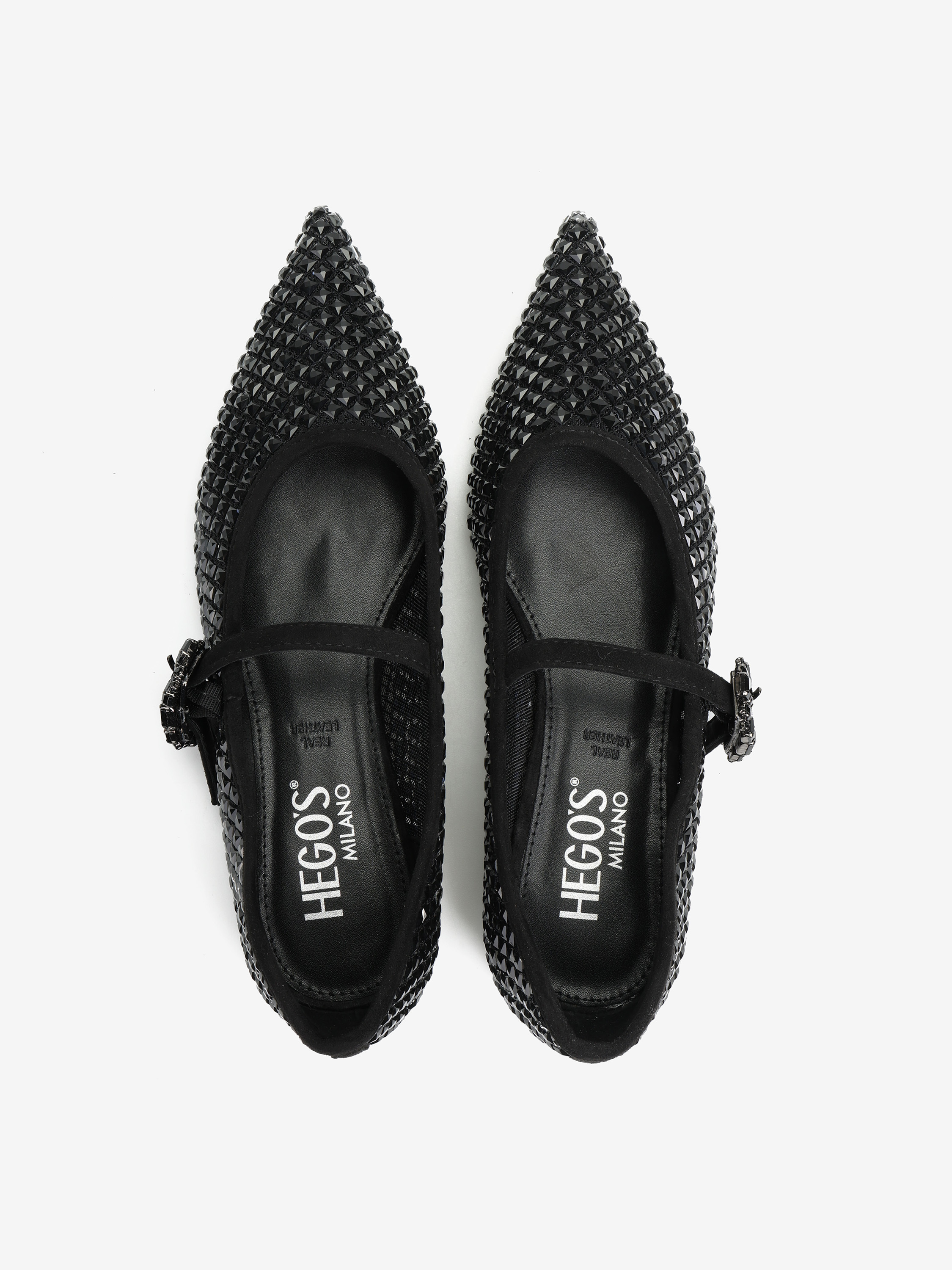 CZARNE BALERINY Z KAMIENIAMI HEGO'S MILANO