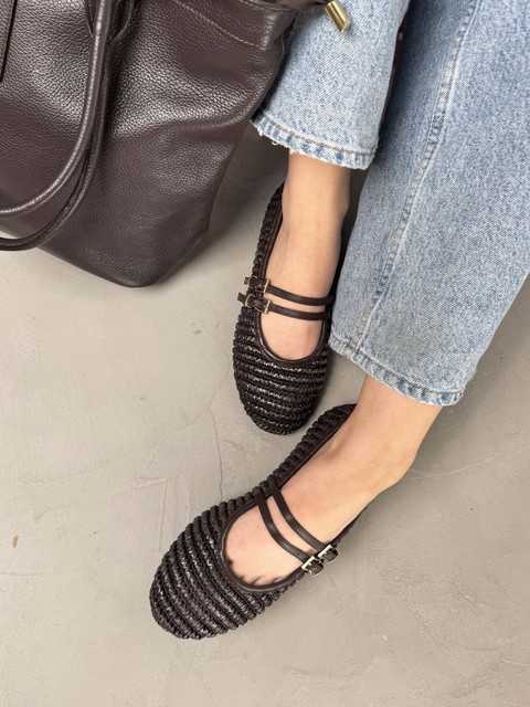 BRĄZOWE BALERINY MARY JANE HEGO'S Milano
