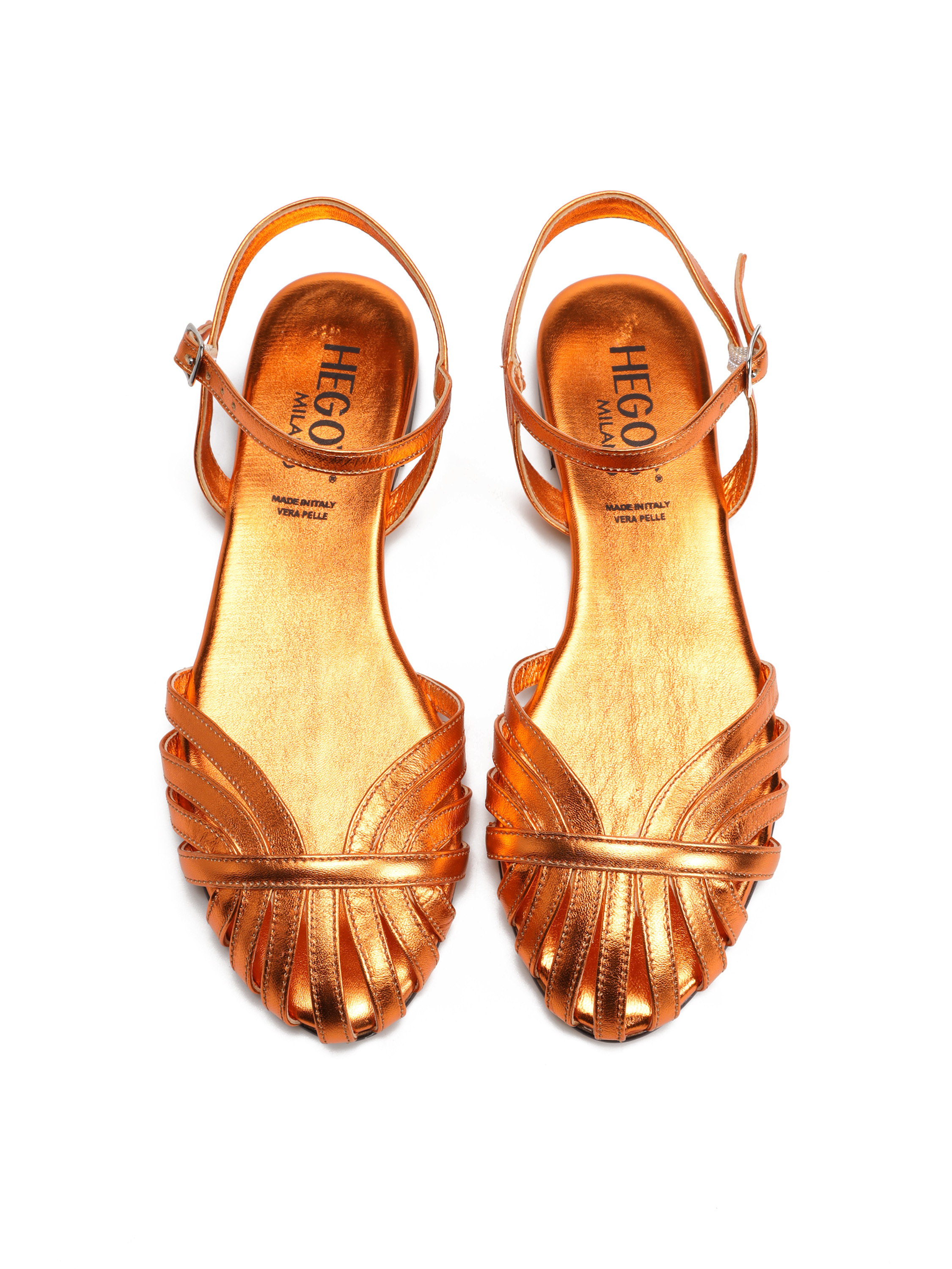 Metaliczne sandały z zabudowanymi palcami to model dla kobiet szukjących modnych i wygodnych rozwiązań. Skórzane, w całości zbudowane z pasków. Miękkie, lekkie, wygodne. Zapinane regulowanym paskiem na sprzączkę, dopasują się do Twojej stopy. Sandały damskie będą uzupełnieniem letniej garderoby kobiety.