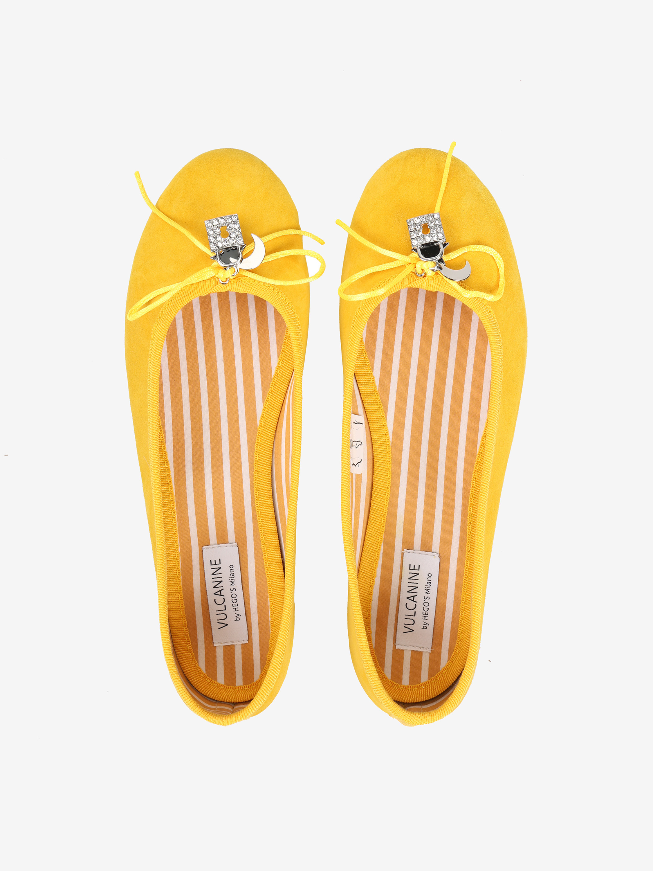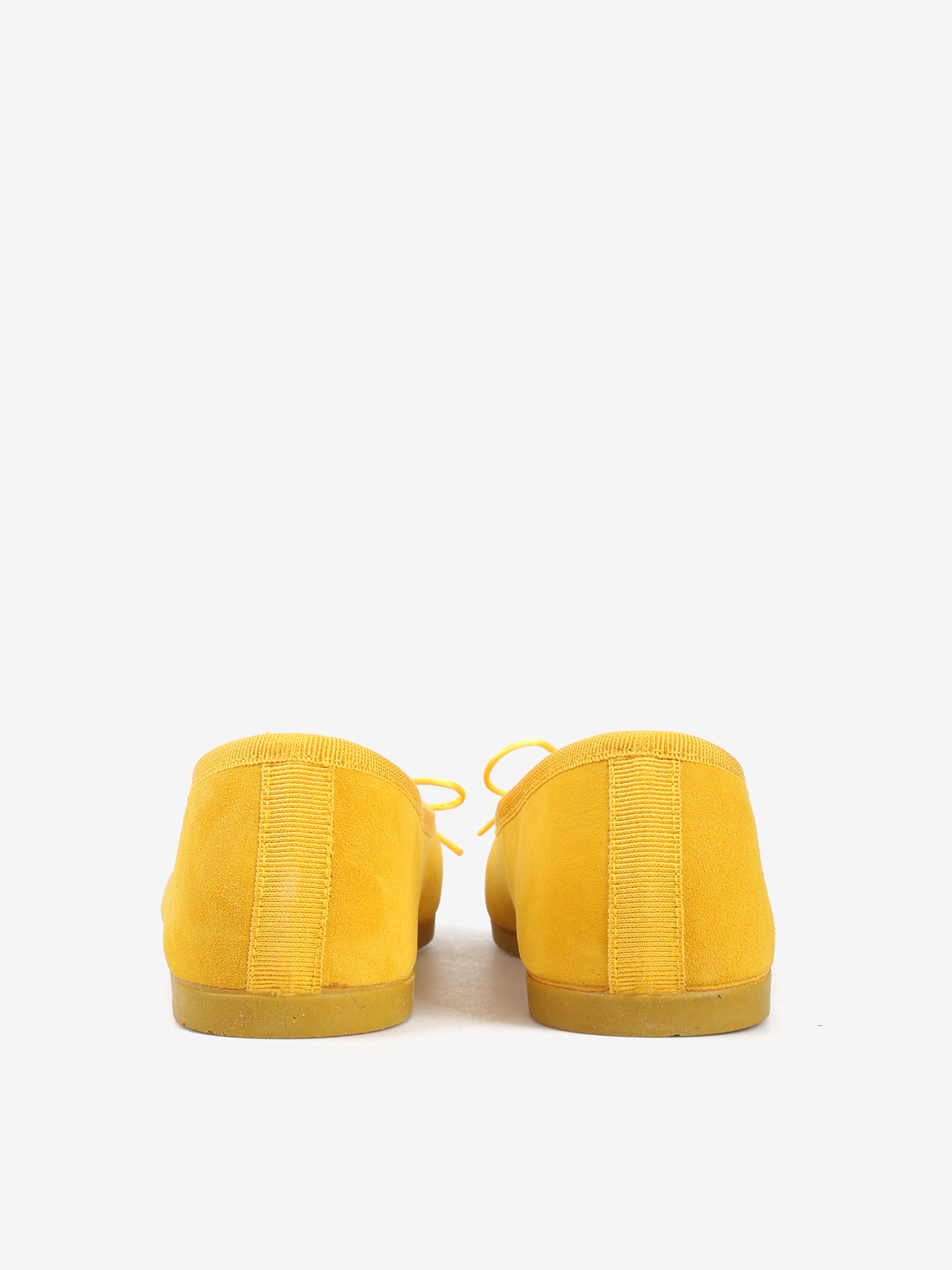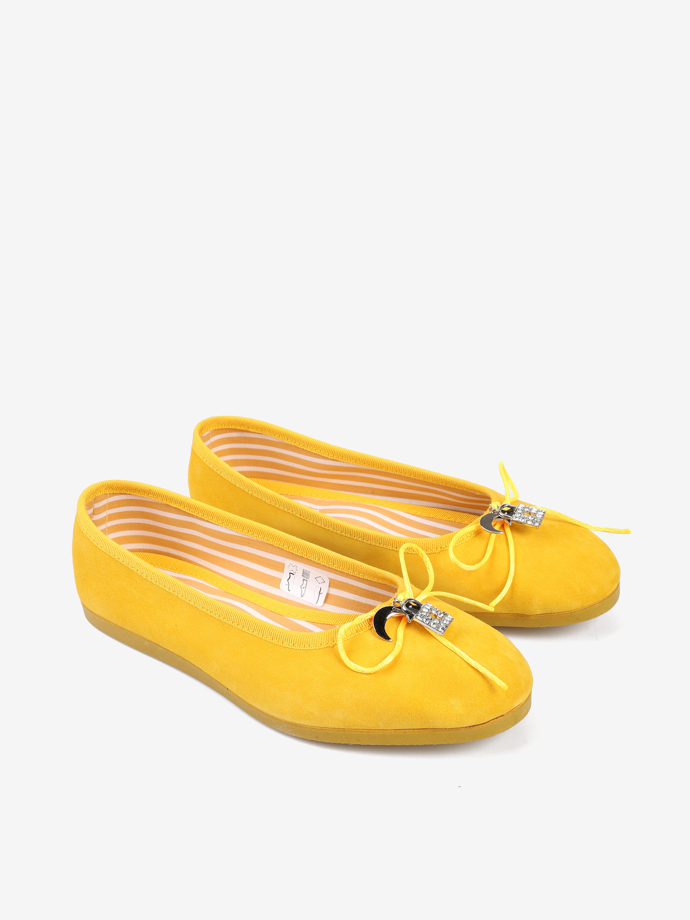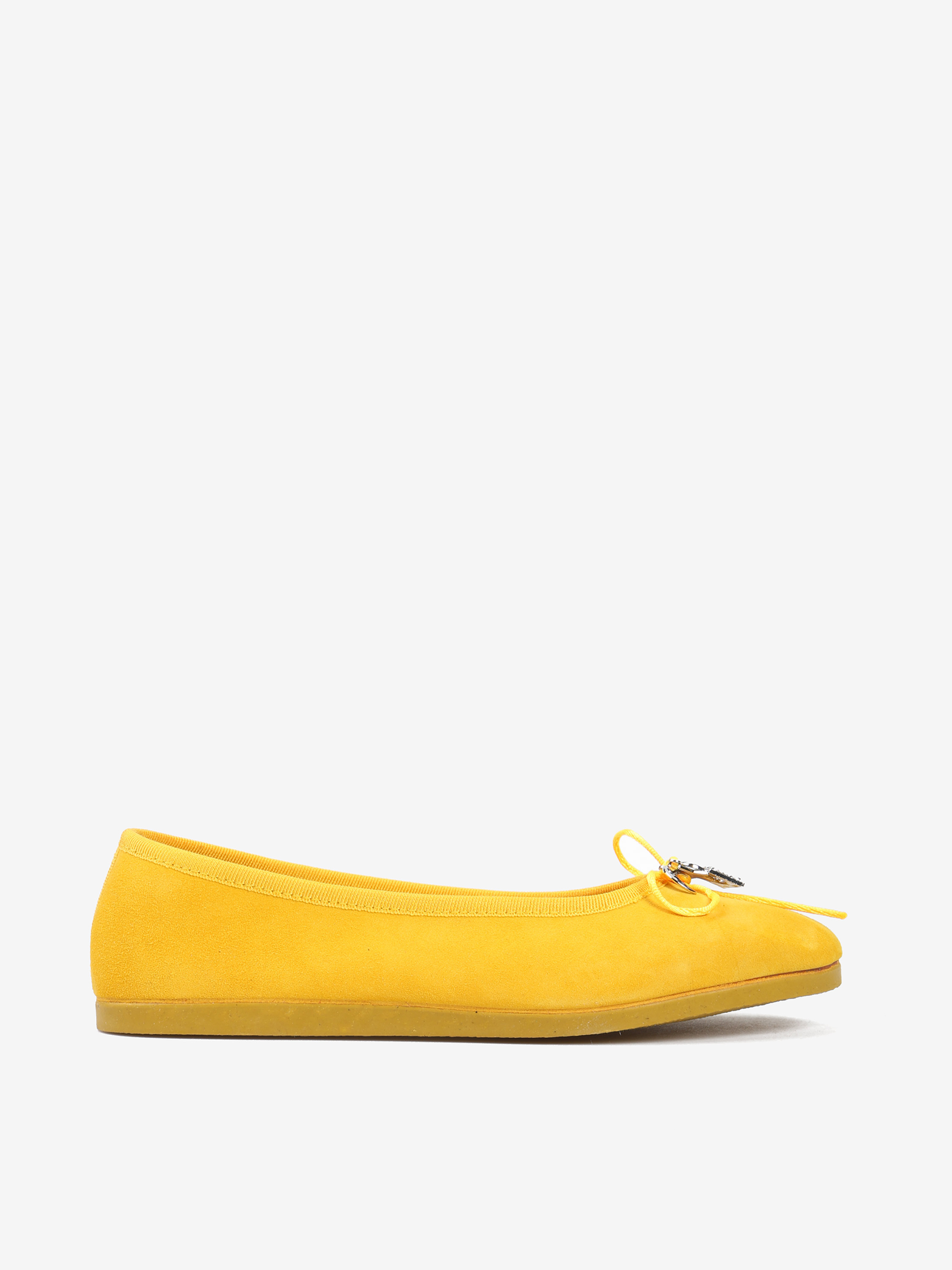 Zamszowe baleriny z regulowaną, wiązaną kokardką i ozdobnymi przywieszkami.