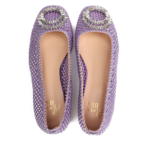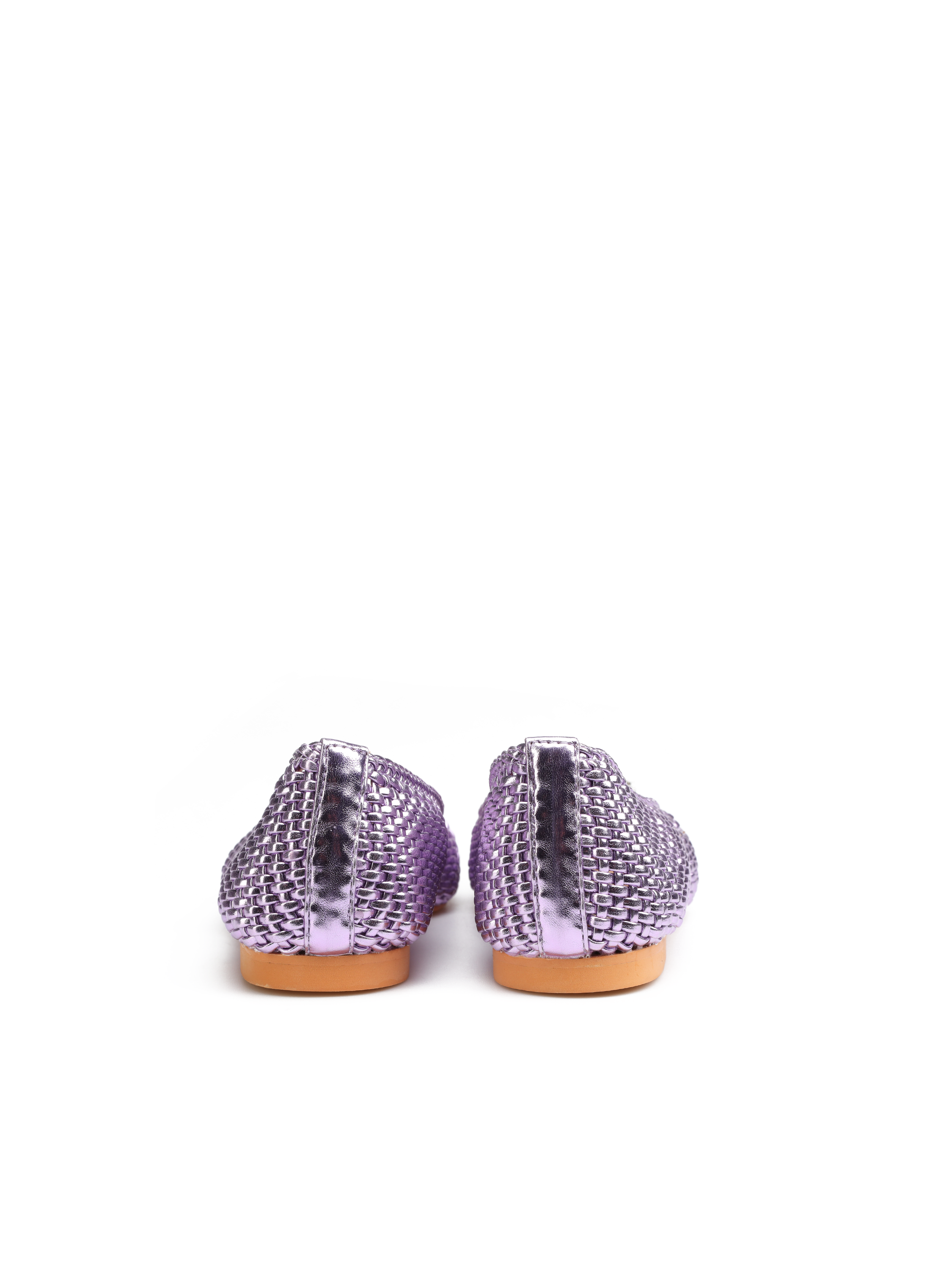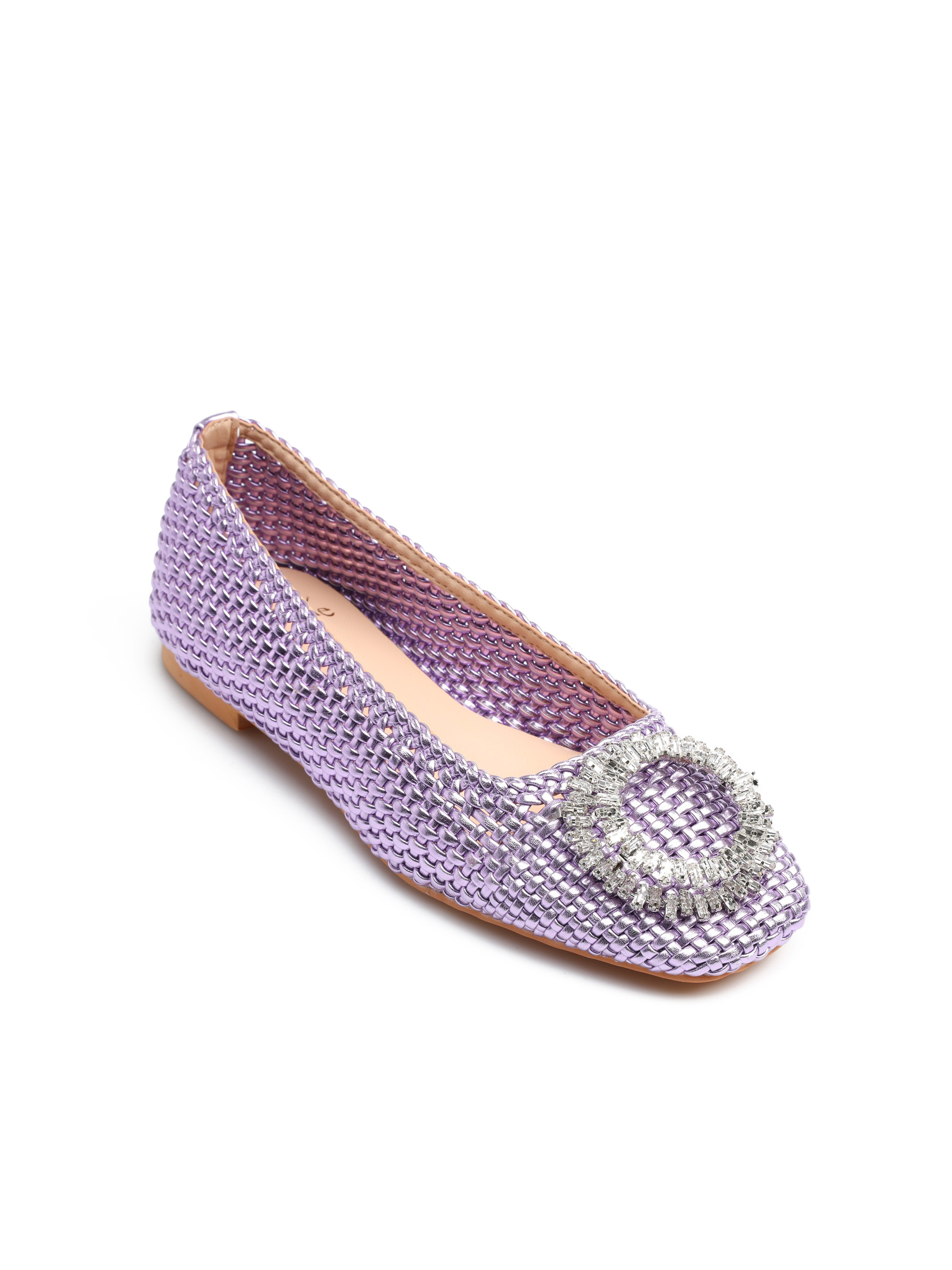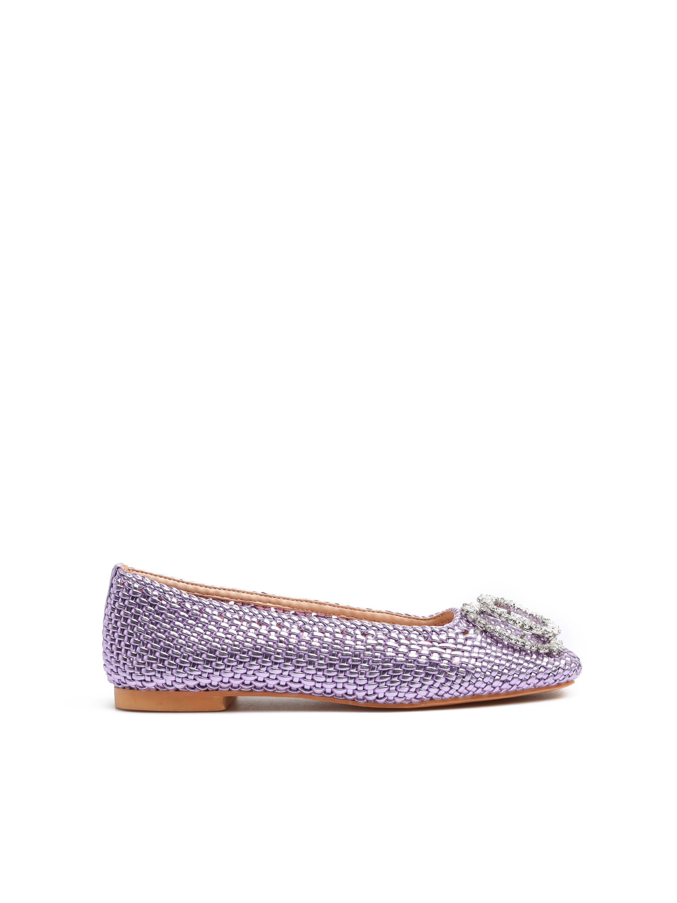 Baleriny damskie to HOT TREND sezonu. Zaprojektowane z najmodniejszej plecionki. Miękka wkładka i płaski obcas odpowiadają za wygodę i komfort noszenia butów przez cały dzień. Cholewka wzbogacona została o biżuteryjną broszkę z kamieni. Klasyczny fason w metalicznym odcieniu fioletu będzie ozdobą i dopełnieniem modnej garderoby kobiety.
