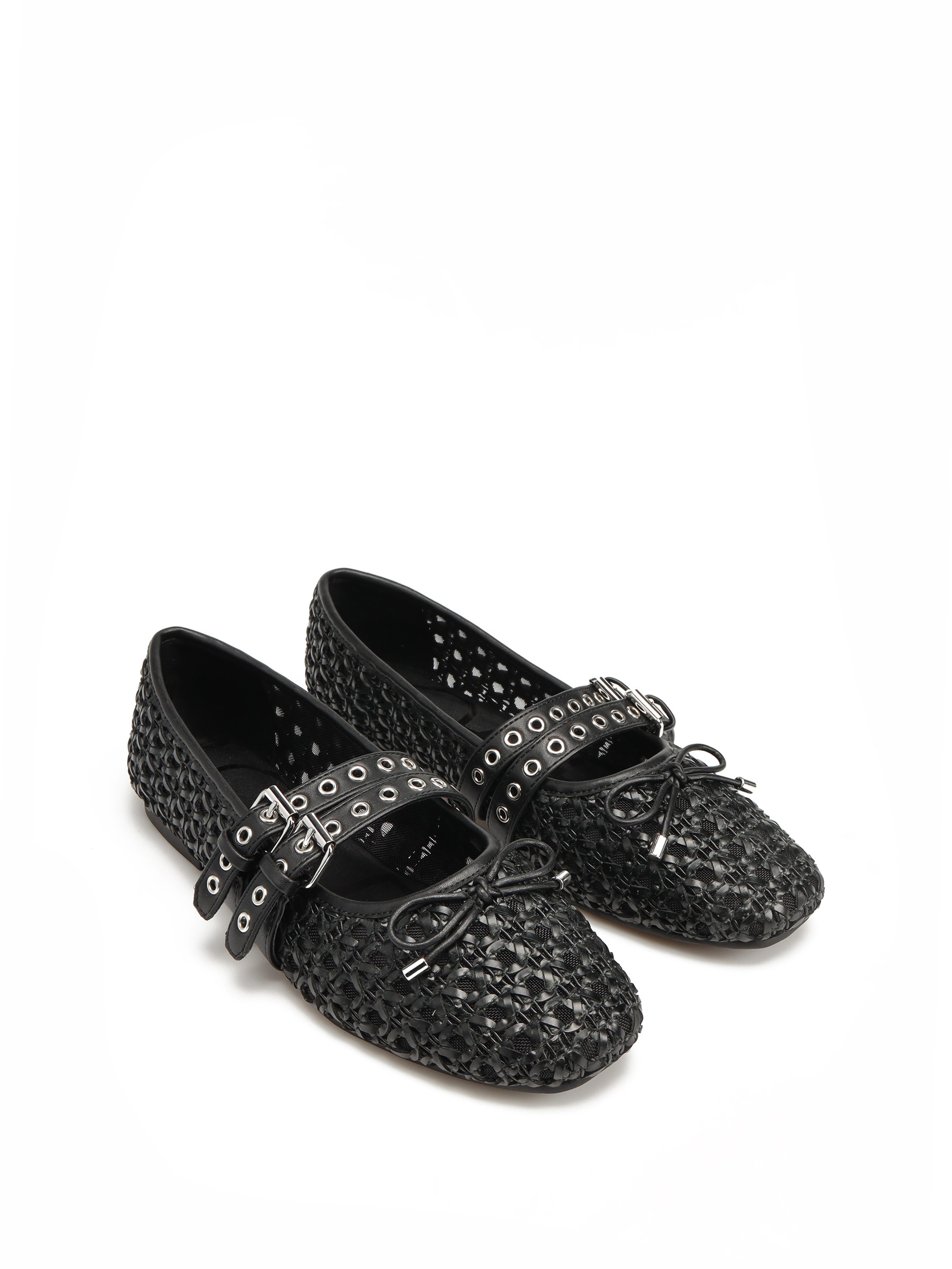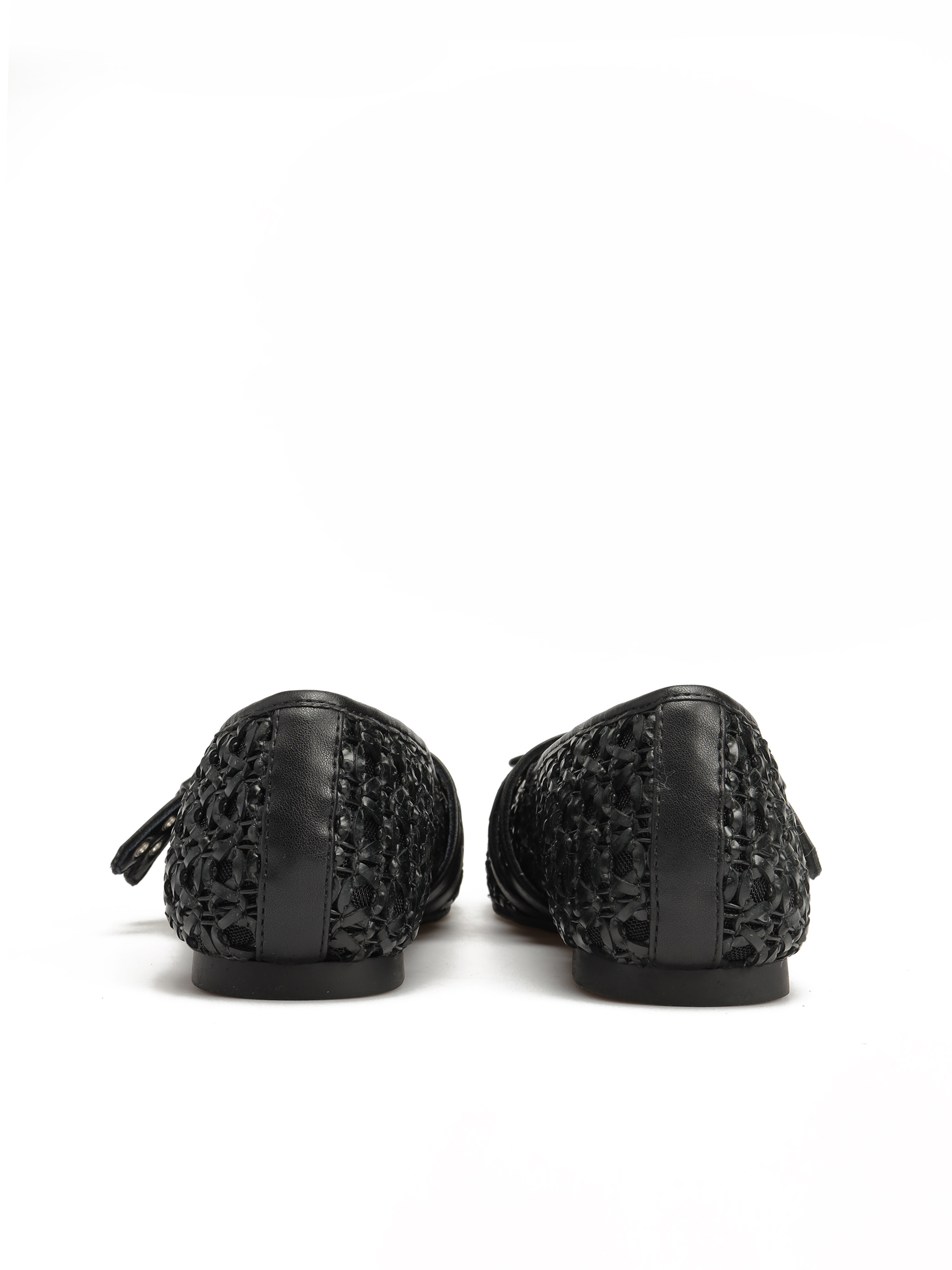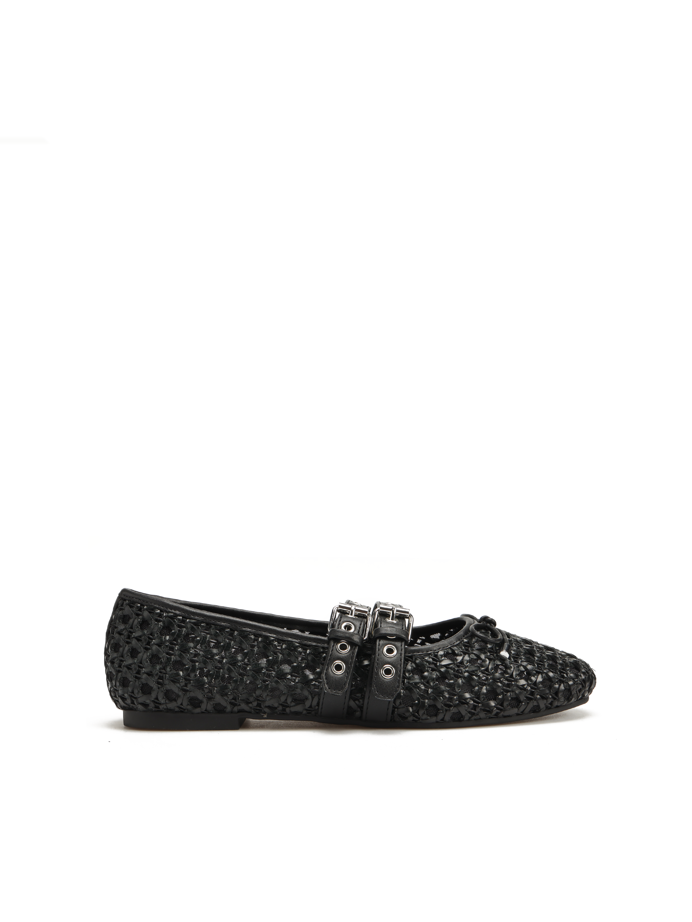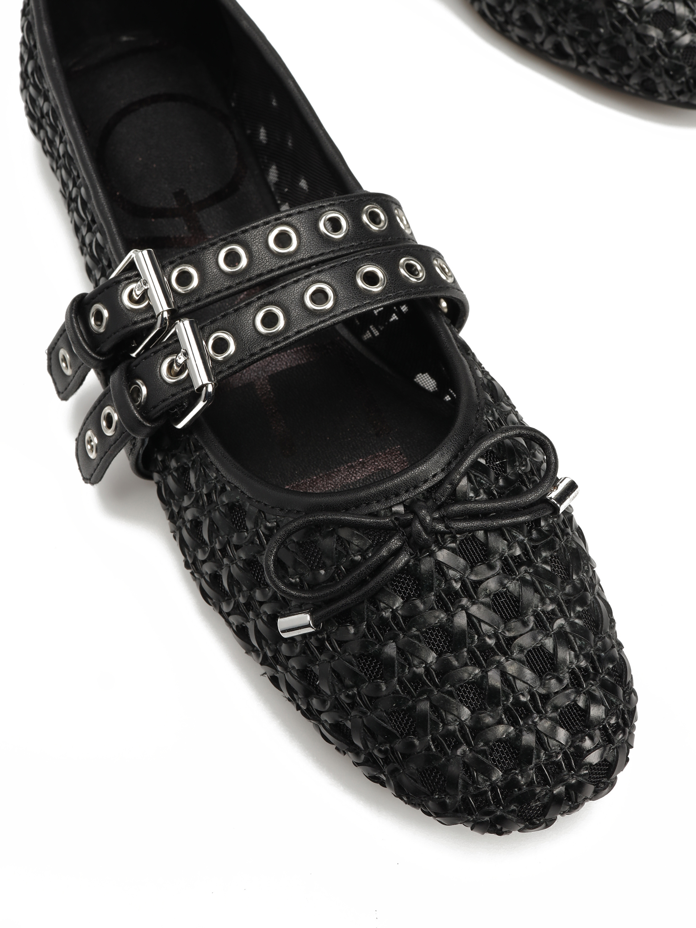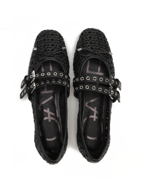 Baleriny w stylu Mary Jane marki Loafer to Trend sezonu. Ażurowa cholewka w czarnym kolorze posiada dwa regulowane paski zapinane na sprzączkę., które trzymają stopę jednocześnie podkreślają charakter obuwia. Model na płaskim obcasie z delikatną kokardką przy palcach.