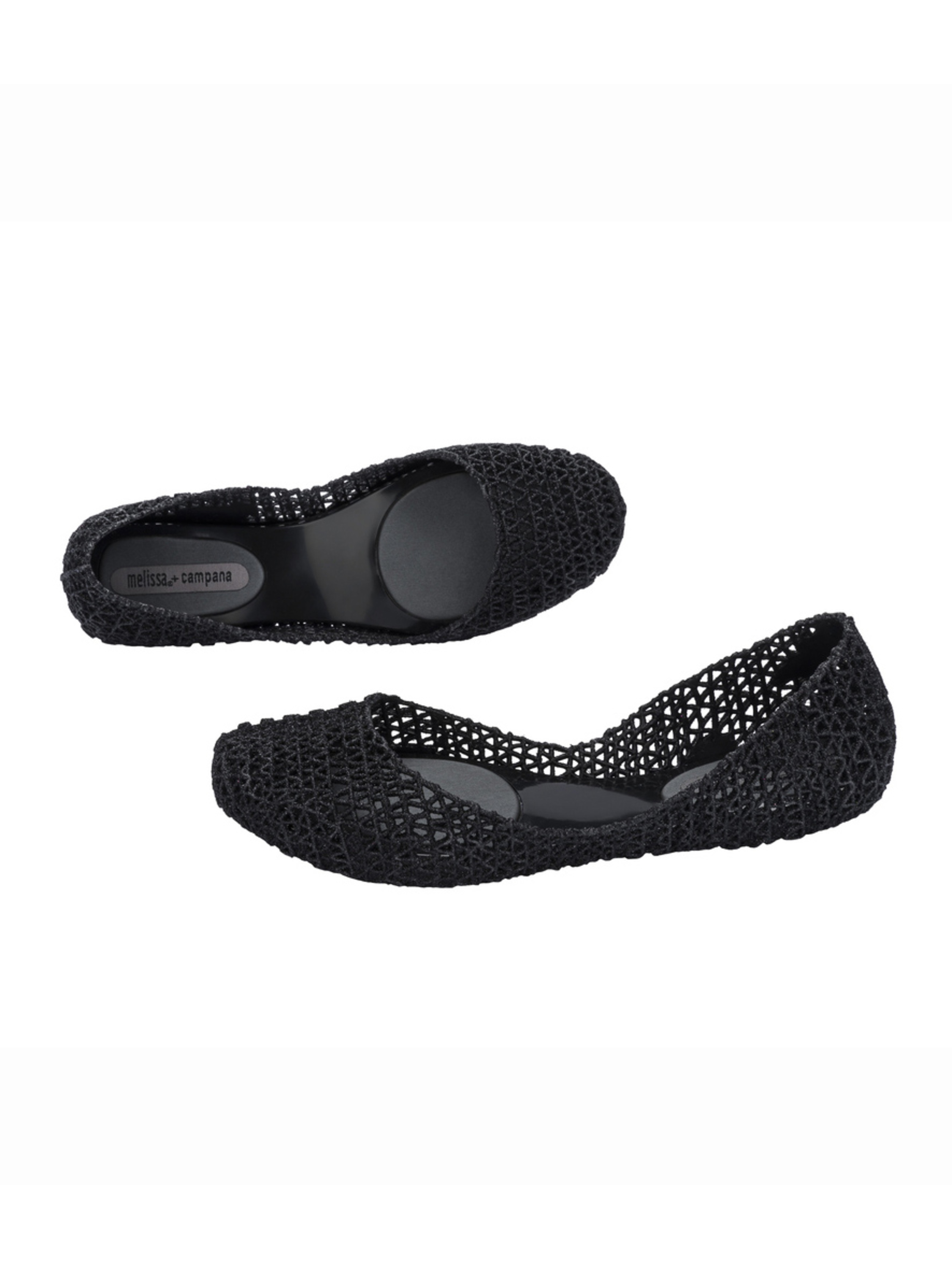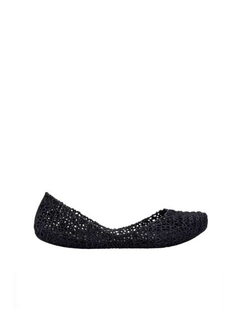 Kultowy model balerin Melissa Campana. Wykonane w całości z wodoodpornego materiału Mel-Flex - mieszanki plastiku i kauczuku o charakterystycznym zapachu gumy balonowej. Miękkie, lekkie i wygodne. Ażurowa plecionka dopasuje się do stopy. Wyciąganą wkładkę łatwo można wyczyścić pod bieżącą wodą.