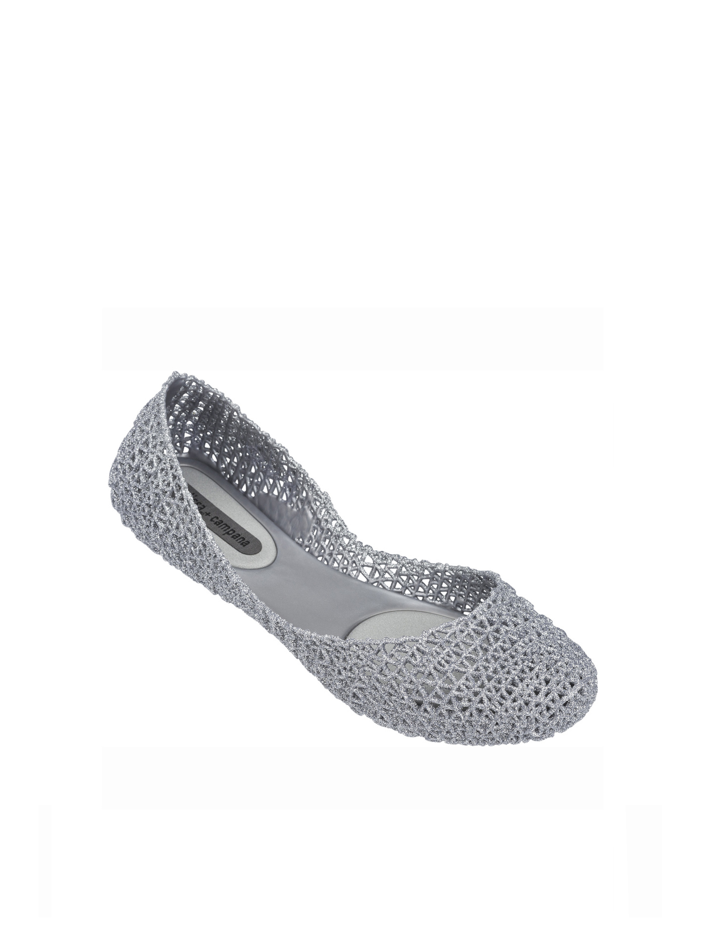 Kultowy model balerin Melissa Campana. Wykonane w całości z wodoodpornego materiału Mel-Flex - mieszanki plastiku i kauczuku o charakterystycznym zapachu gumy balonowej. Miękkie, lekkie i wygodne. Ażurowa plecionka dopasuje się do stopy. Wyciąganą wkładkę łatwo można wyczyścić pod bieżącą wodą.