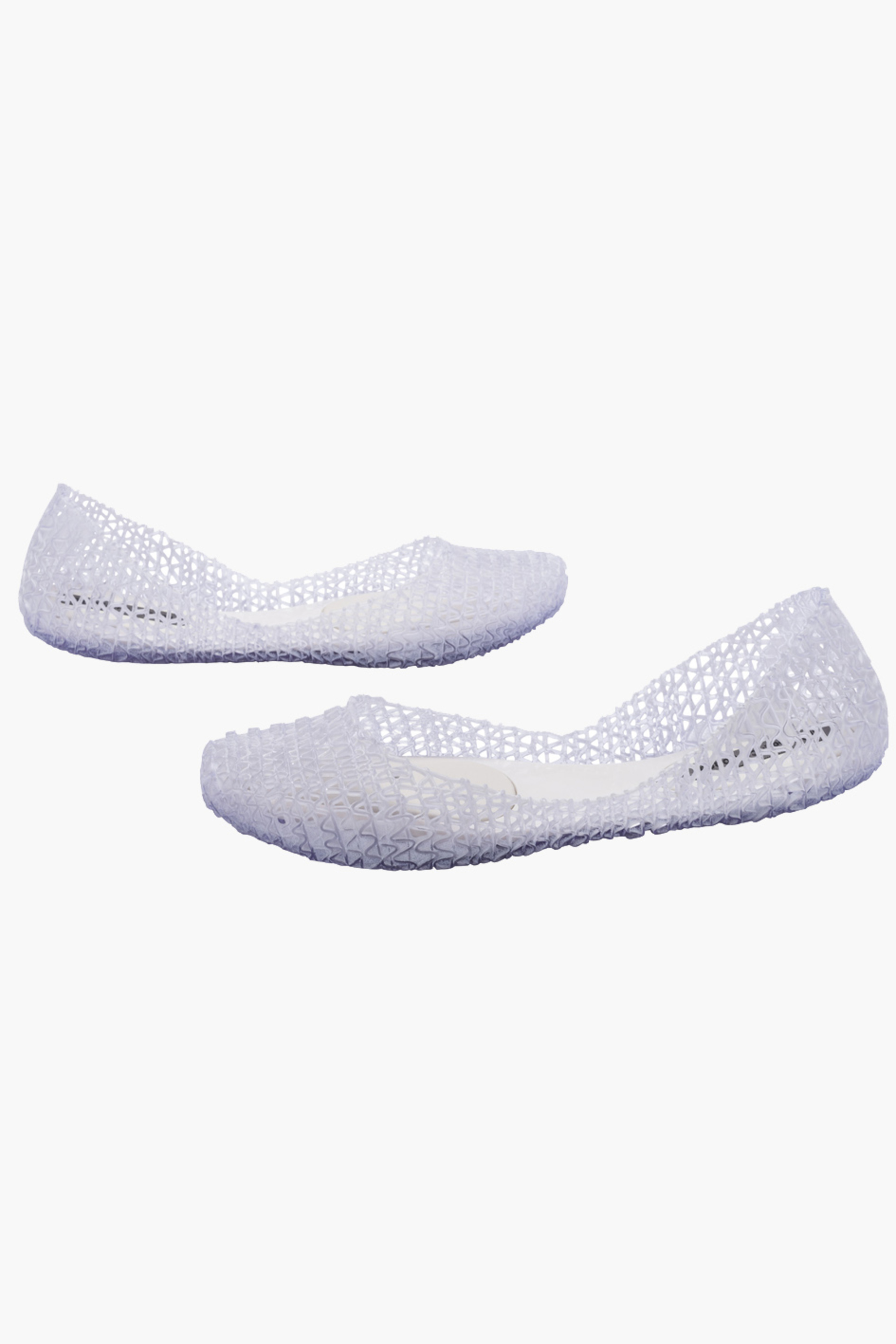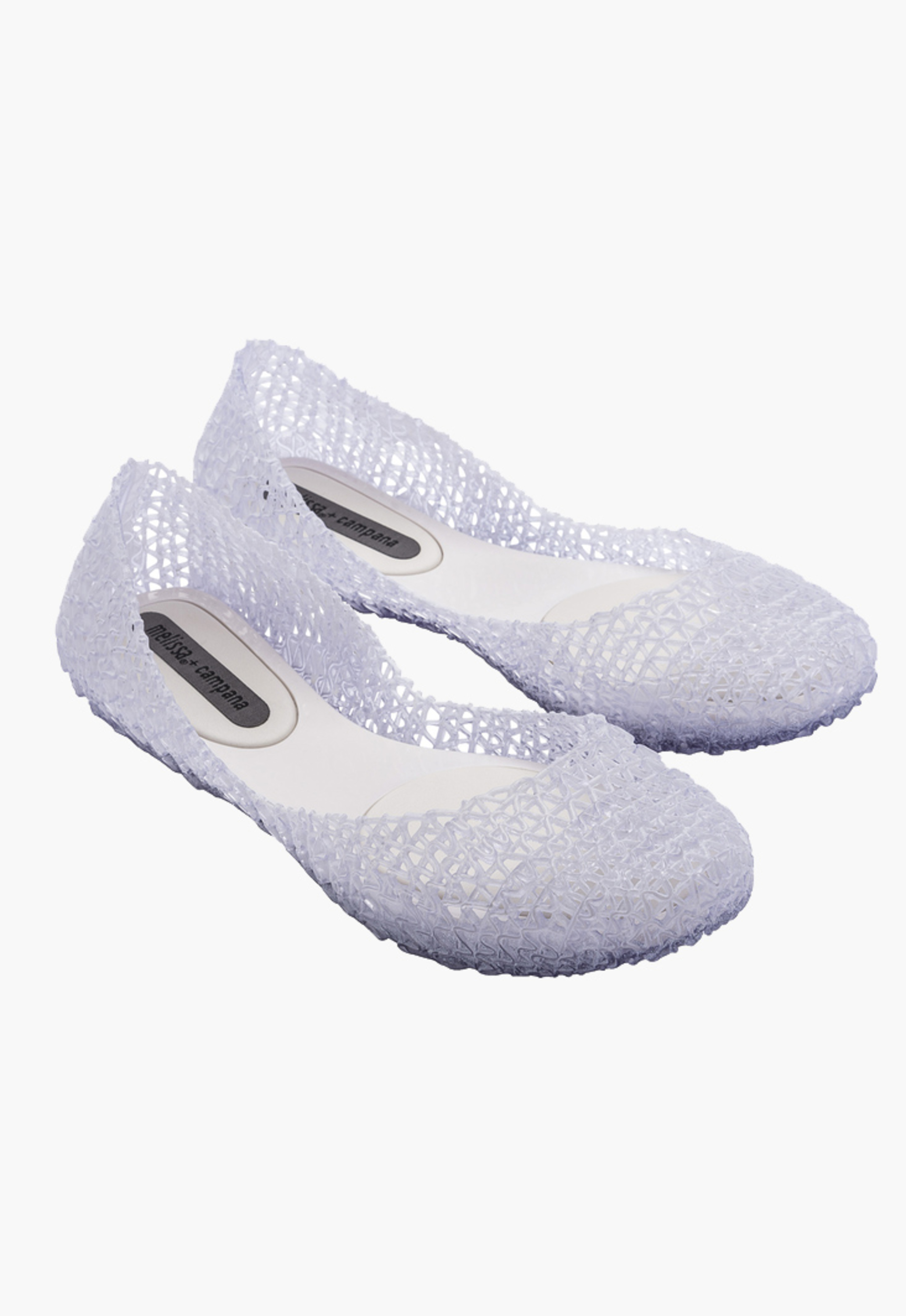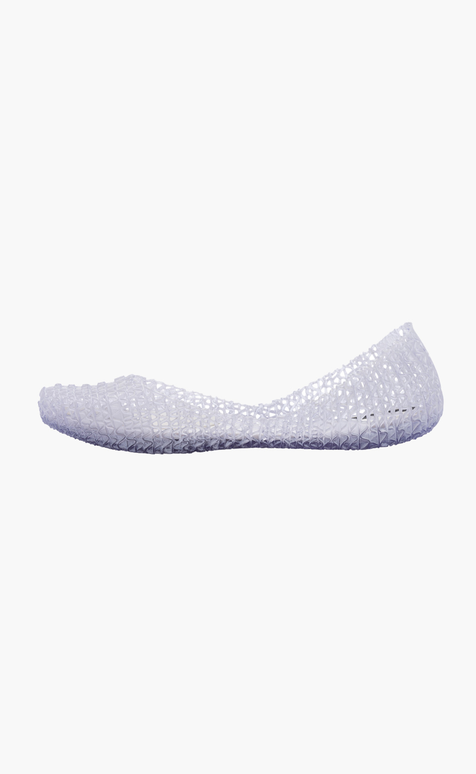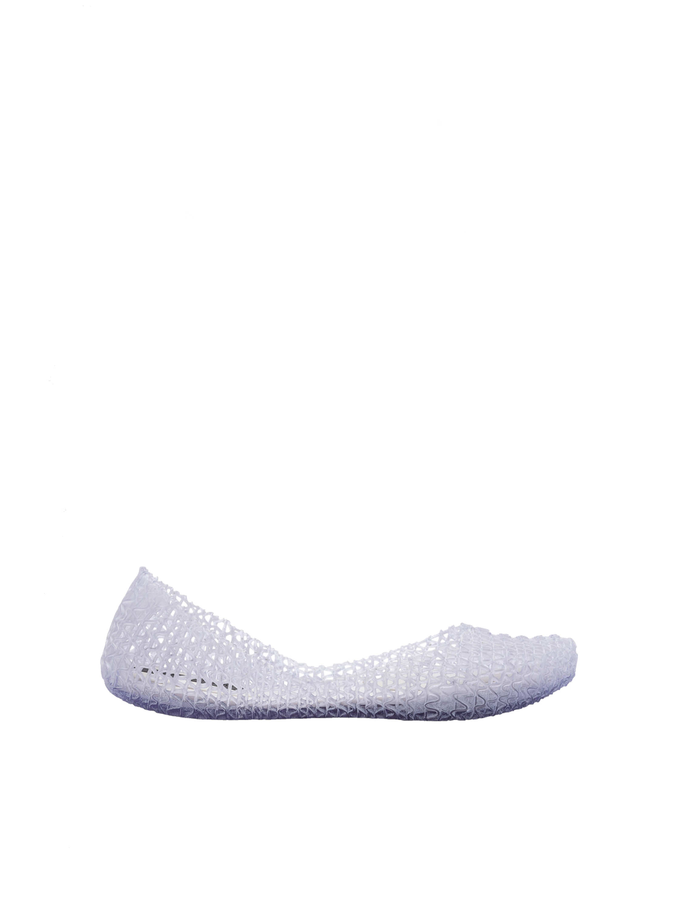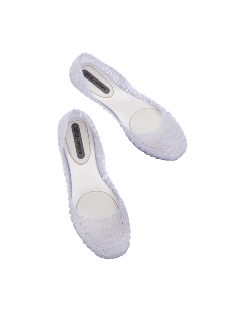 Kultowy model balerin Melissa Campana. Wykonane w całości z wodoodpornego materiału Mel-Flex - mieszanki plastiku i kauczuku o charakterystycznym zapachu gumy balonowej. Miękkie, lekkie i wygodne. Ażurowa plecionka dopasuje się do stopy. Wyciąganą wkładkę łatwo można wyczyścić pod bieżącą wodą.
