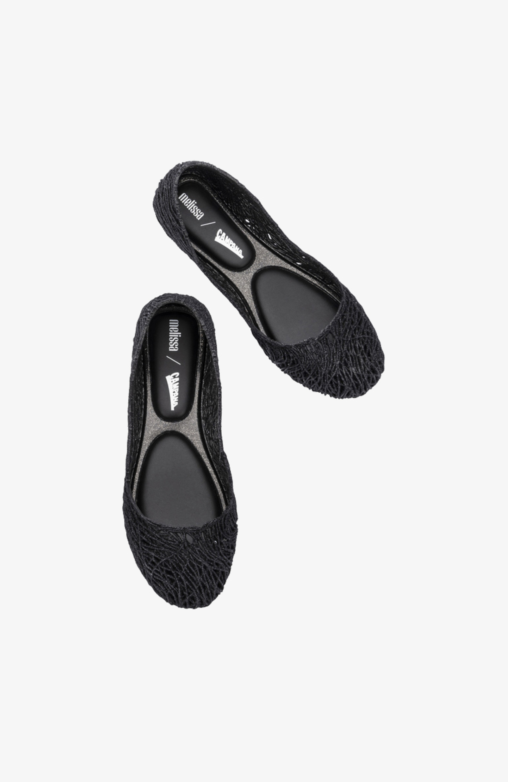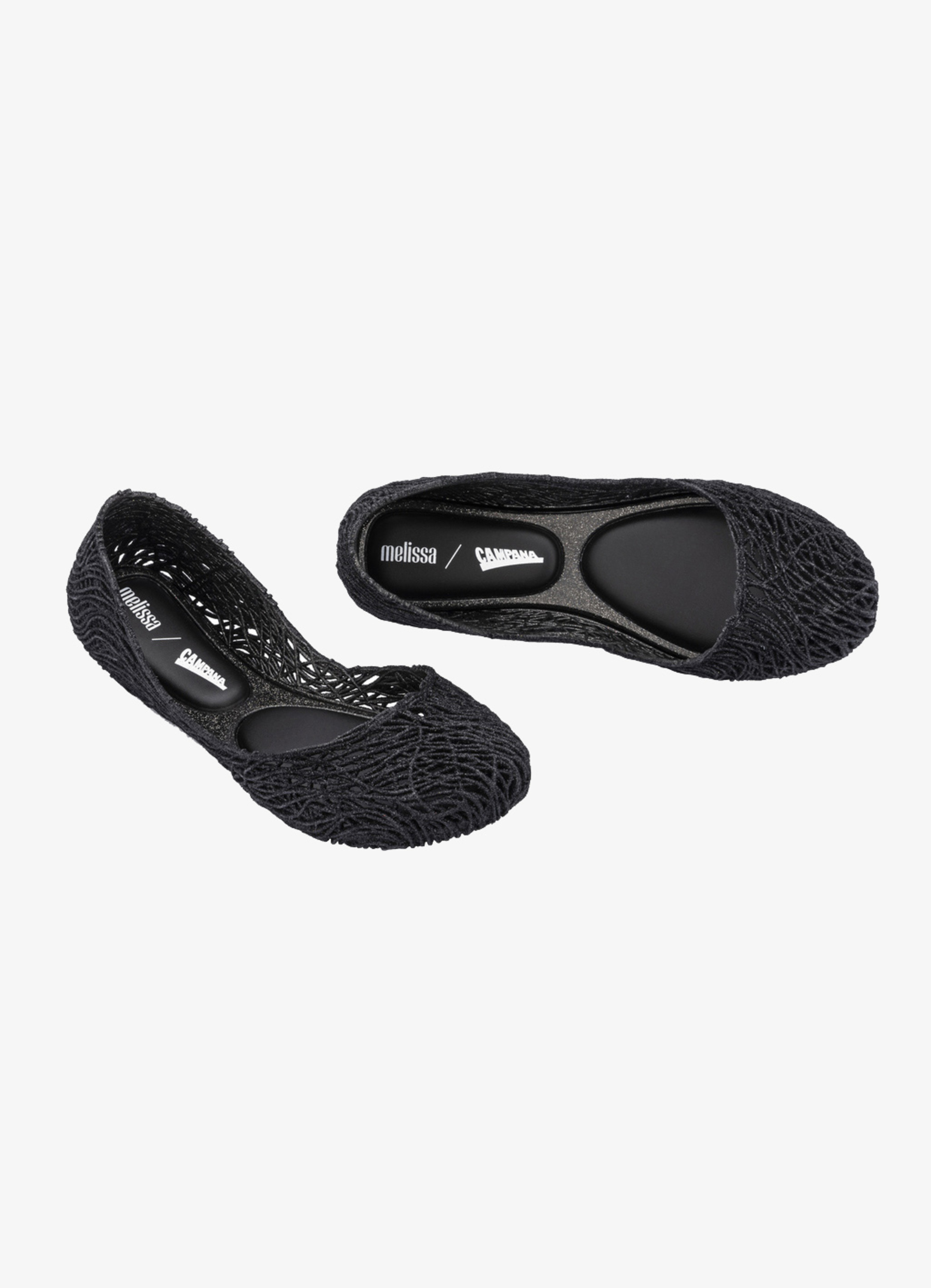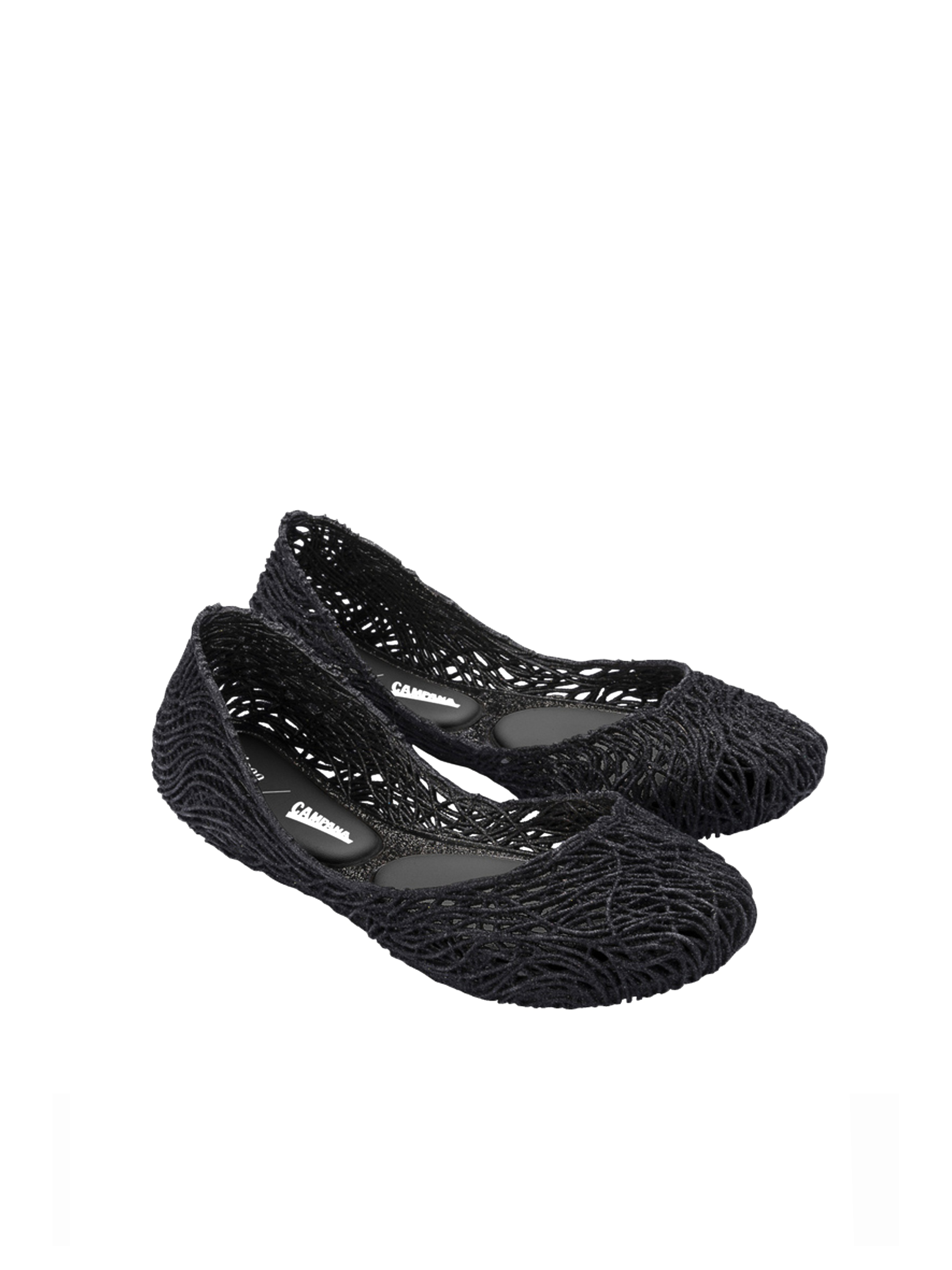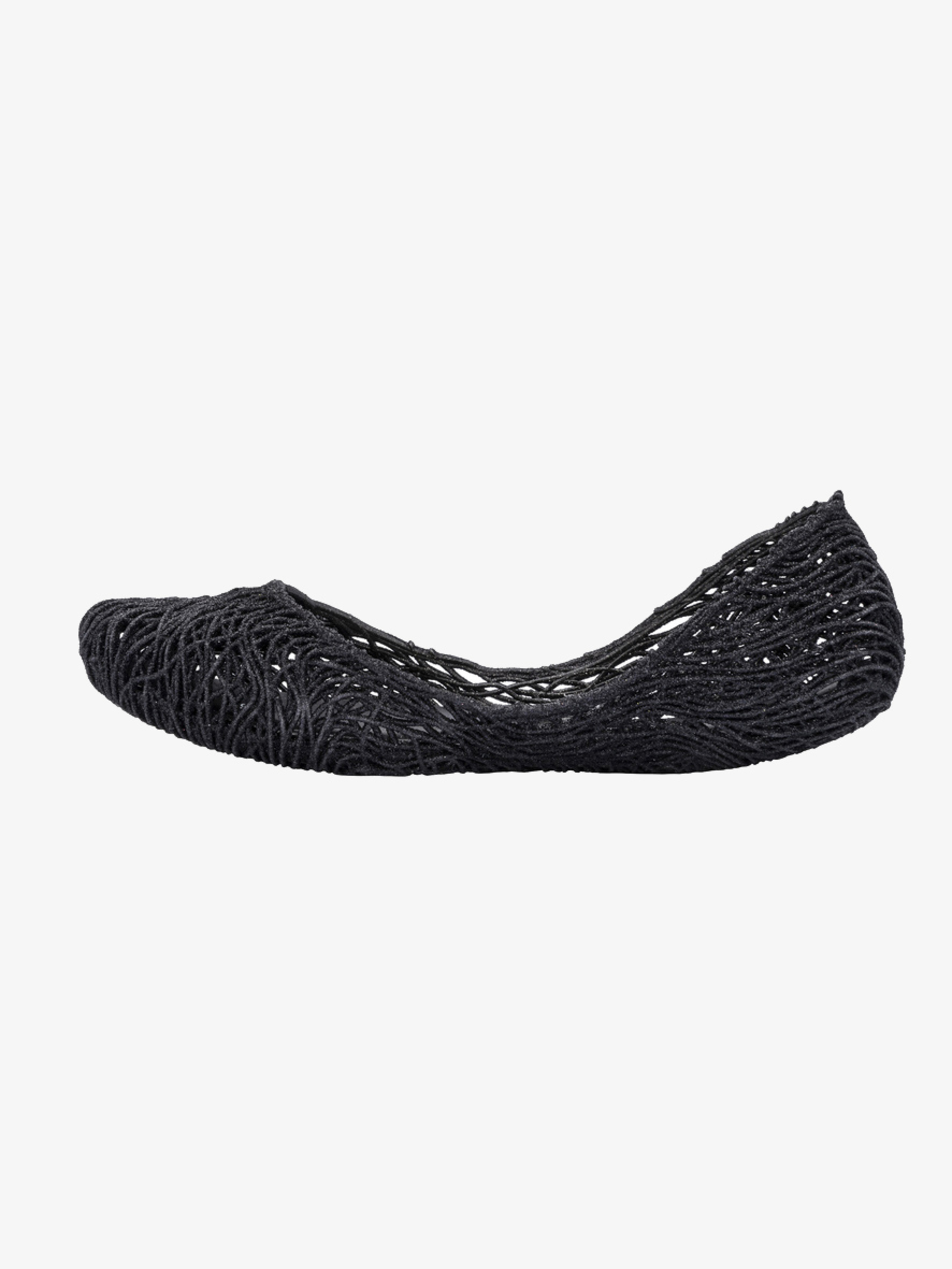 Kultowy model balerin Melissa Campana. Wykonane w całości z wodoodpornego materiału Mel-Flex - mieszanki plastiku i kauczuku o charakterystycznym zapachu gumy balonowej. Miękkie, lekkie i wygodne. Ażurowa plecionka dopasuje się do stopy. Wyciąganą wkładkę łatwo można wyczyścić pod bieżącą wodą.