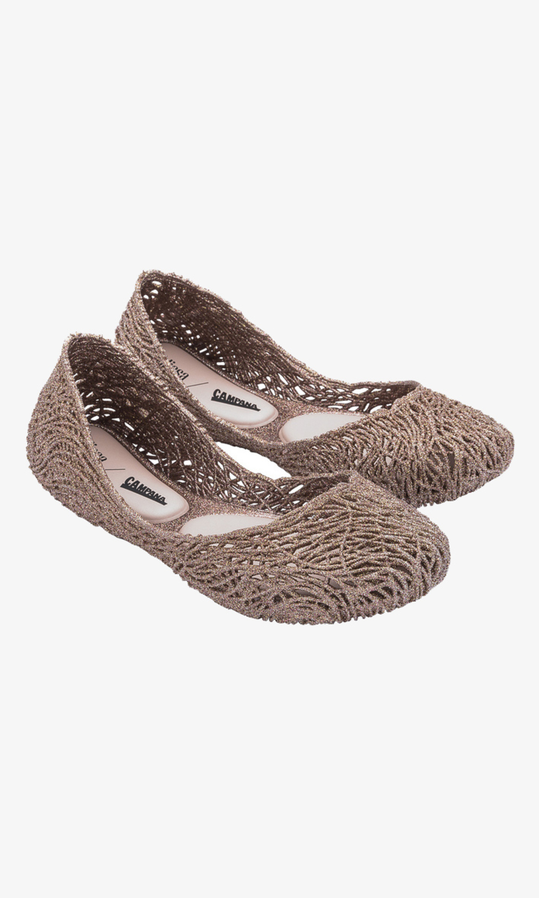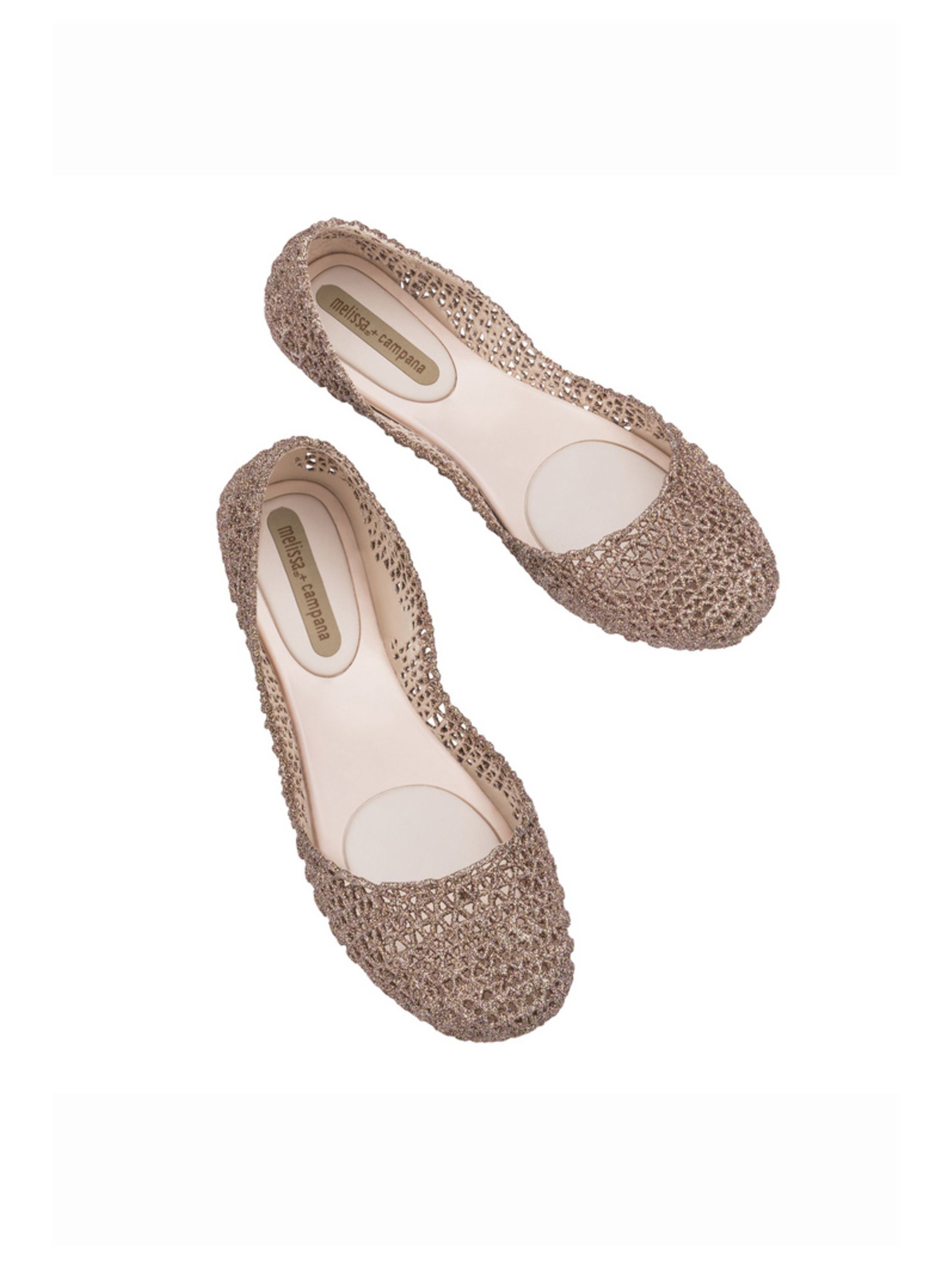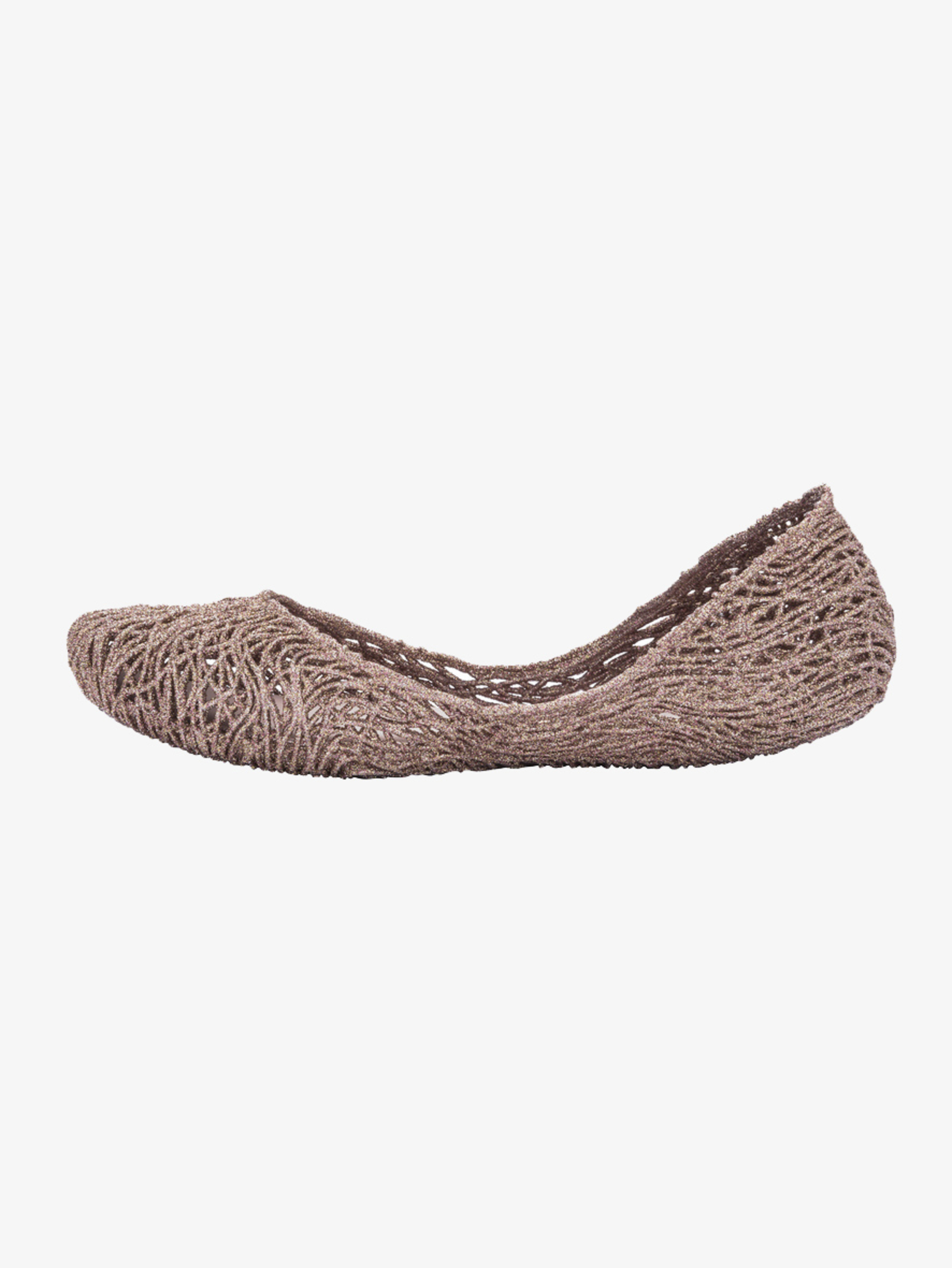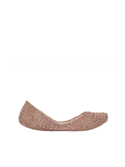 Kultowy model balerin Melissa Campana. Wykonane w całości z wodoodpornego materiału Mel-Flex - mieszanki plastiku i kauczuku o charakterystycznym zapachu gumy balonowej. Miękkie, lekkie i wygodne. Ażurowa plecionka dopasuje się do stopy. Wyciąganą wkładkę łatwo można wyczyścić pod bieżącą wodą.