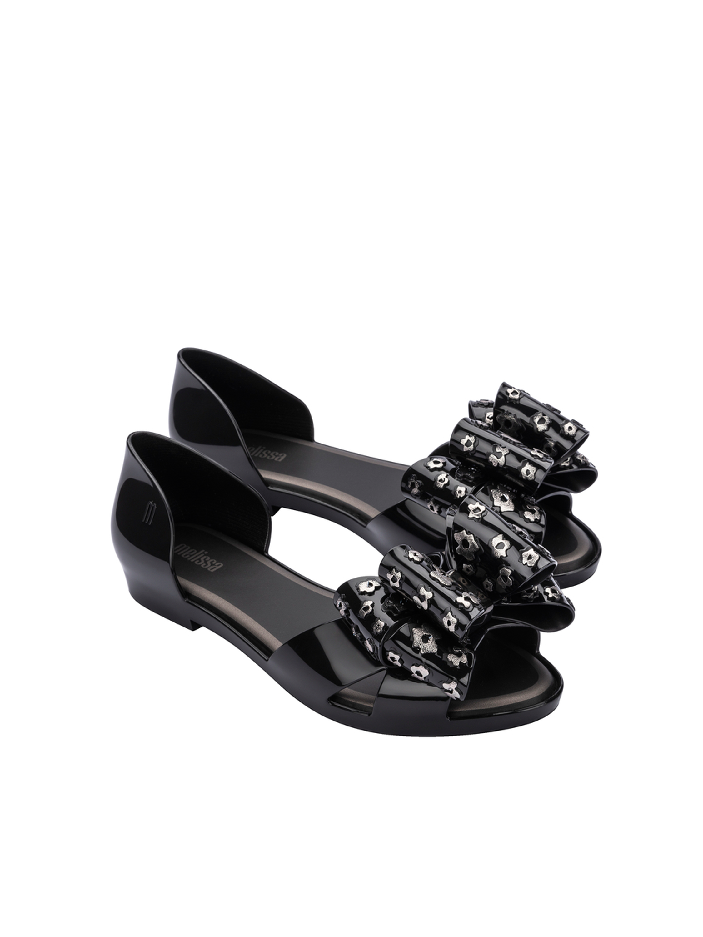 Baleriny Melissa z odkrytymi palcami wykonane są z aromatyzowanego, unikalnego tworzywa Mel-flex - mieszanki plastiku i kauczuku o charakterystycznym zapachu gumy balonowej. Miękkie, lekkie, wygodne. Dopasują się do Twojej stopy. Stylowy model z dużą kokardą przy palcach.