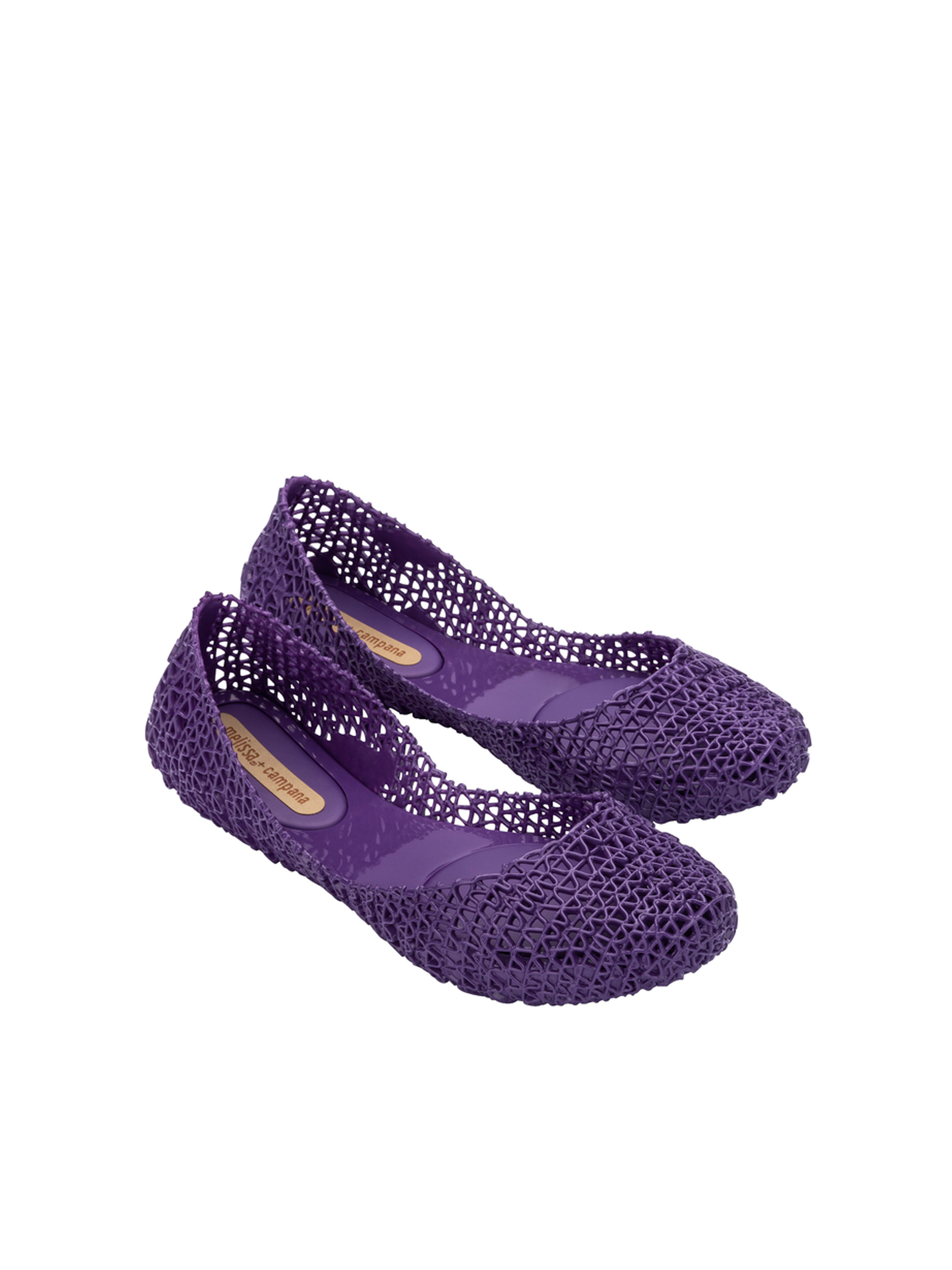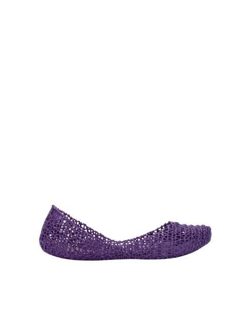 Kultowy model balerin Melissa Campana. Wykonane w całości z wodoodpornego materiału Mel-Flex - mieszanki plastiku i kauczuku o charakterystycznym zapachu gumy balonowej. Miękkie, lekkie i wygodne. Ażurowa plecionka dopasuje się do stopy. Wyciąganą wkładkę łatwo można wyczyścić pod bieżącą wodą.