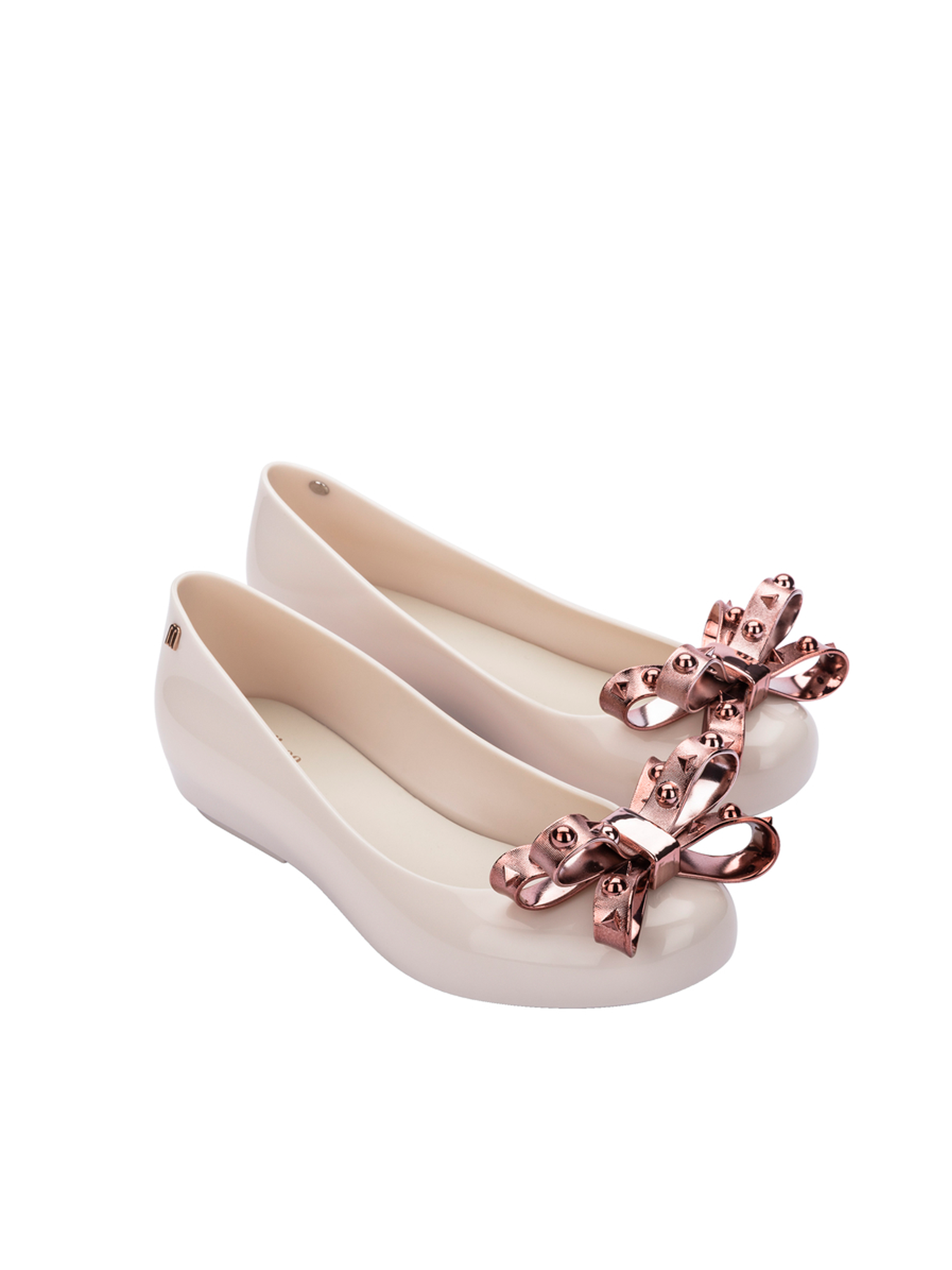 Baleriny damskie Melissa DORA z okrągłym noskiem wykonane są z kultowego tworzywa Mel-Flex, które pachnie gumą balonową. Materiał ten to mieszanka przetworzonego plastiku i kauczuku. Łatwo zachować go w czystości, a jego elastyczność sprawia, że doskonale dopasowują się do stopy. Miękka, wygodna wkładka odpowiada za komfort chodzenia przez cały dzień. Wodoodporne, niezwykle lekkie, posiadają stylową ozdobę w postaci kokardy.