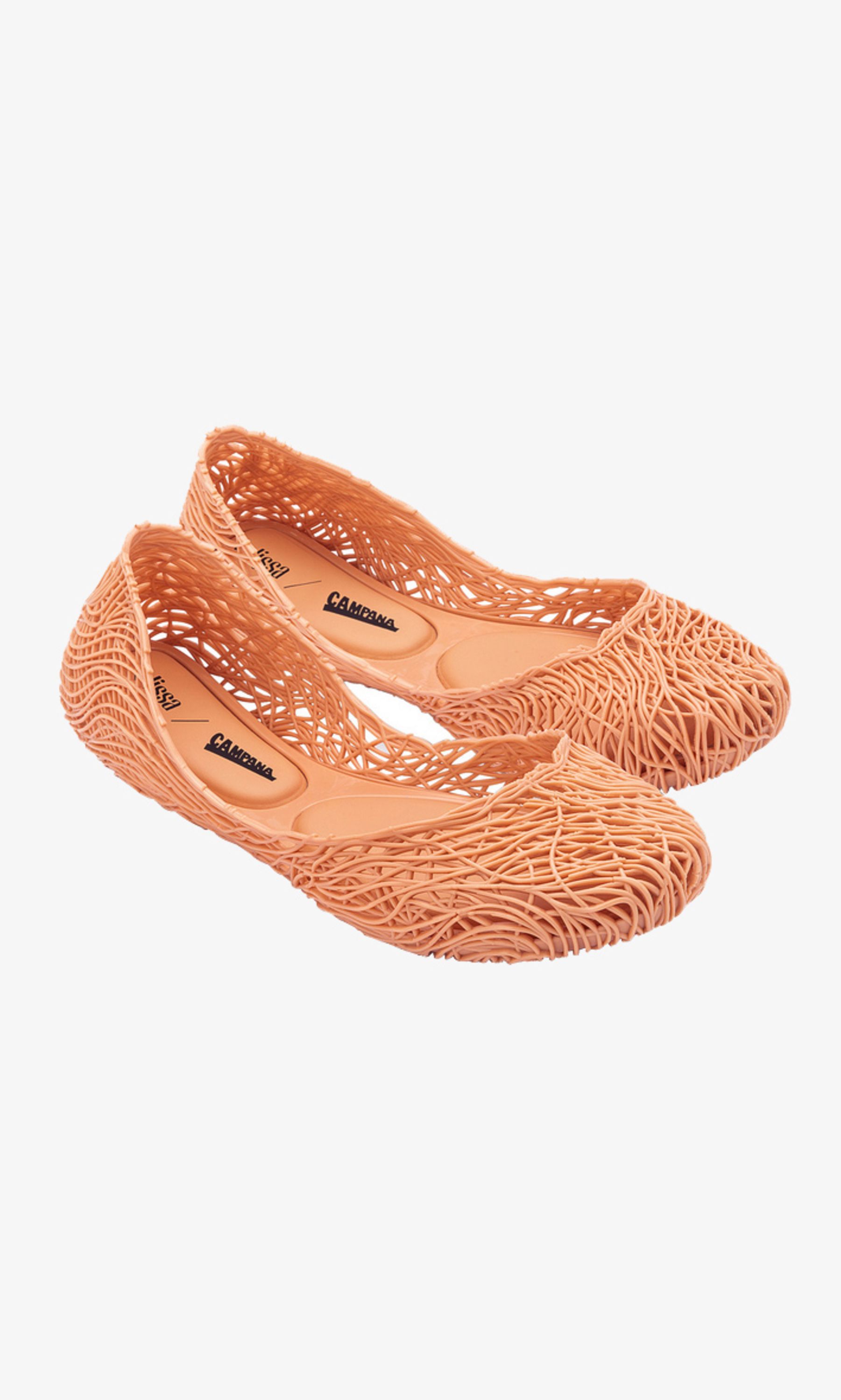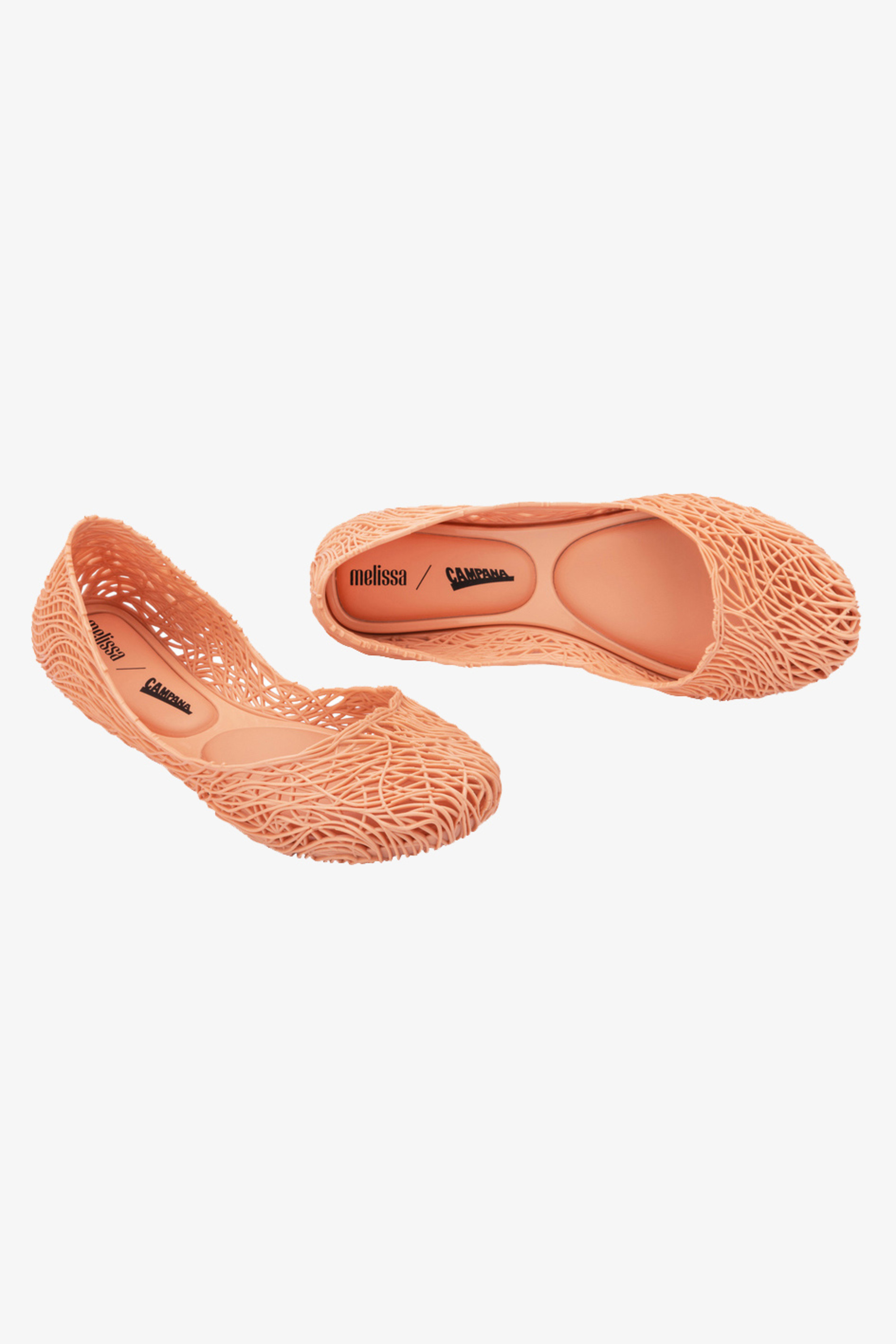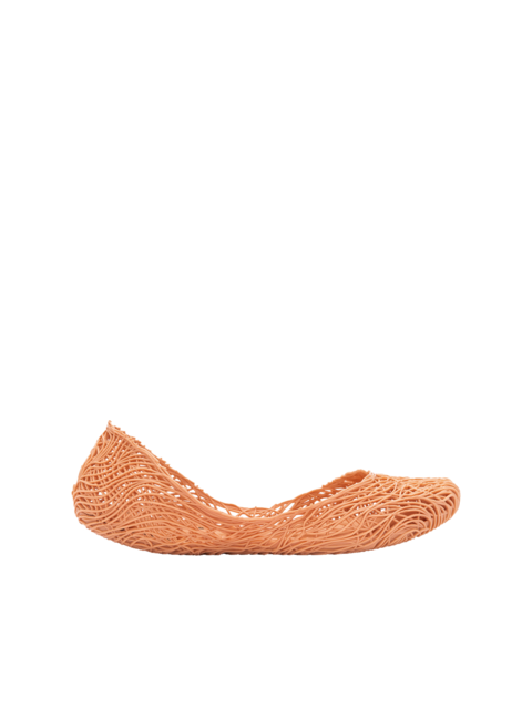 Kultowy model balerin Melissa Campana. Wykonane w całości z wodoodpornego materiału Mel-Flex - mieszanki plastiku i kauczuku o charakterystycznym zapachu gumy balonowej. Miękkie, lekkie i wygodne. Ażurowa plecionka dopasuje się do stopy. Wyciąganą wkładkę łatwo można wyczyścić pod bieżącą wodą.