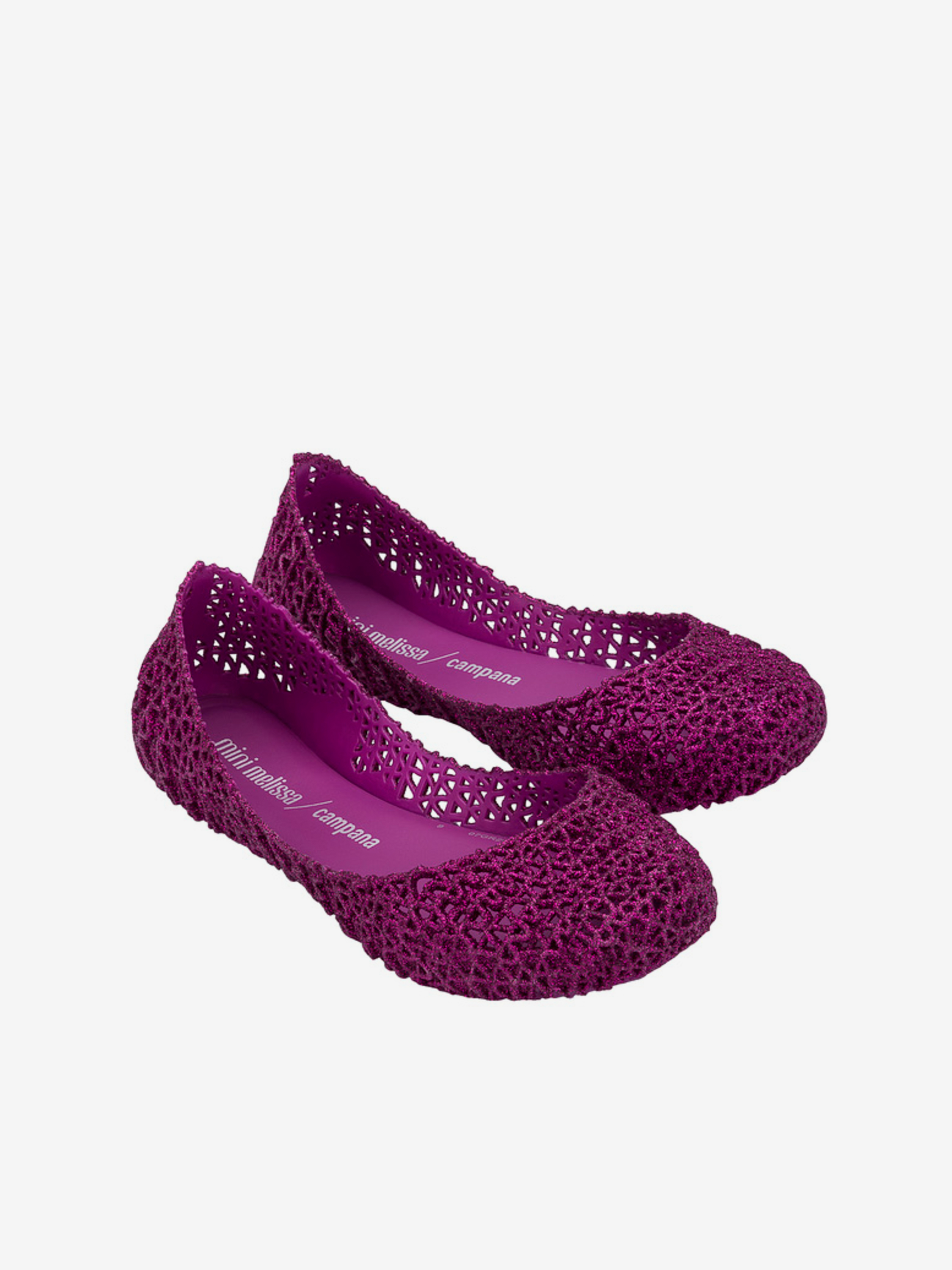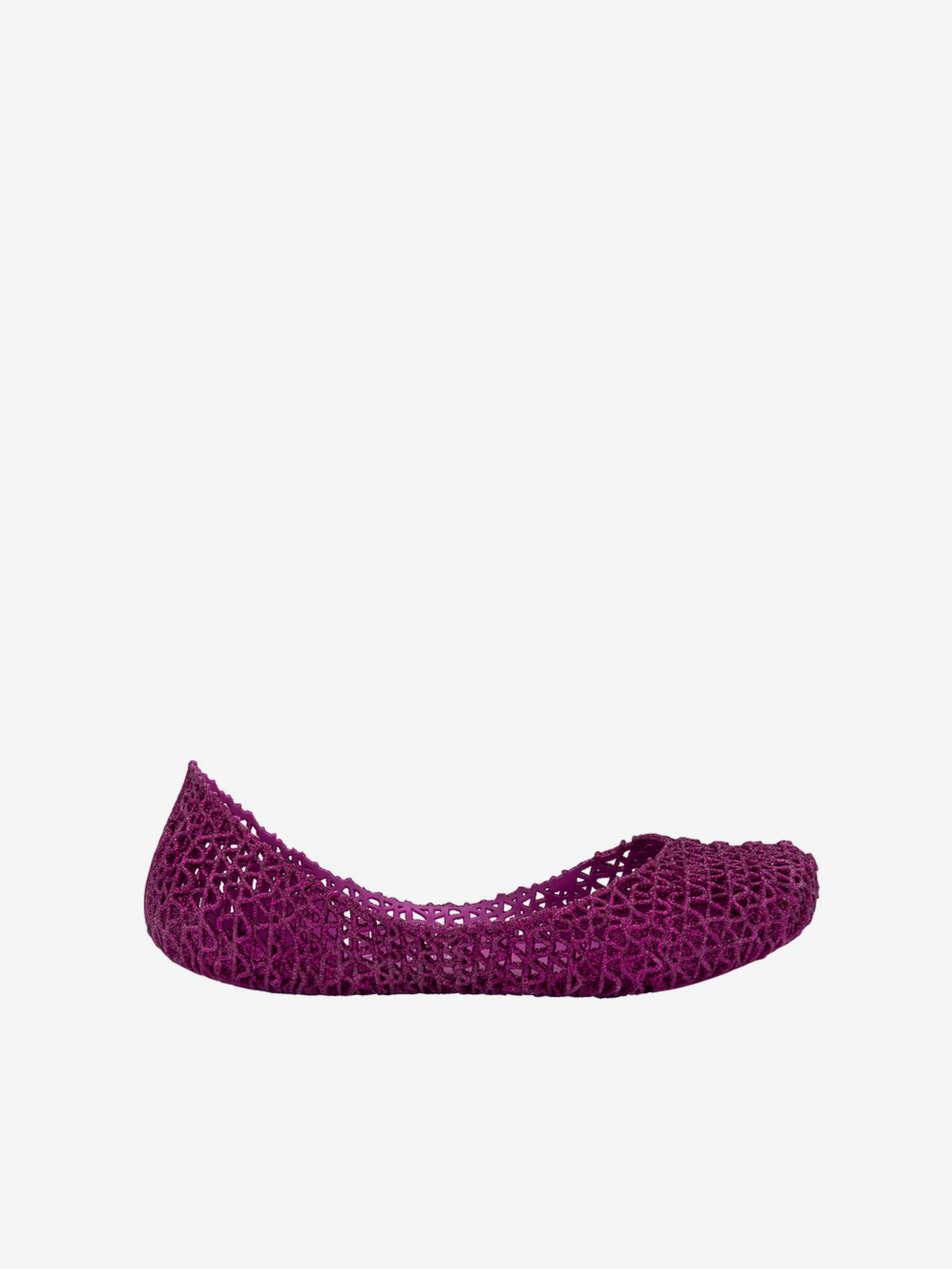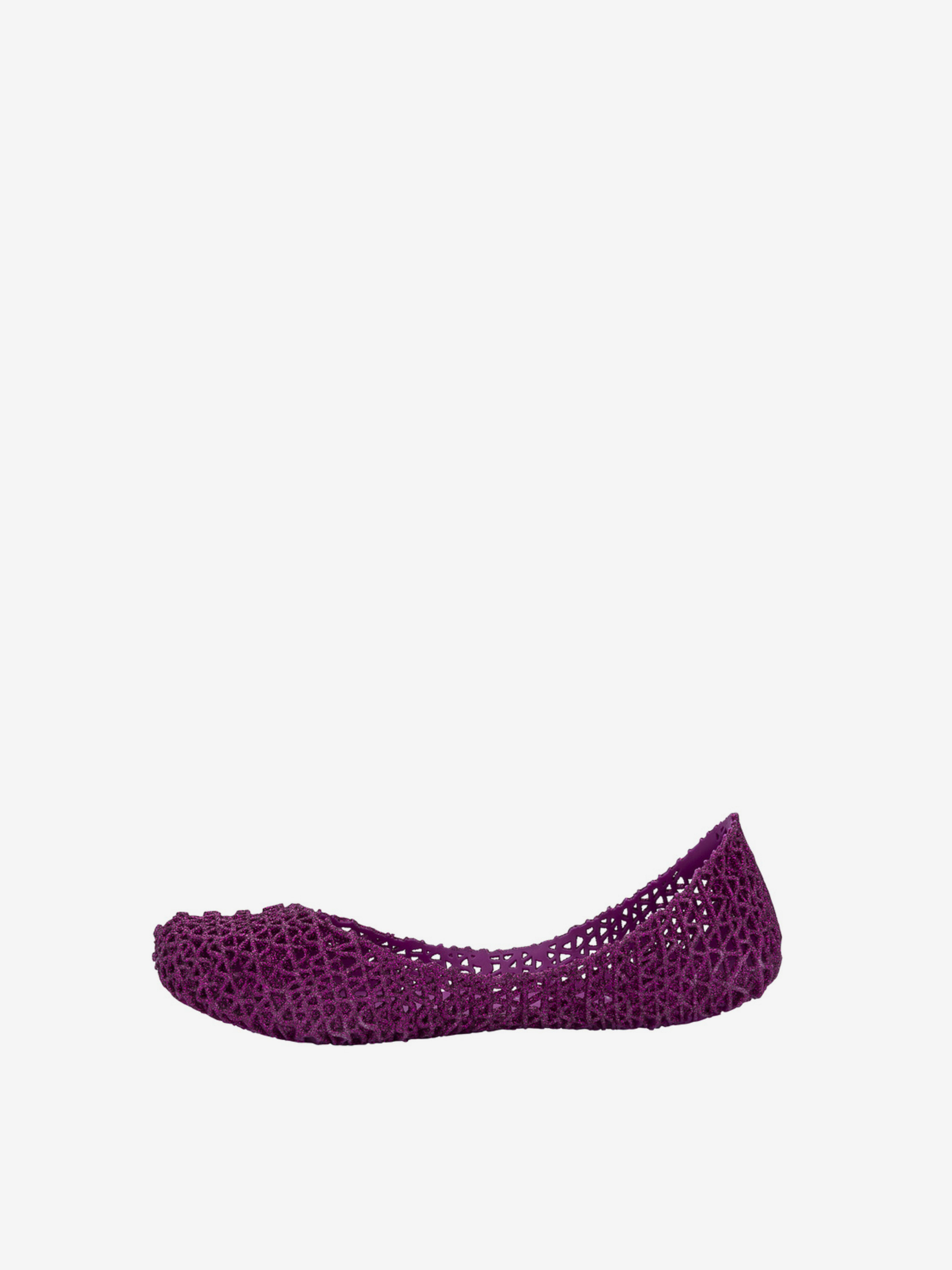 Kultowy model balerin Melissa Campana. Wykonane w całości z wodoodpornego materiału Mel-Flex - mieszanki plastiku i kauczuku o charakterystycznym zapachu gumy balonowej. Miękkie, lekkie i wygodne. Ażurowa plecionka dopasuje się do stopy. Wyciąganą wkładkę łatwo można wyczyścić pod bieżącą wodą.