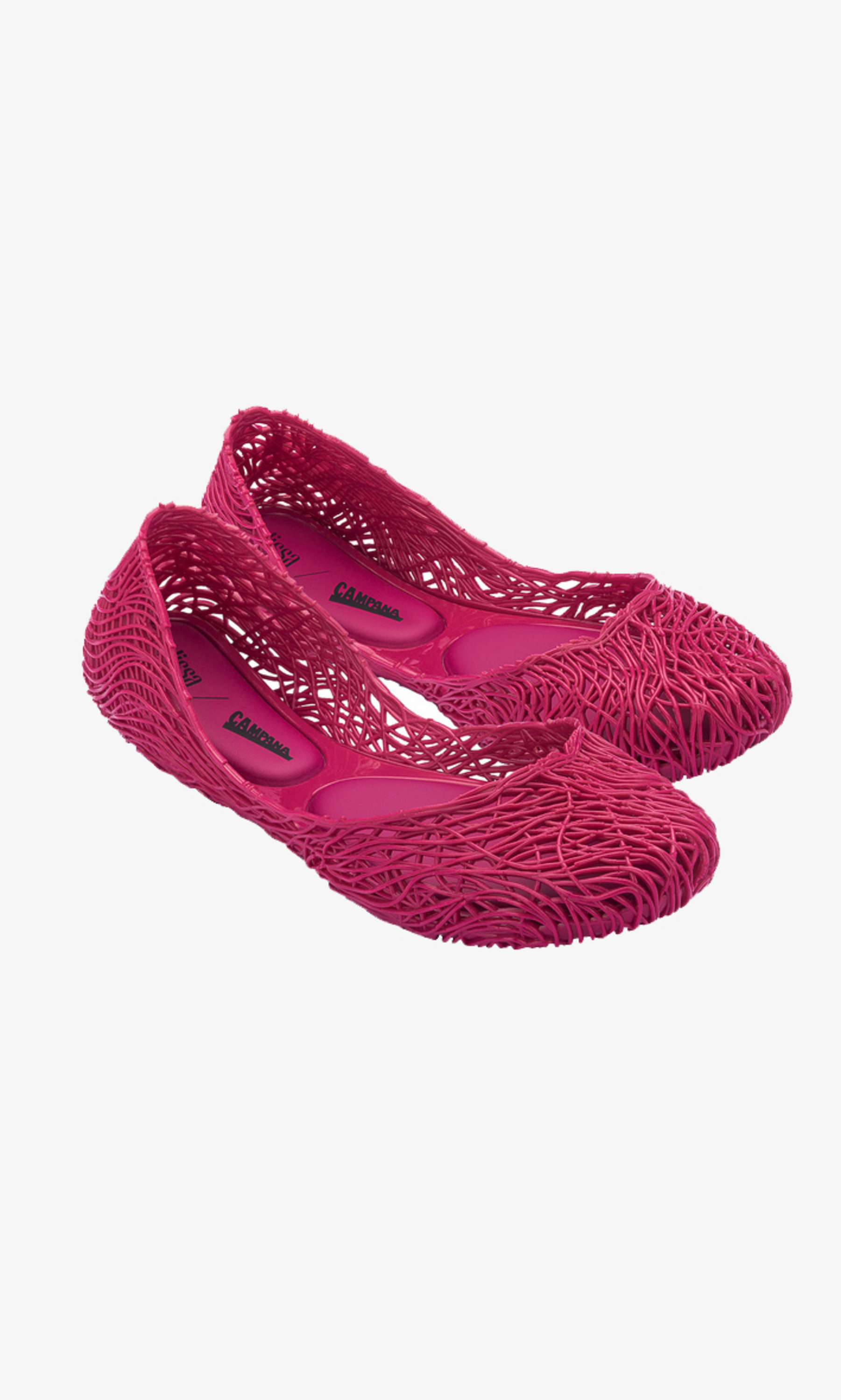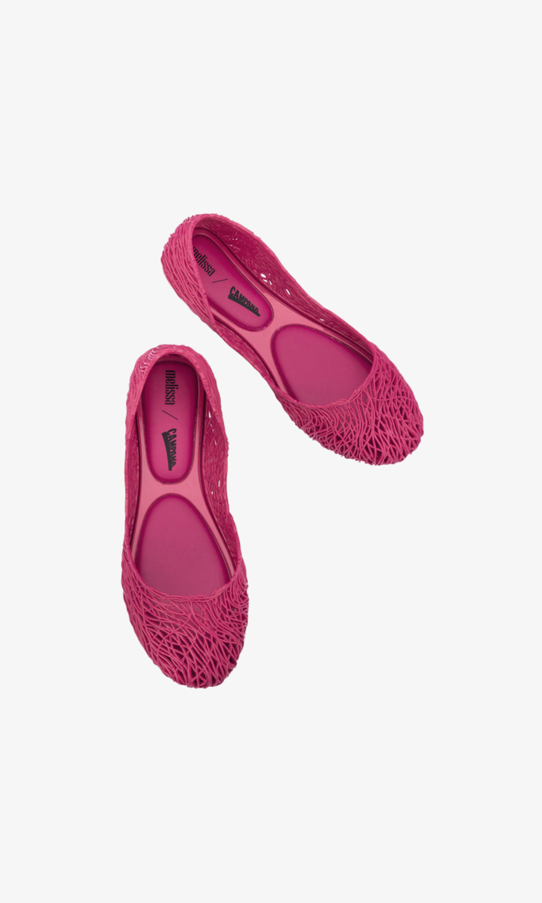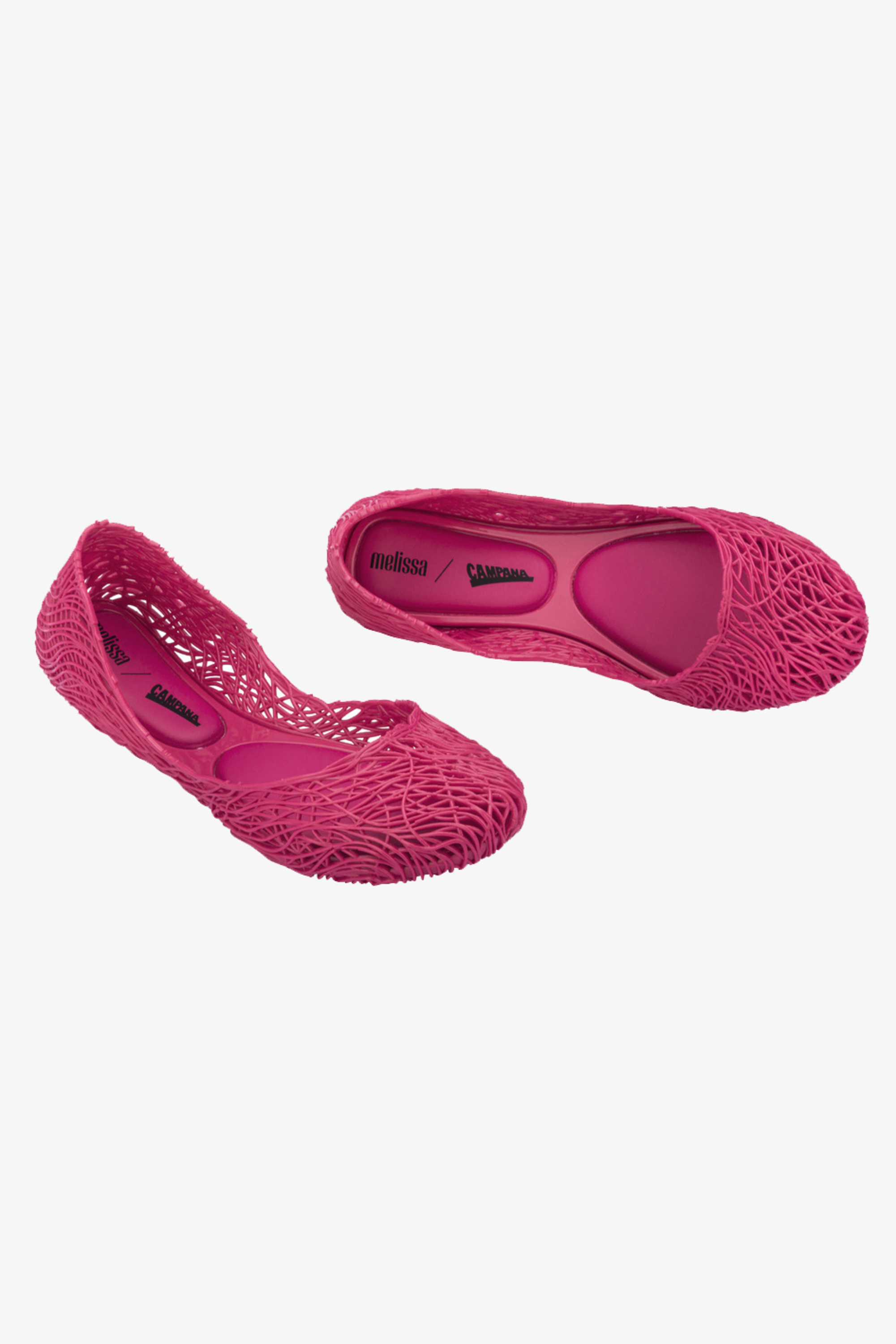 Kultowy model balerin Melissa Campana. Wykonane w całości z wodoodpornego materiału Mel-Flex - mieszanki plastiku i kauczuku o charakterystycznym zapachu gumy balonowej. Miękkie, lekkie i wygodne. Ażurowa plecionka dopasuje się do stopy. Wyciąganą wkładkę łatwo można wyczyścić pod bieżącą wodą.