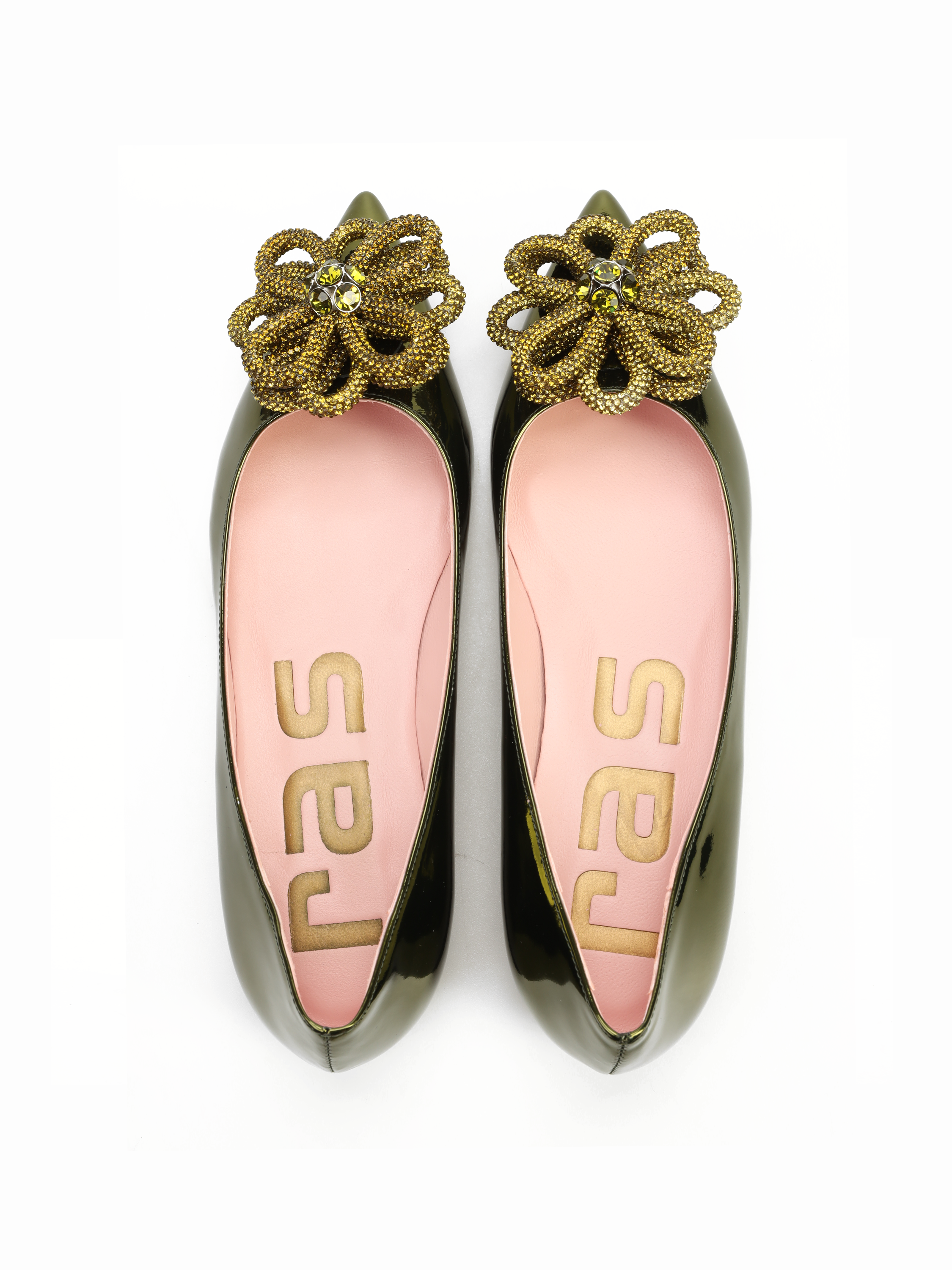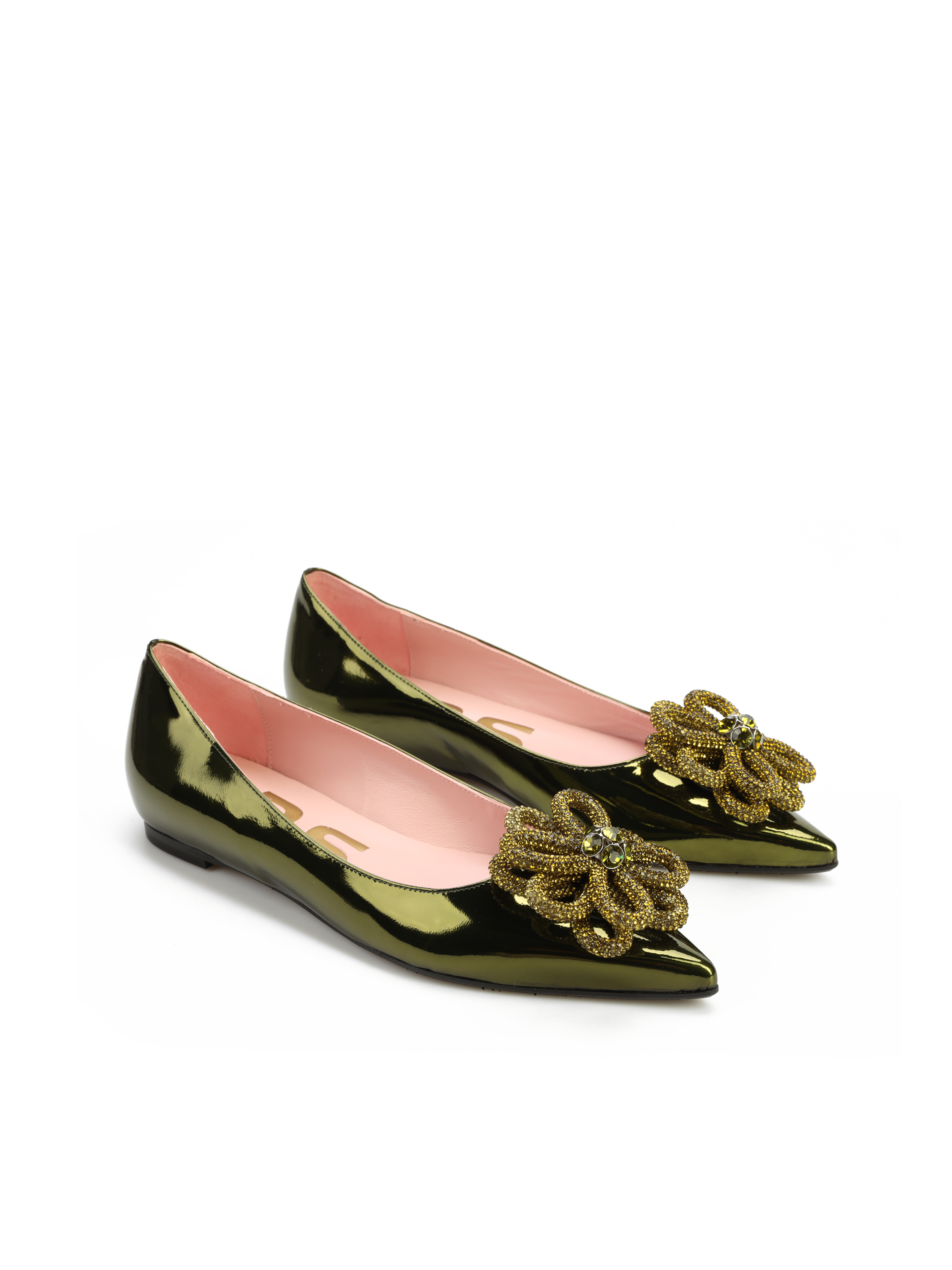 ZIELONE BALERINY Z OZDOBĄ RAS
