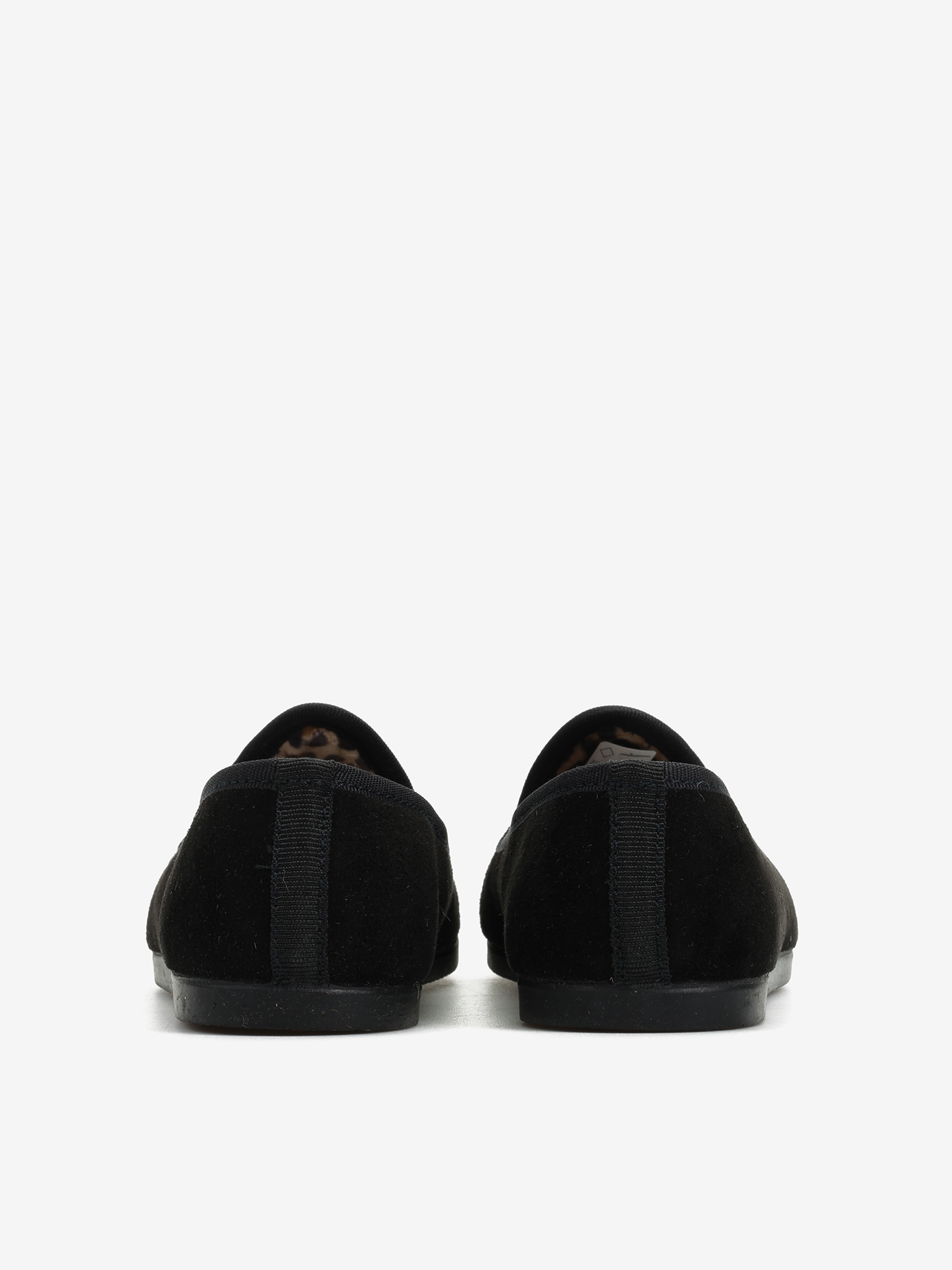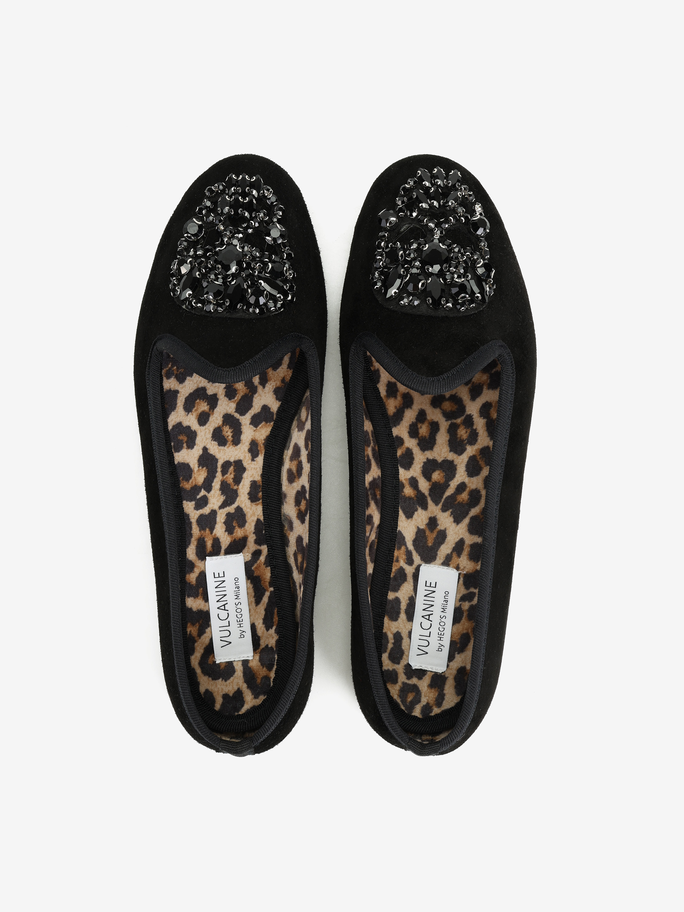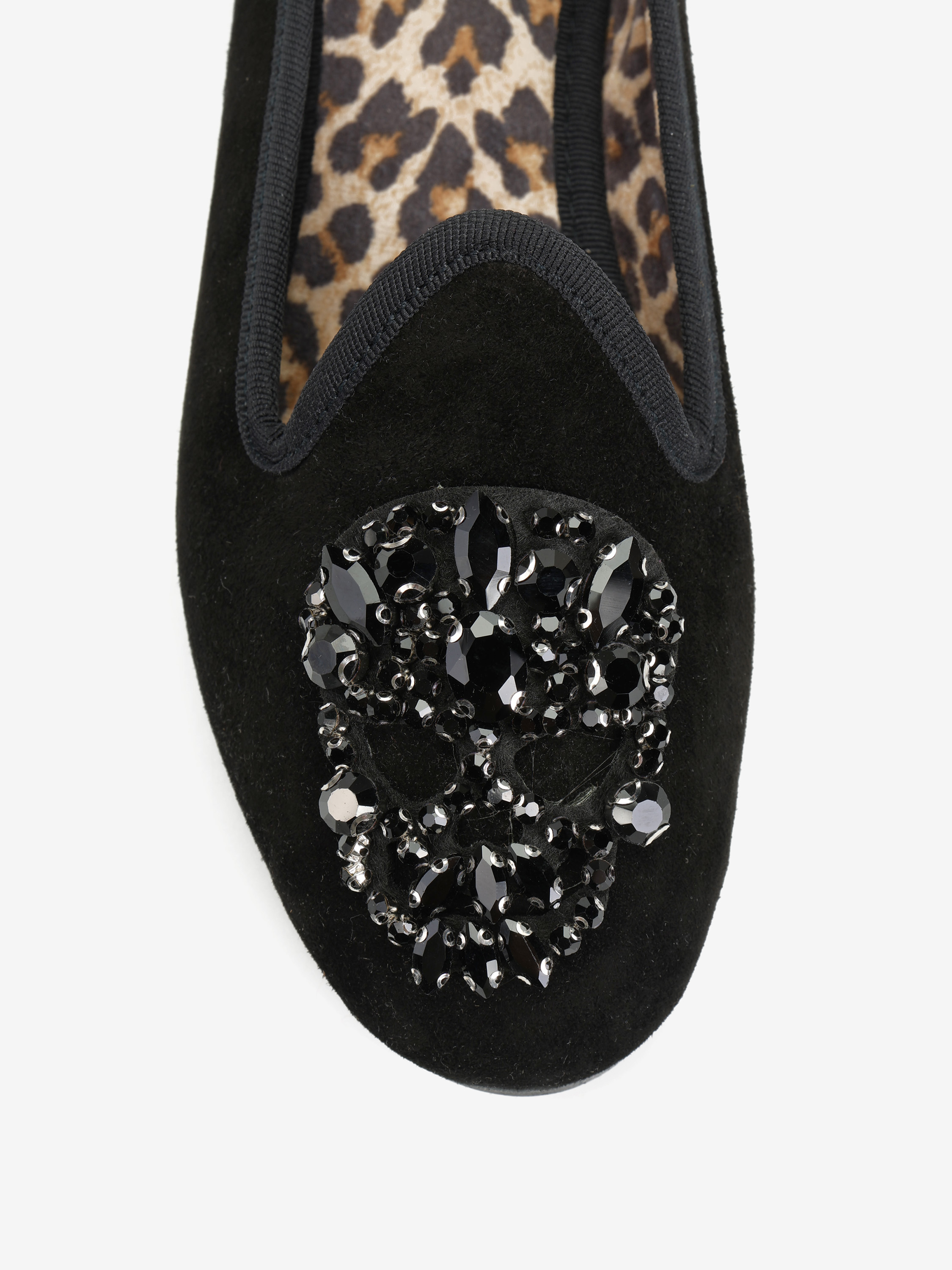 Miękkie, zamszowe baleriny z biżuteryjną aplikacją.