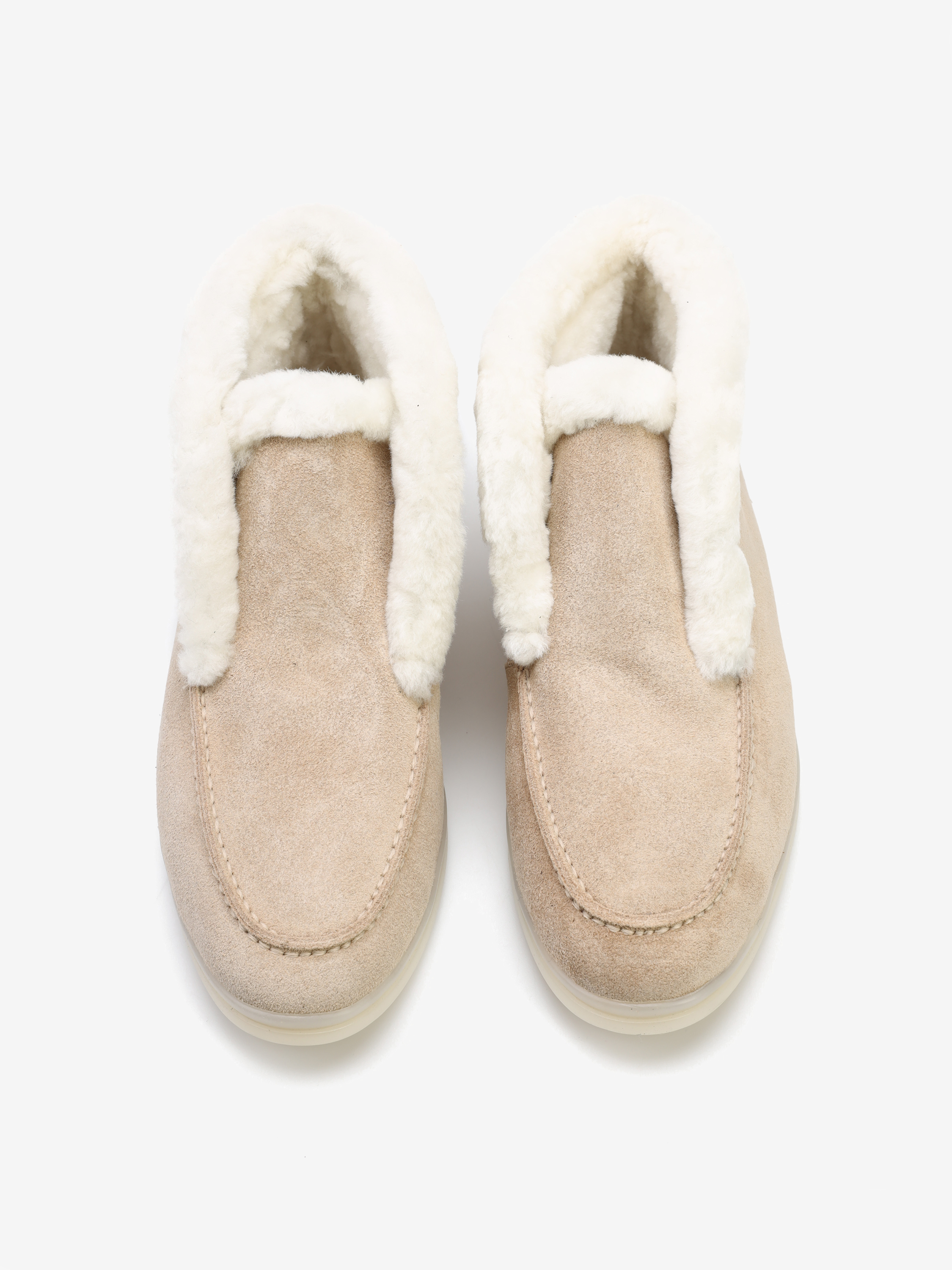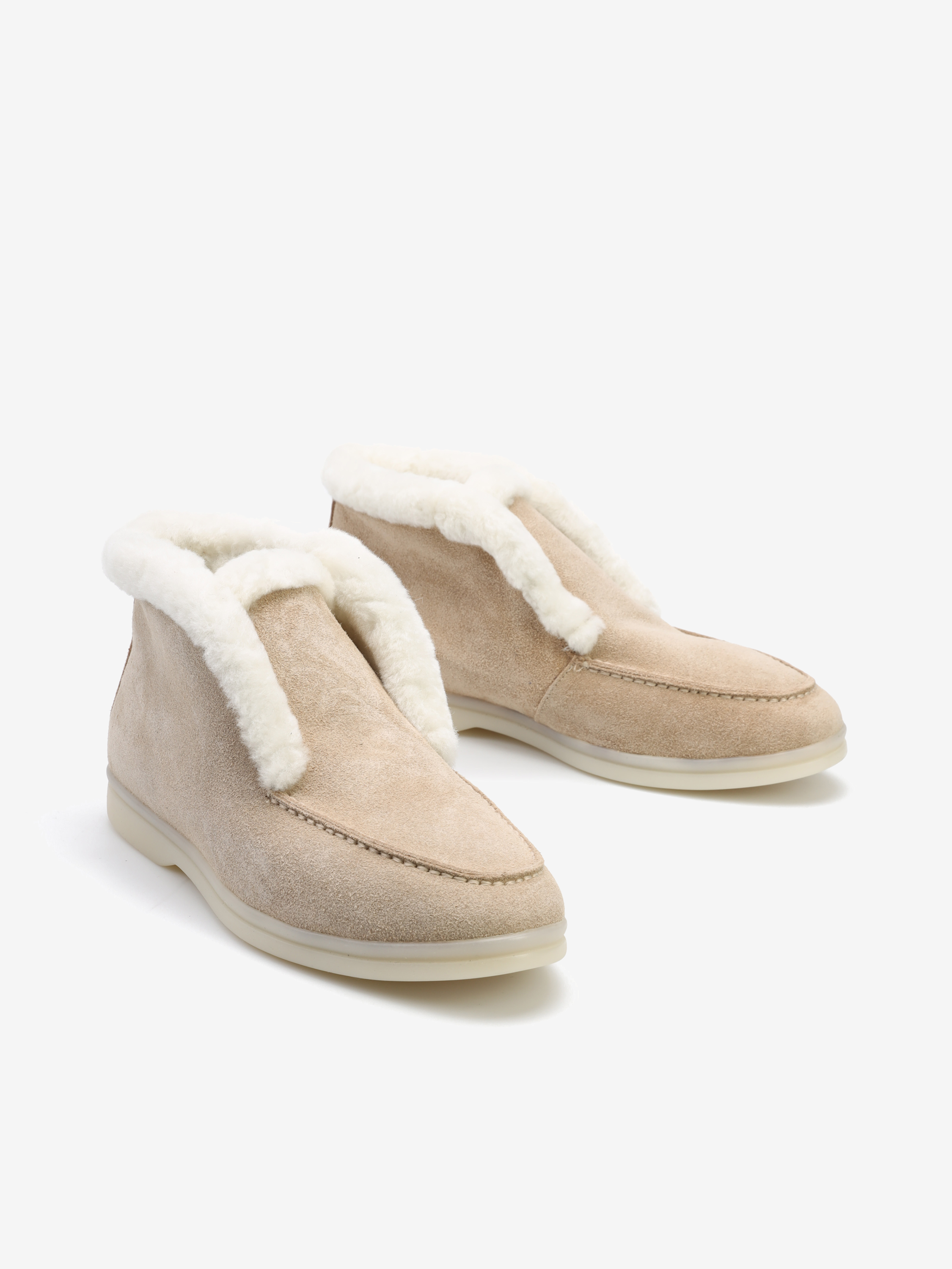 Wsuwane botki z futrem to Trend sezonu. Cholewka w kremowym kolorze wykonana jest z naturalnej skóry zamszowej. Wyściółka obszyta została modnym futrem. Ciepłe i wygodne. Dostępne w kilku kolorach do wyboru.